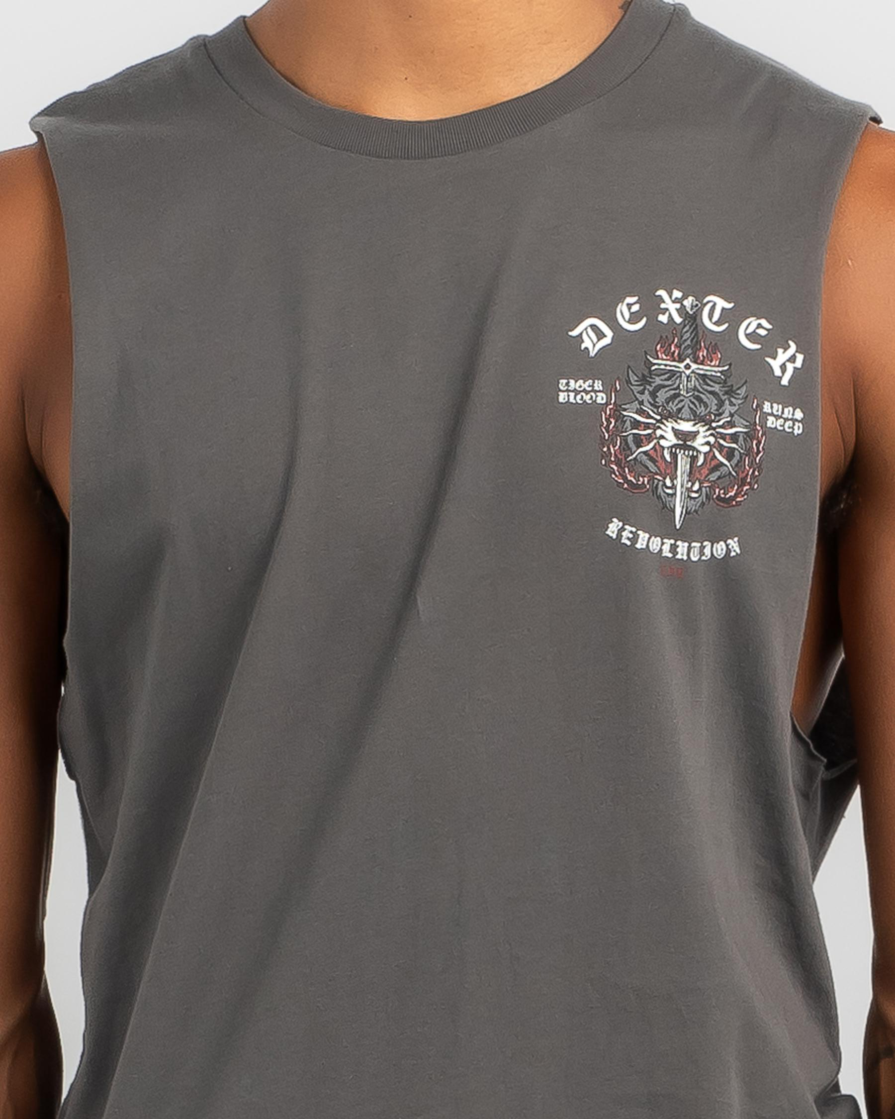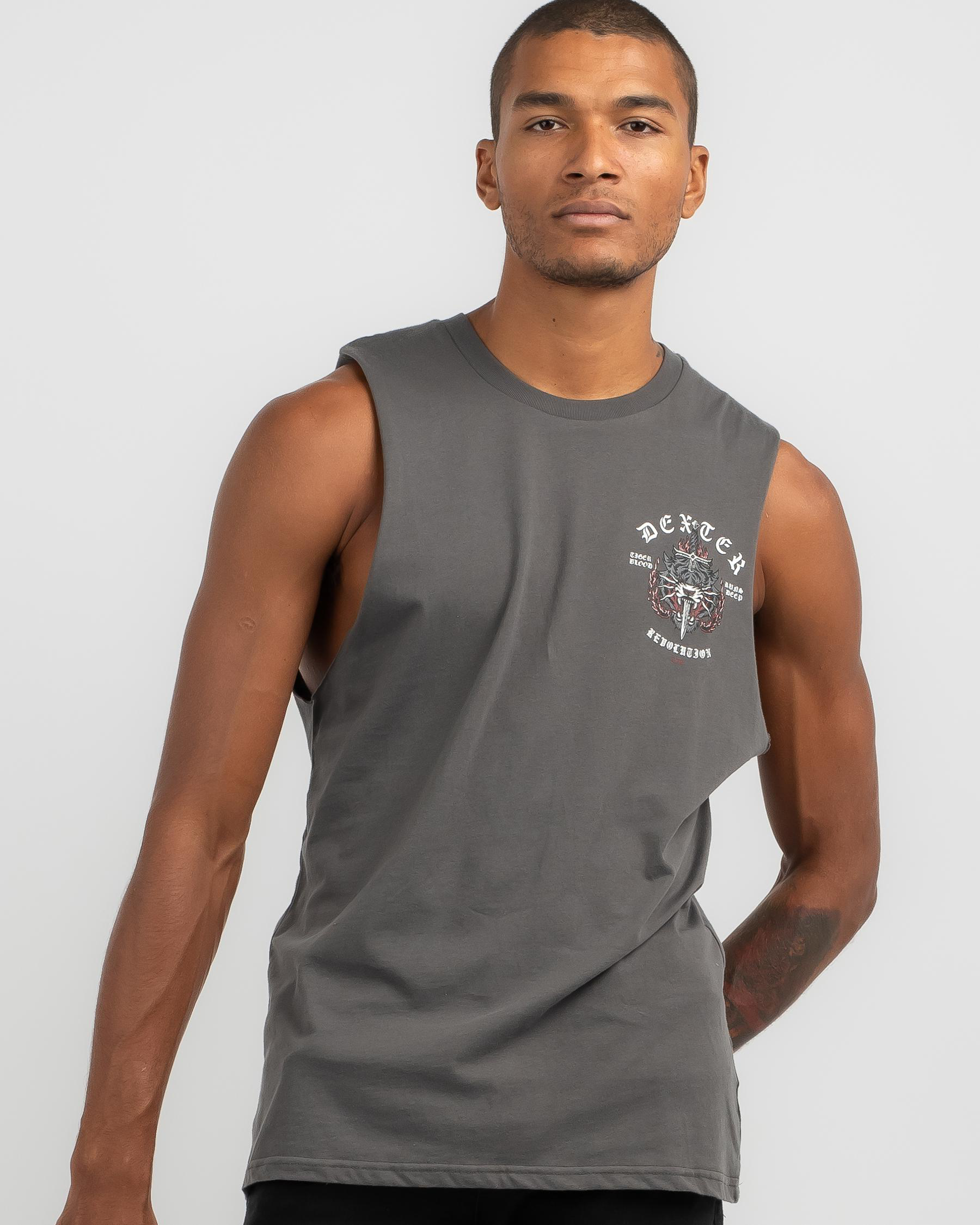 The Dexter Jungle Muscle Tank in Charcoal features a bold and stylish design, perfect for adding an edgy touch to your wardrobe.