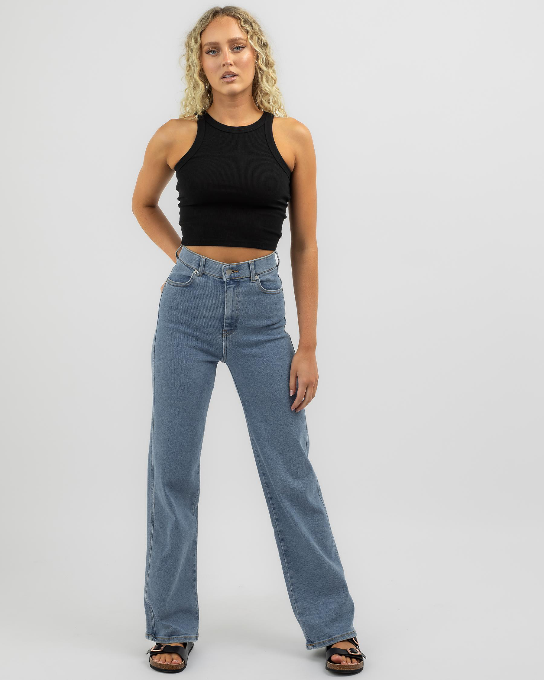 The Dr Denim Moxy Straight Jeans in Light Blue exude a cool, casual vibe perfect for everyday wear.