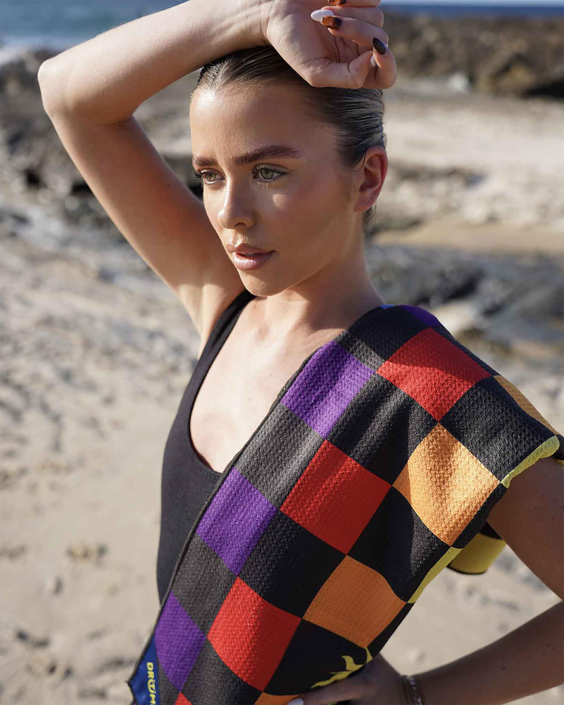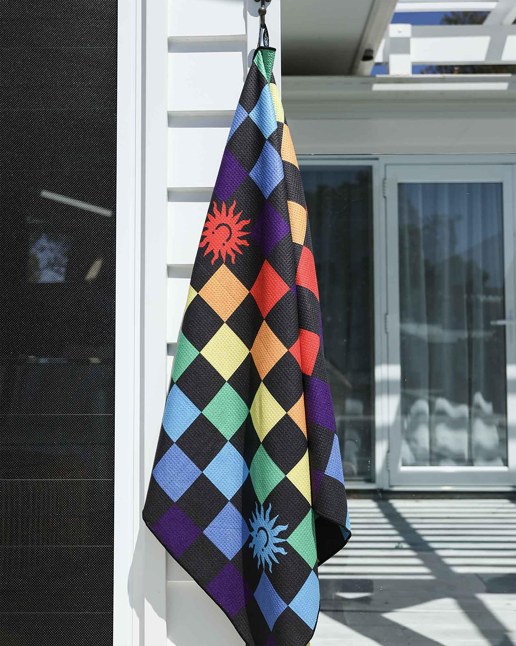 Soak up the sun in style with the DRITIMES Checked Out Beach Towel in Multi. This vibrant towel features a striking singular colour for a bold beach statement.