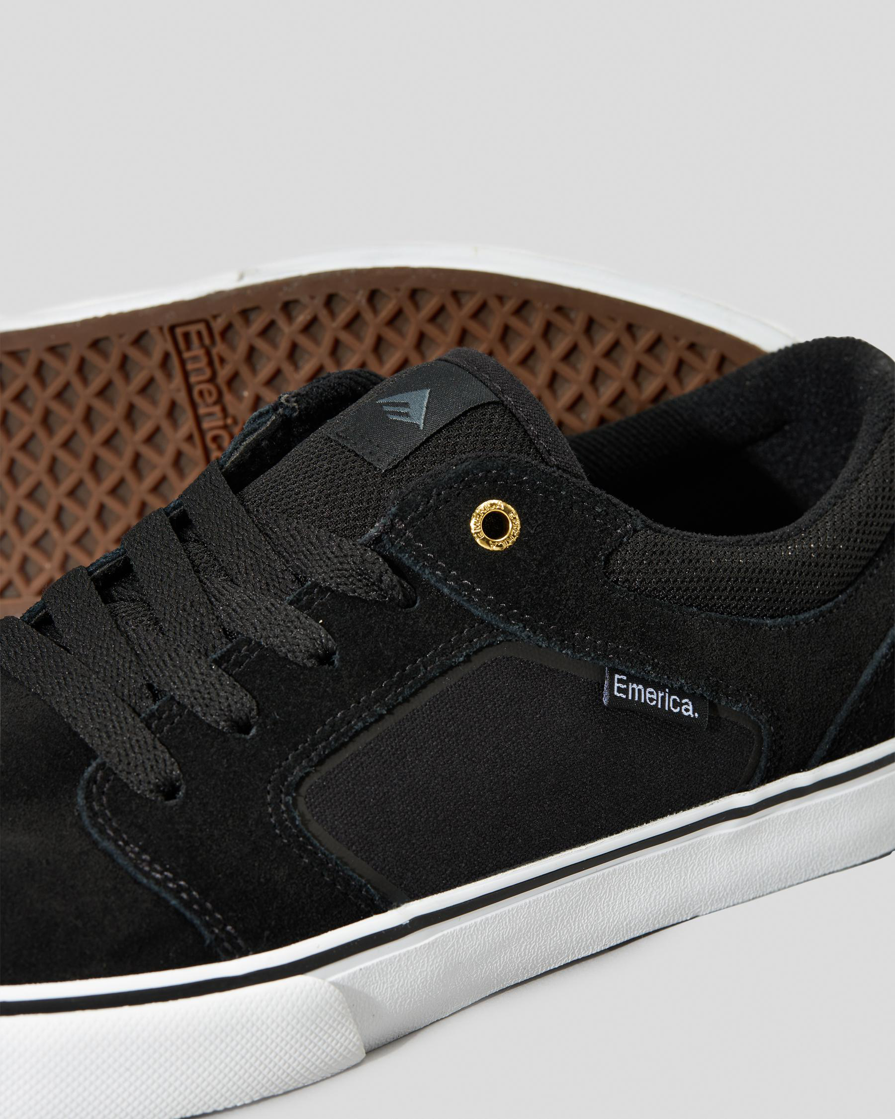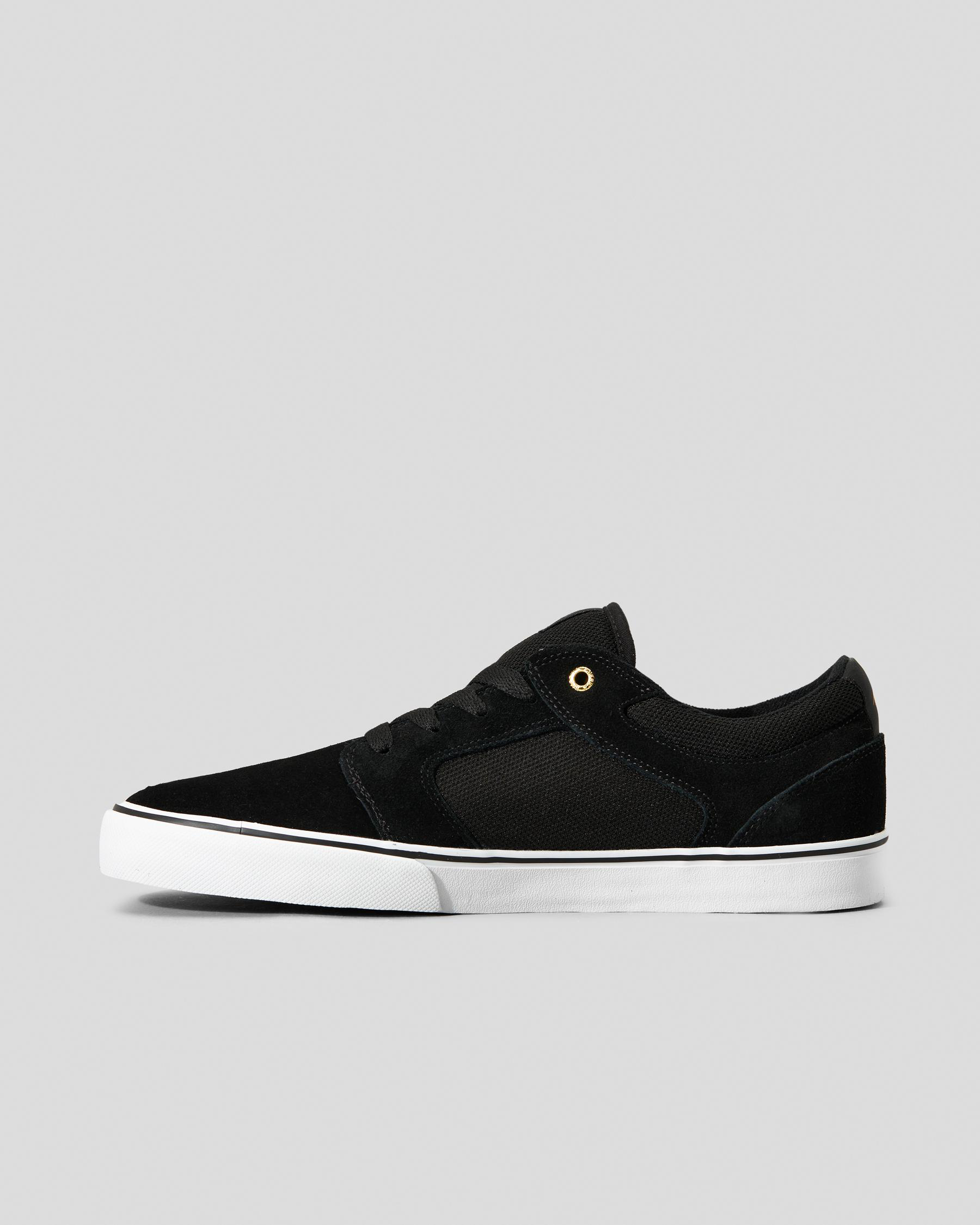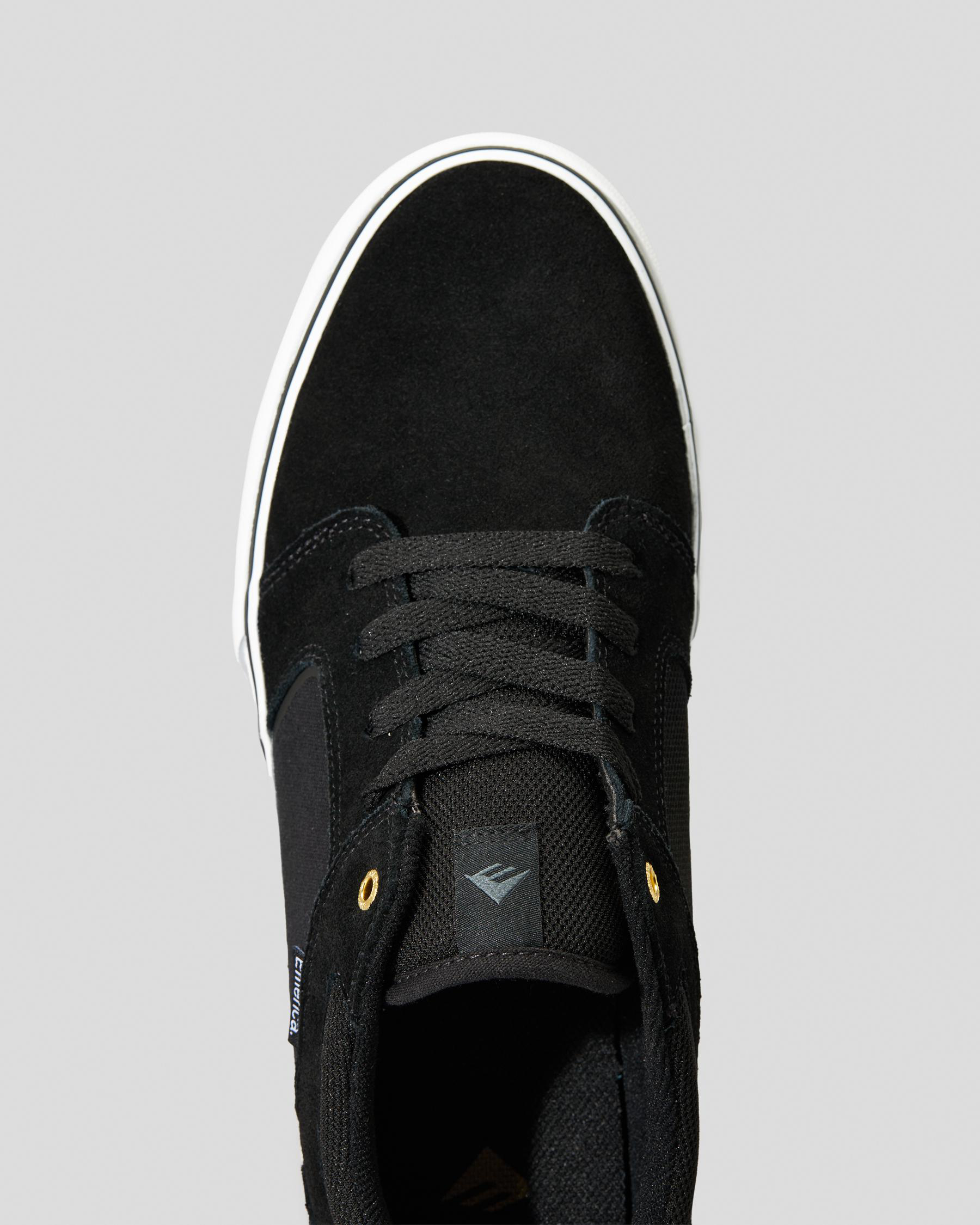 Step out in style with the Emerica Cadence Shoes in sleek black. Featuring a classic black/white/gold colorway, these shoes are perfect for any casual outfit.