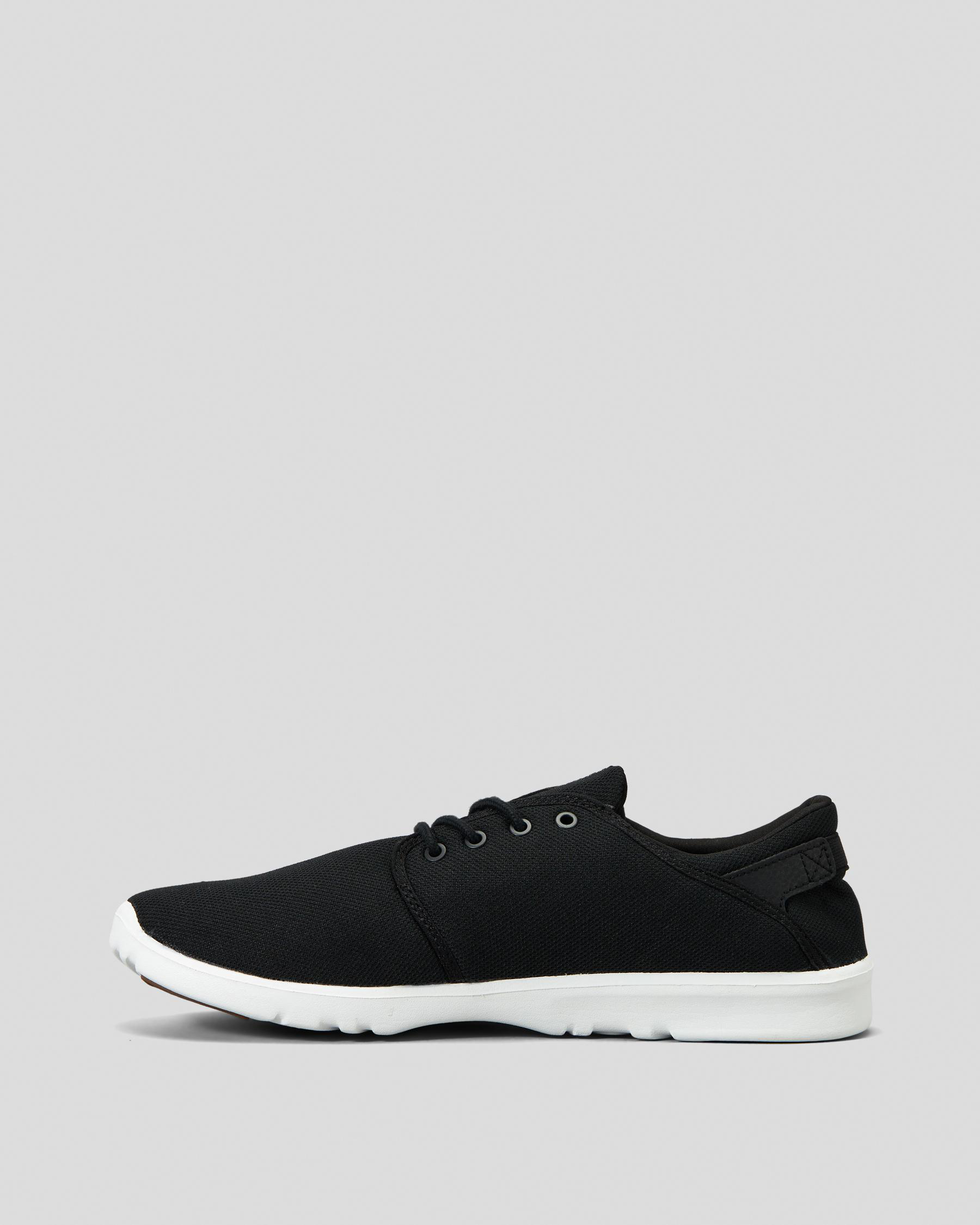 The Etnies Scout Shoes in Black are a stylish and versatile choice for everyday wear. Featuring a sleek black design with a classic white sole and gum outsole.