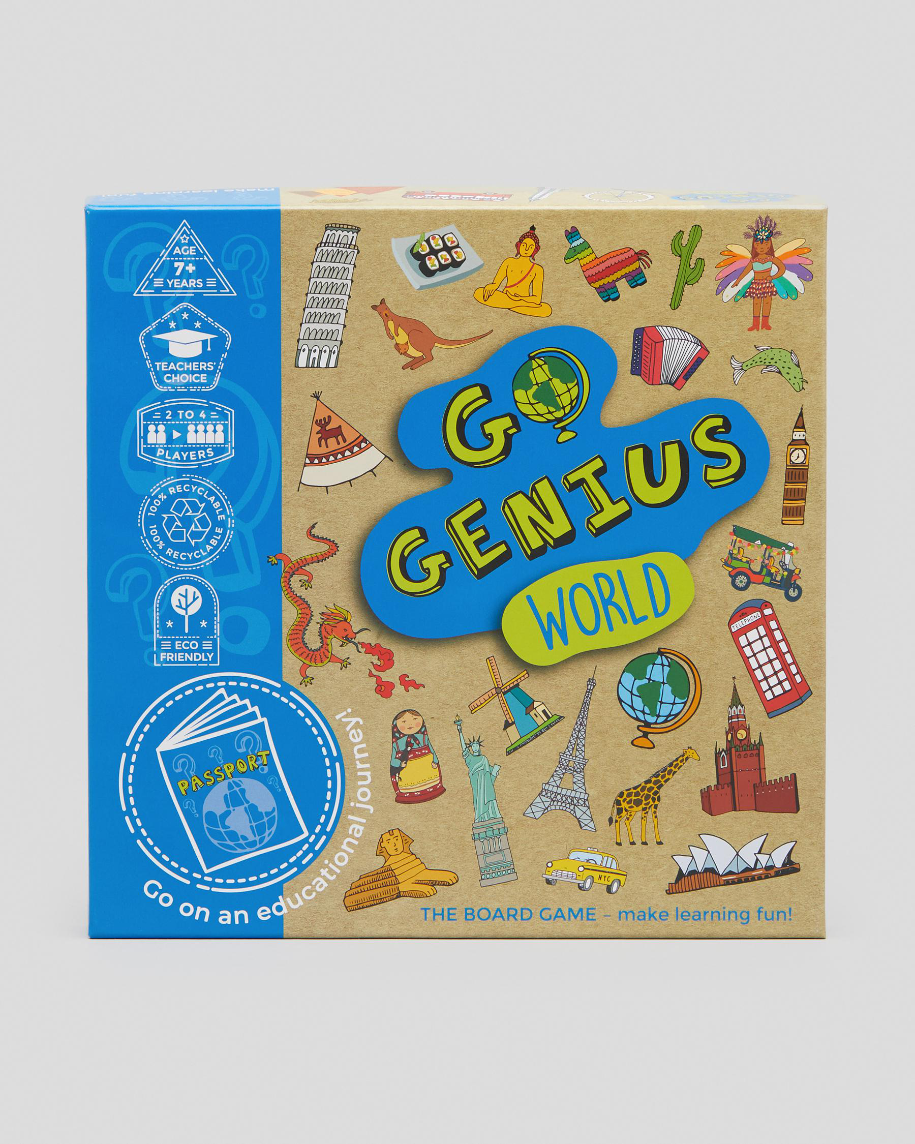 Fun board game with questions in three levels to learn about our wonderful world. From Albania to Zimbabwe, this entertaining board game for 2-4 players is the educational trip of a lifetime.