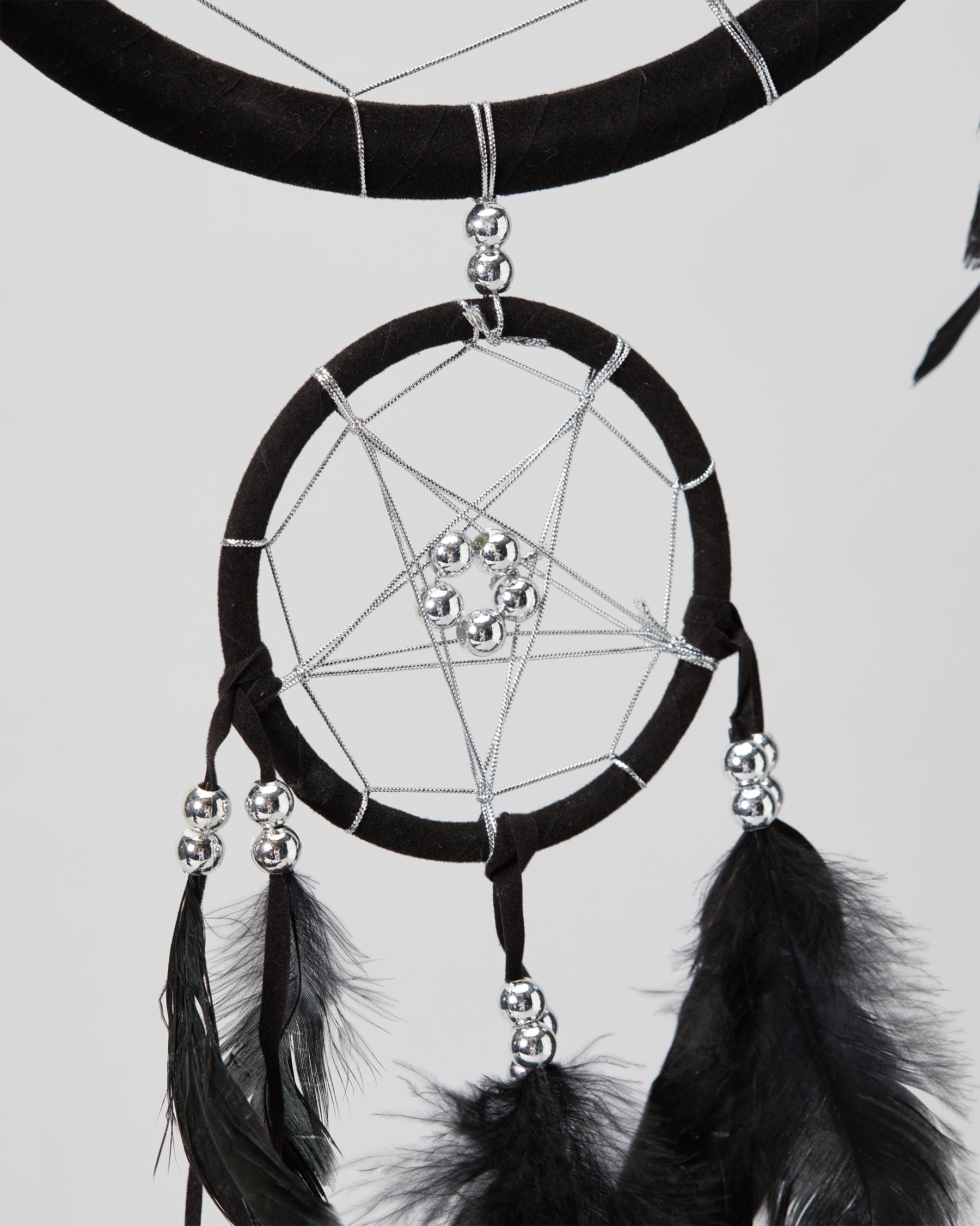 This Pentagram Dream Catcher in black and silver is a striking addition to any room, offering protection and positivity.