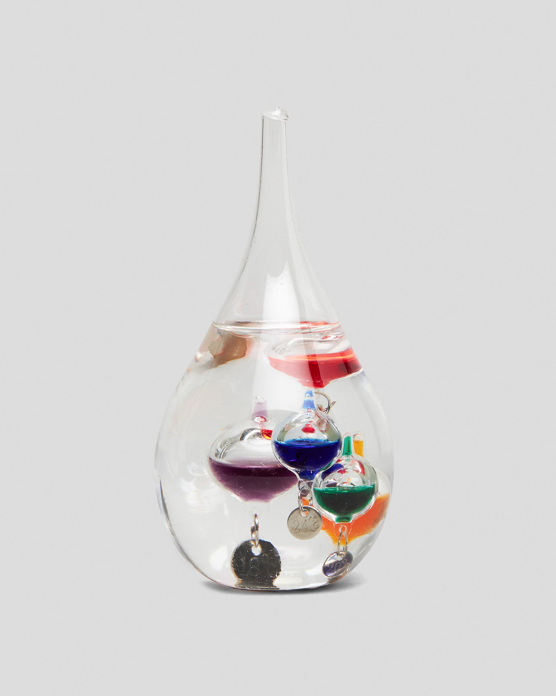 This glass Galileo Thermometer displays the approximate temperature and is interesting home décor item.
