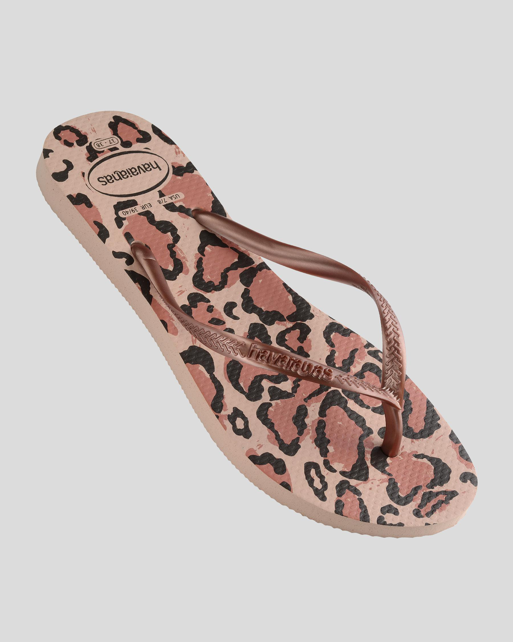 Slim straps, Textured footbed, Branded strap, Printed footbed