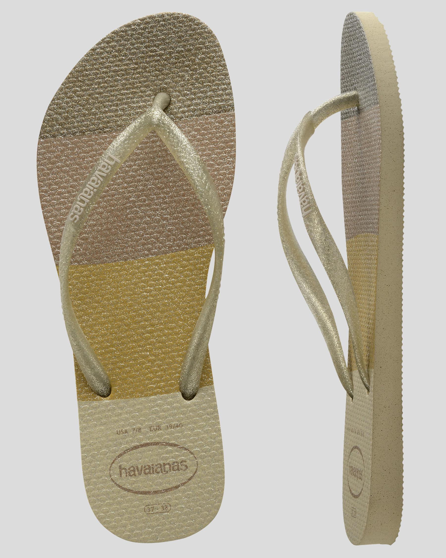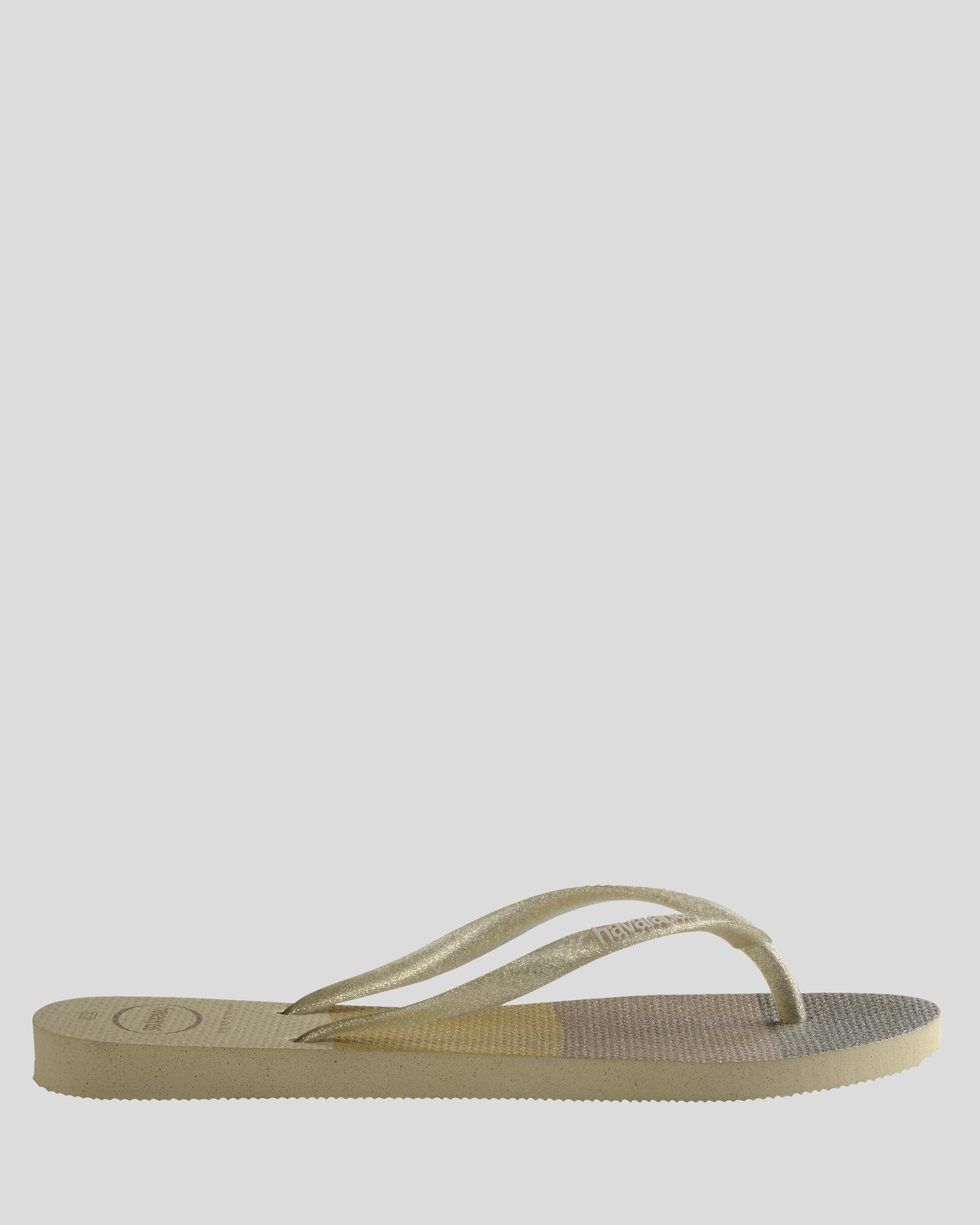 The Havaianas Kids' Slim Palette Glow Thongs in Sand Grey offer a stylish and versatile option for summer footwear, perfect for little ones on the go.