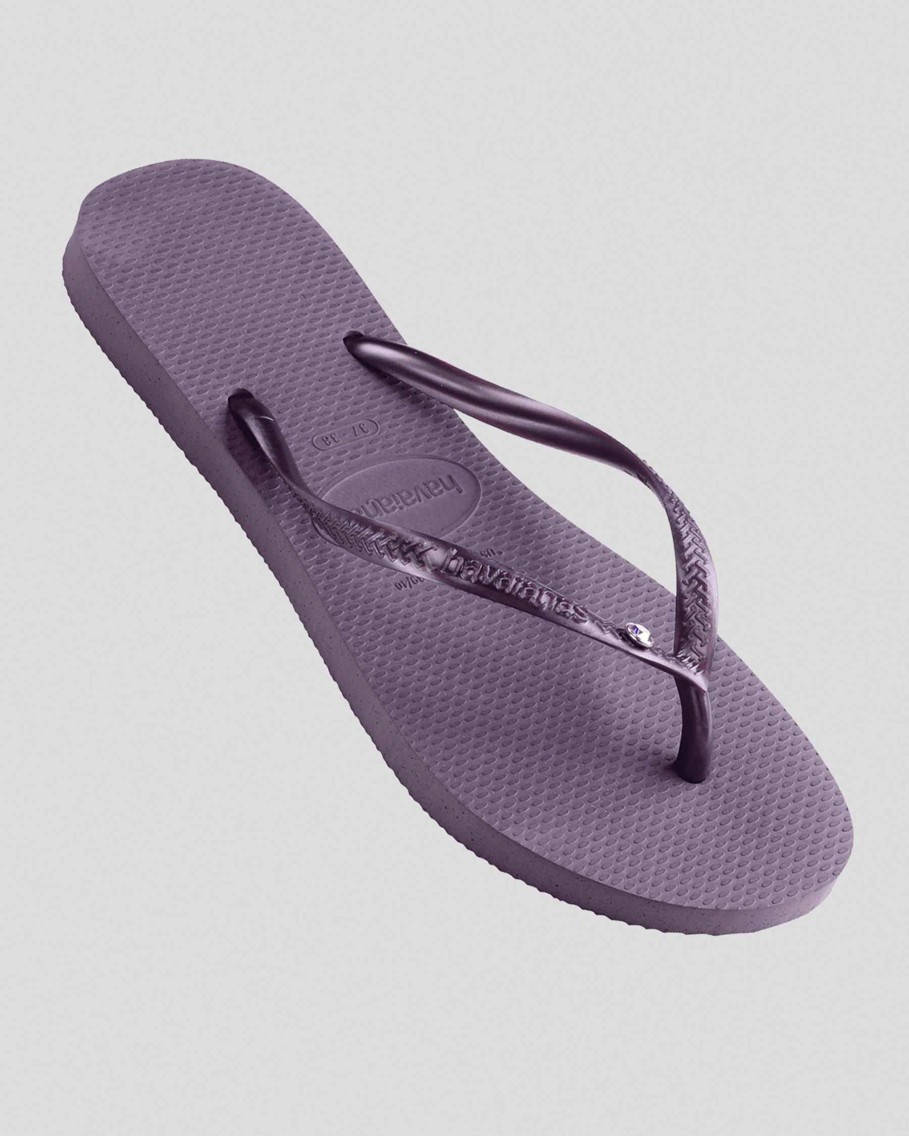 Add a touch of elegance to your summer look with the Havaianas Slim Crystal II Thongs in Malve. The beautiful mauve color will elevate any outfit.