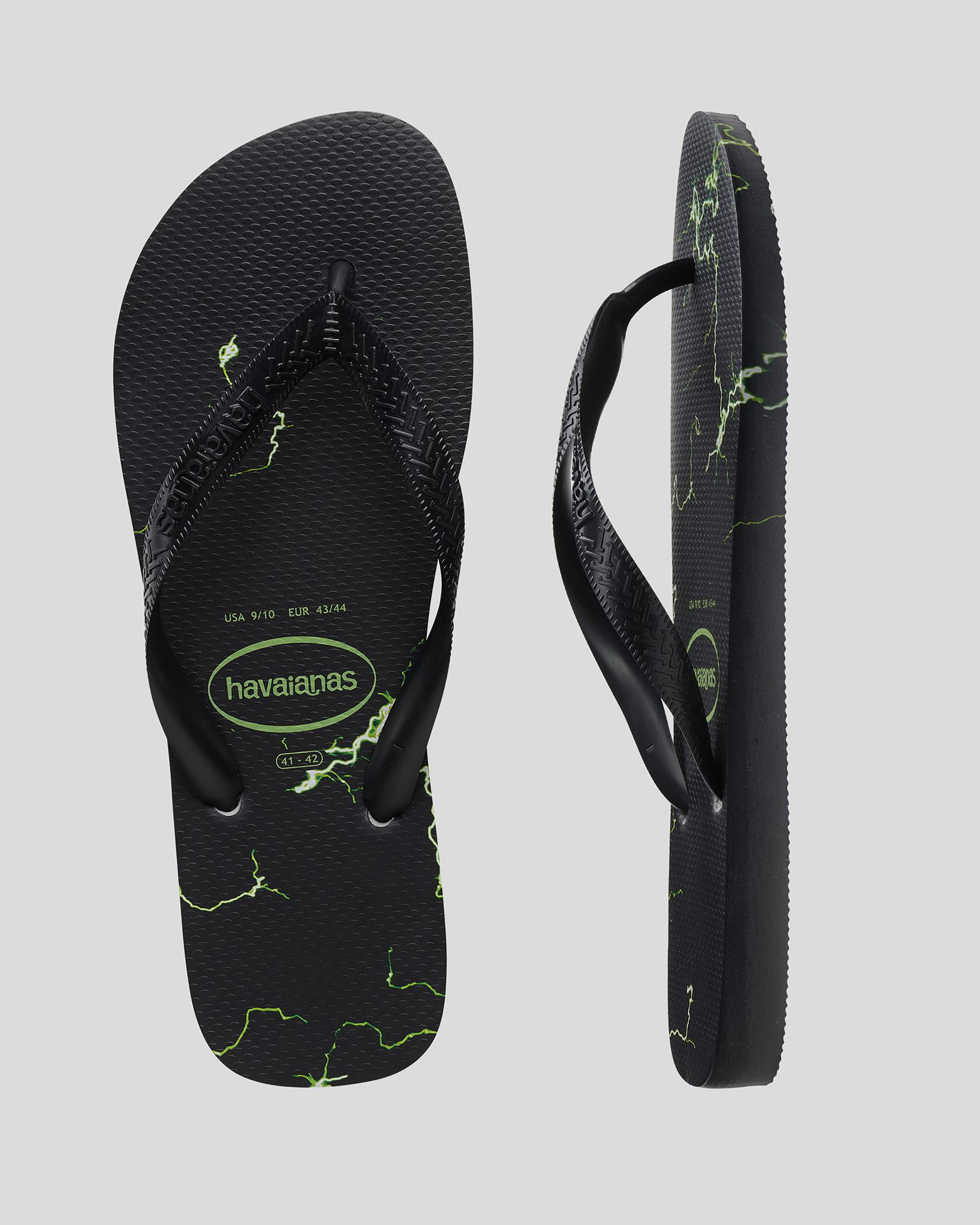 Slip into the sleek black/green Havaianas Top Lightning Thongs for a pop of color with a comfortable fit.