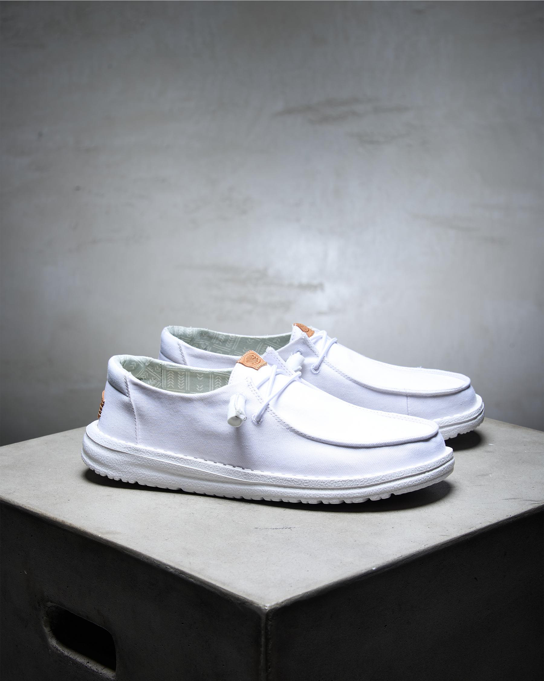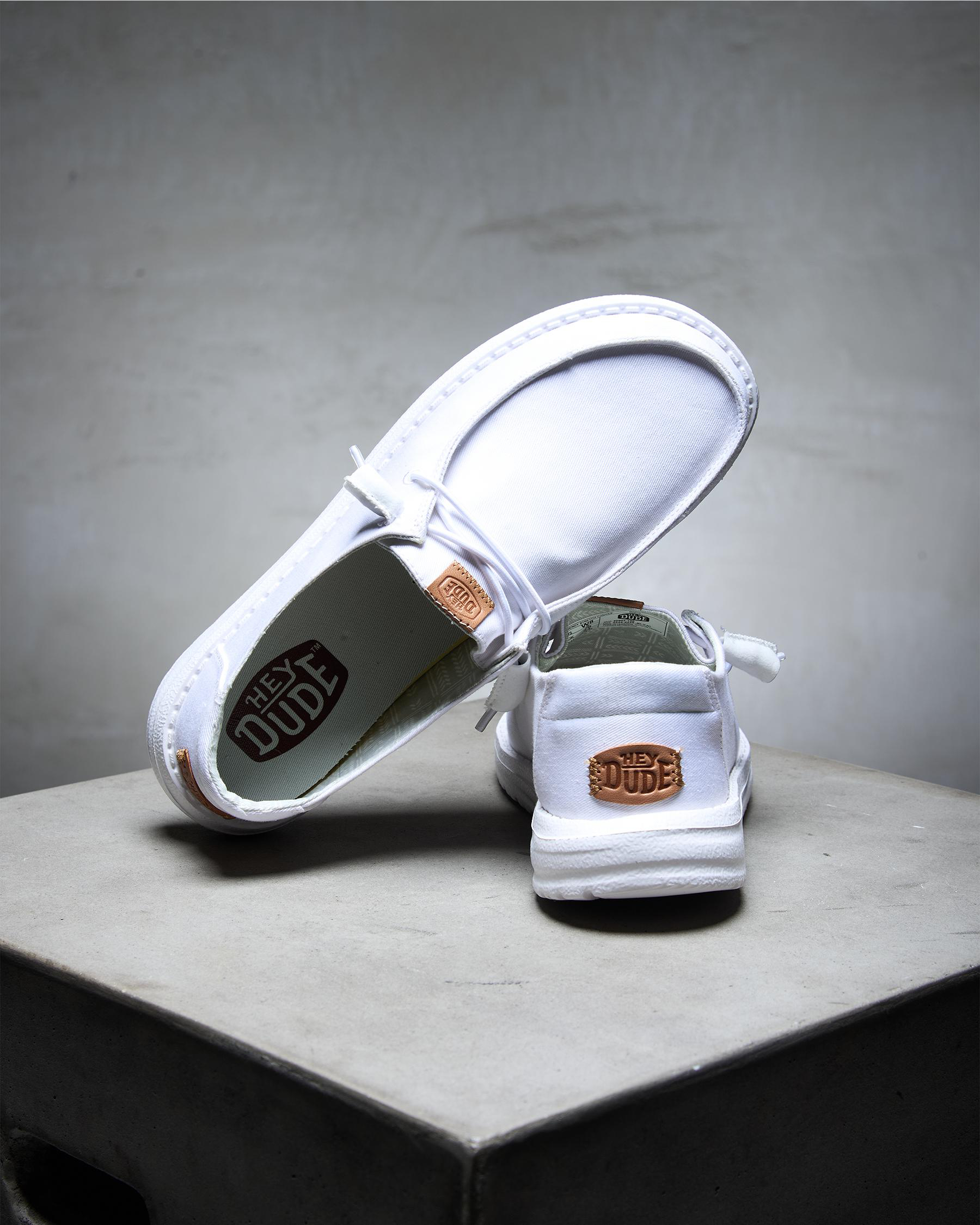 The HEYDUDE Wendy Stretch Canvas Shoe in White is a versatile and stylish option for everyday wear.