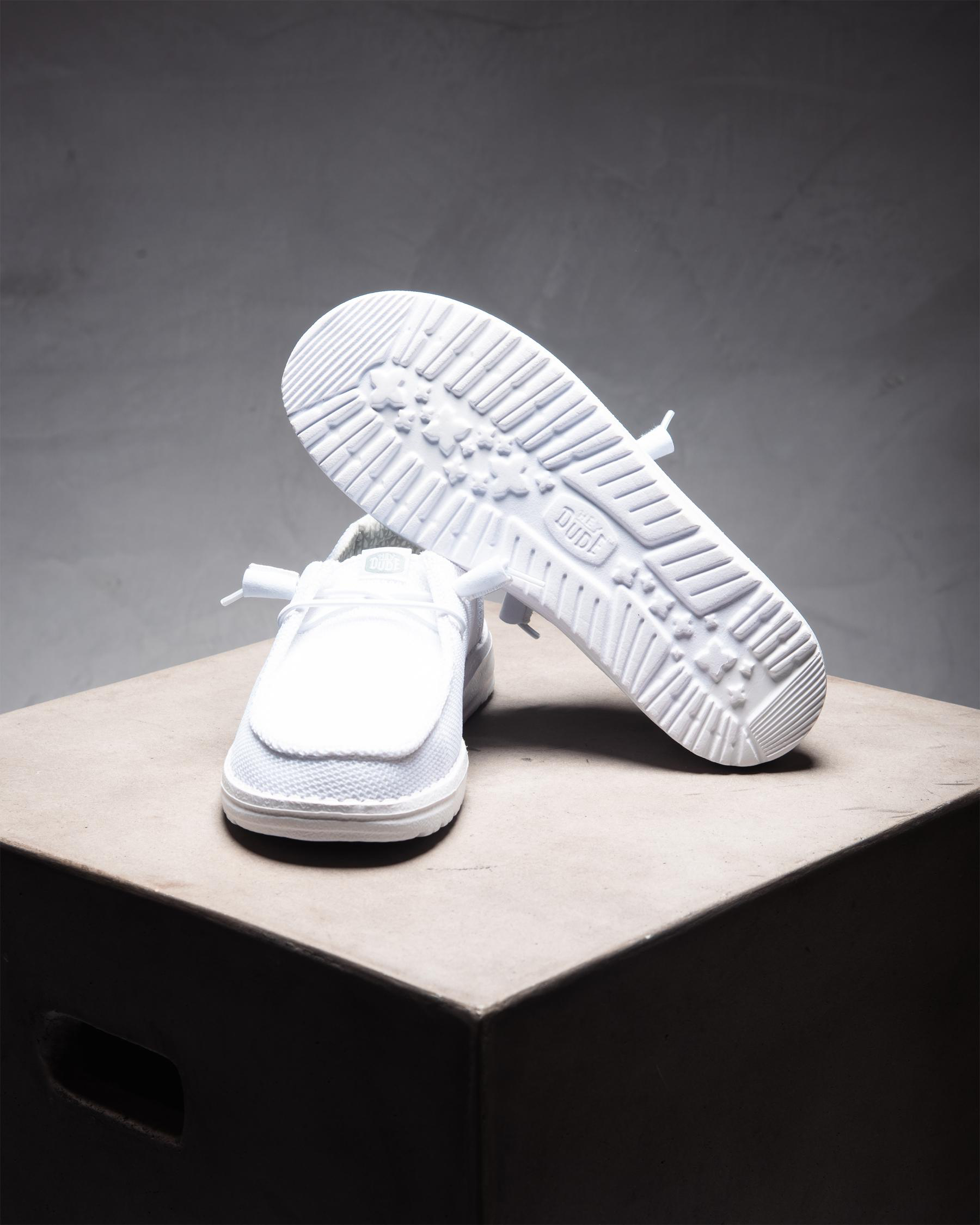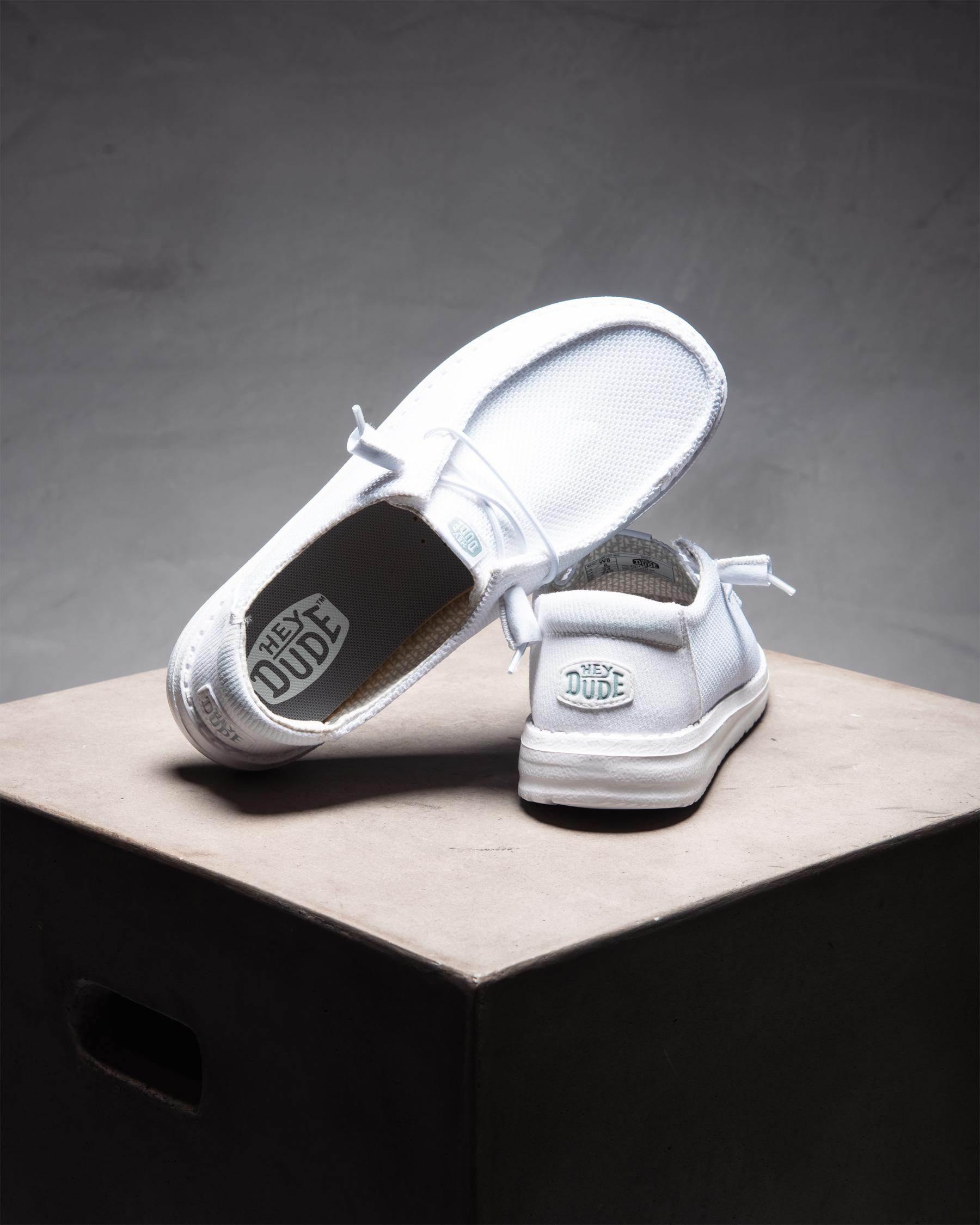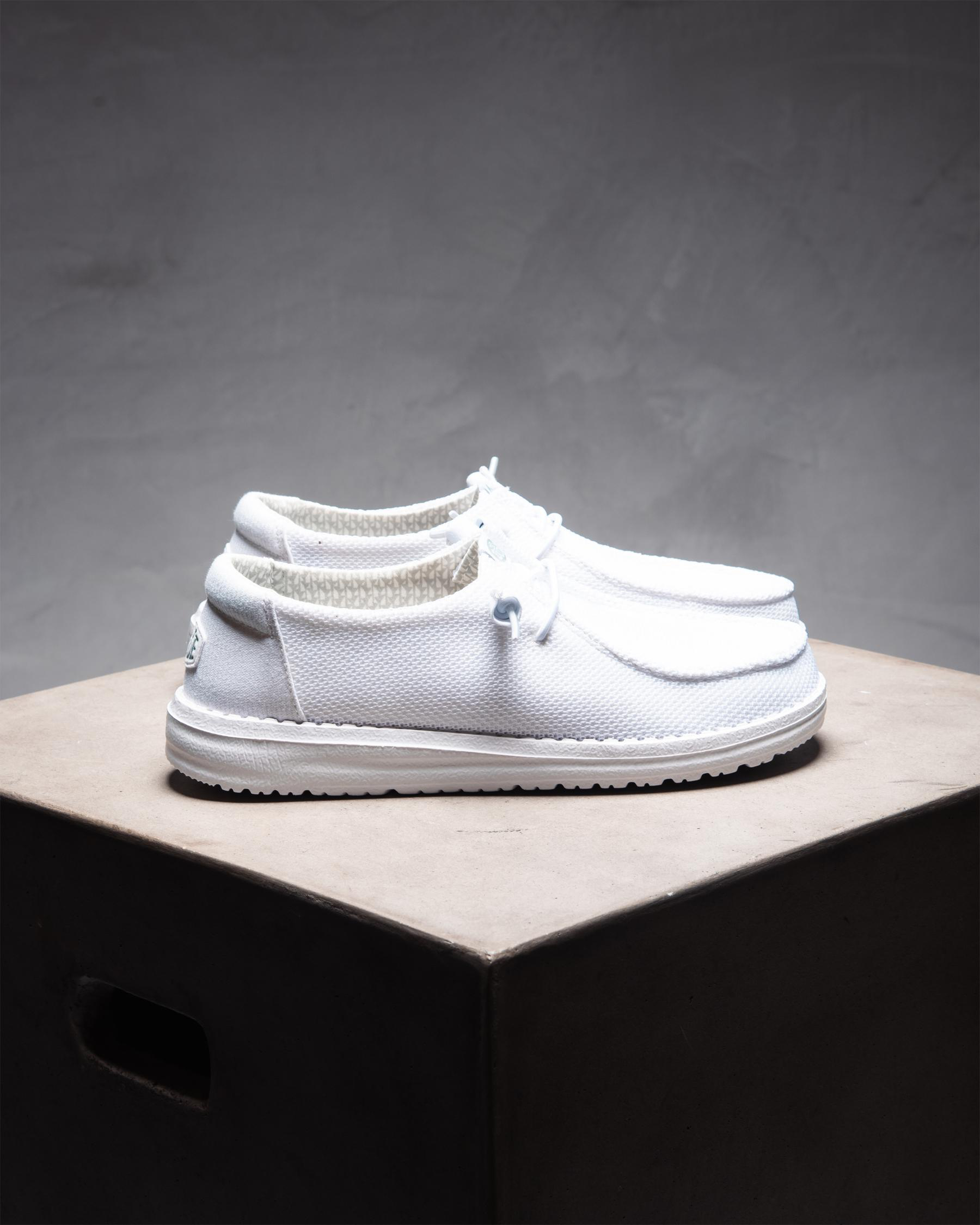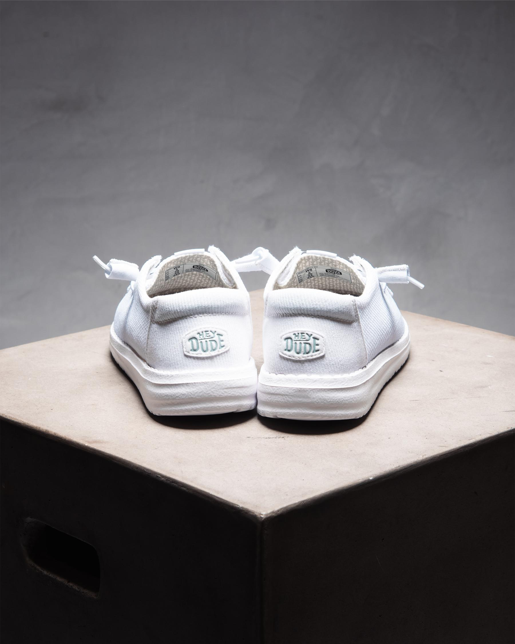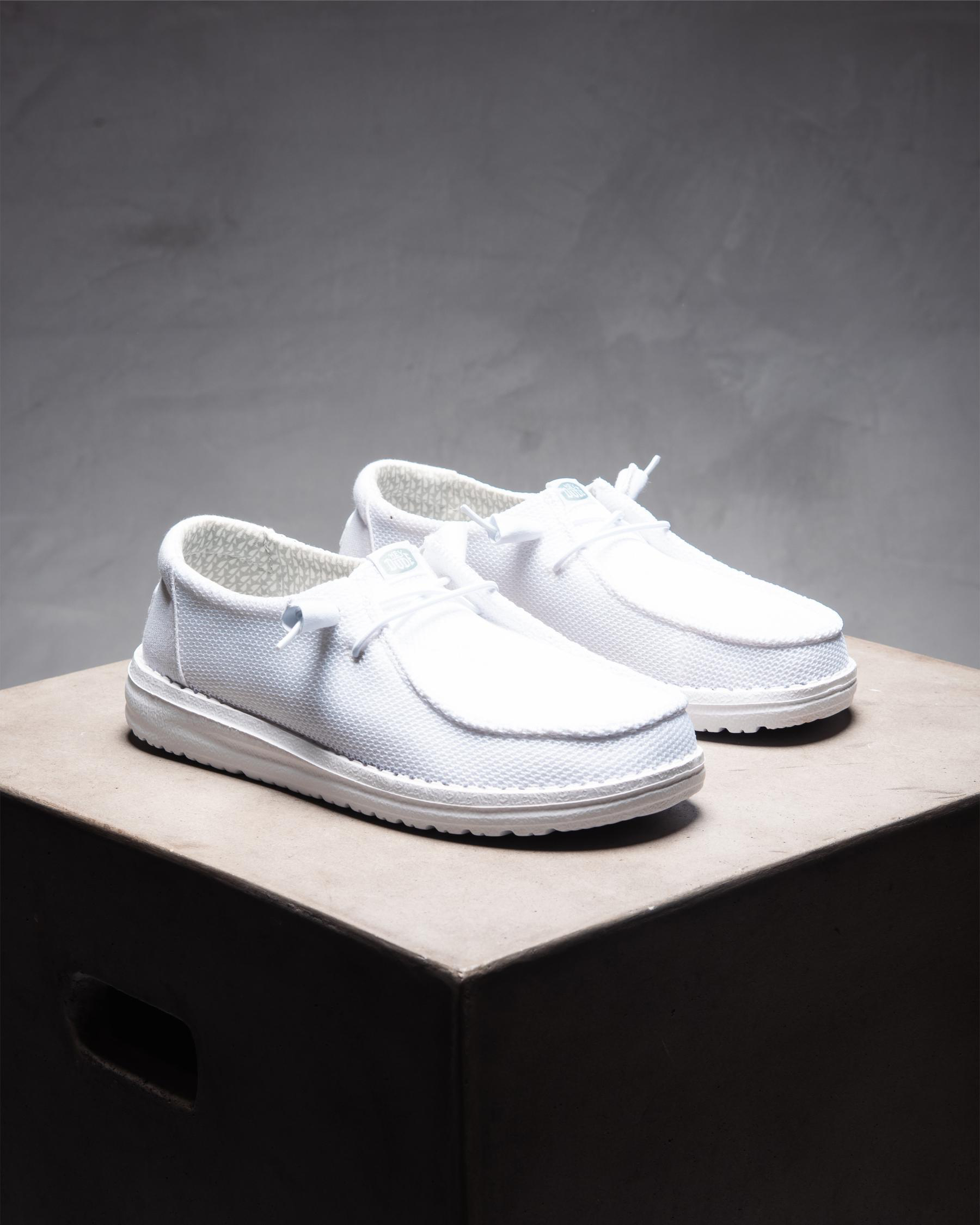 Step out in style with the HEYDUDE Wendy Stretch Mesh Shoe in sleek white. These versatile shoes are perfect for any casual occasion.