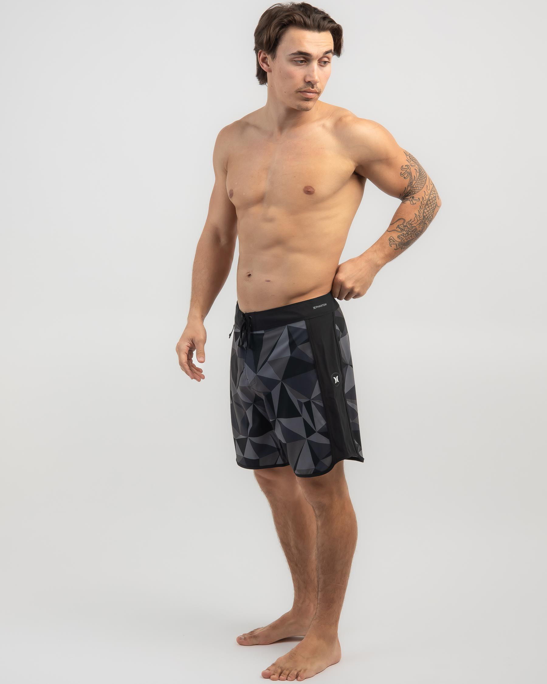 The Hurley Phantom Sweep Geo Board Short in Black is a sleek and stylish option for your beachwear collection.