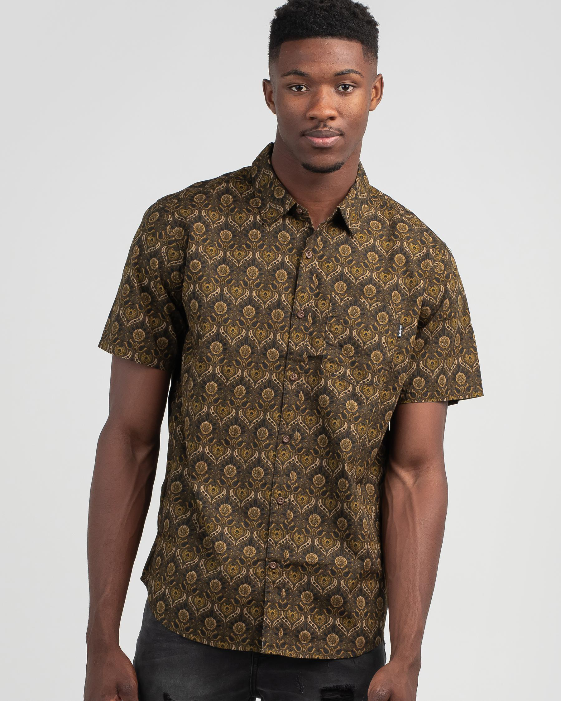 The Hurley Wedge Shirt in Sequoia boasts a rich, earthy tone that adds a touch of sophistication to your outfit.