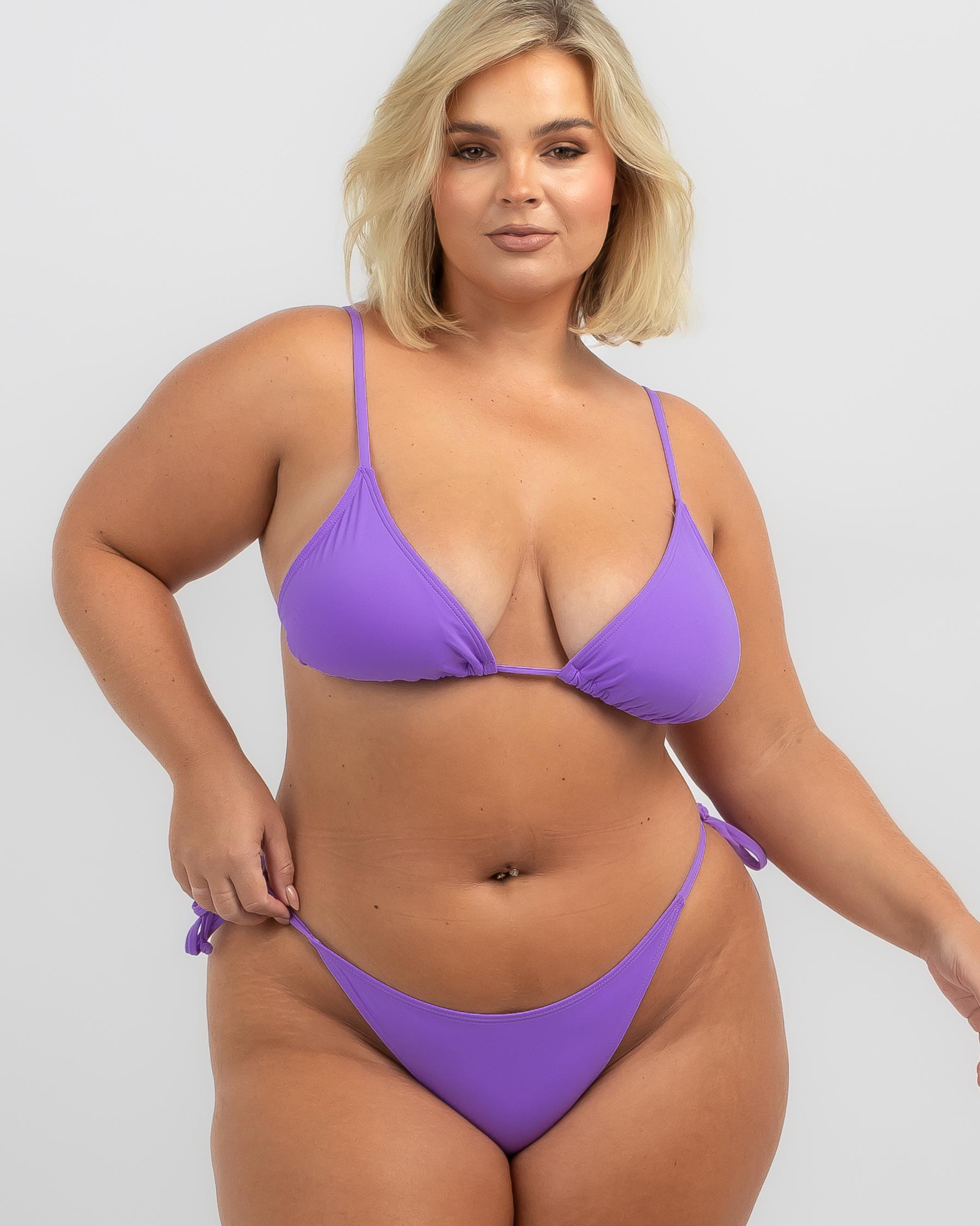 The Kaiami Lara Triangle Bikini Top in Hyacinth is a stunning choice for summer with its vibrant purple hue and classic triangle design.
