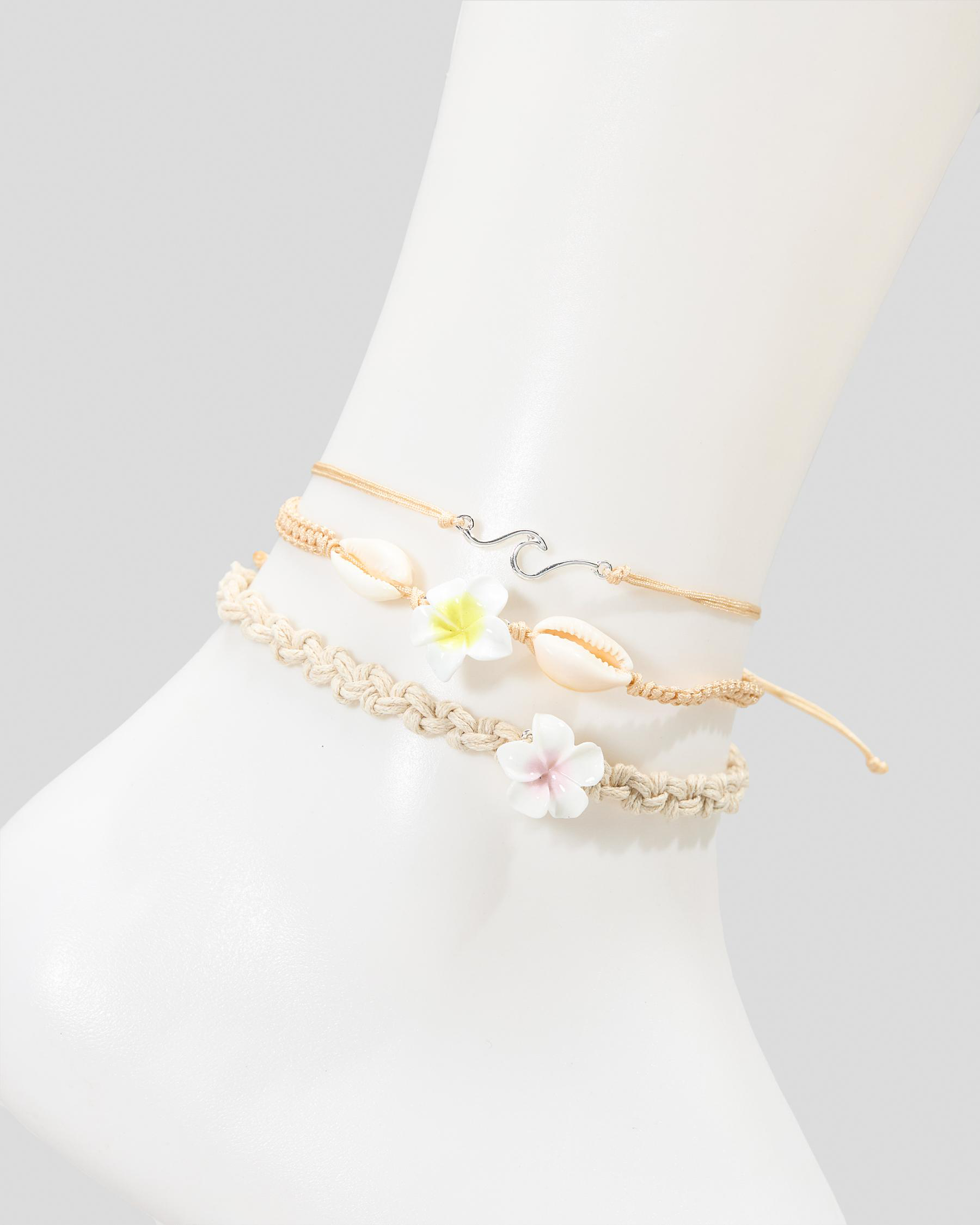 Indulge in the natural beauty of the Frangipani anklet pack by Shop Karyn In LA. This pack features a singular natural color, perfect for adding a touch of tropical flair to any outfit.