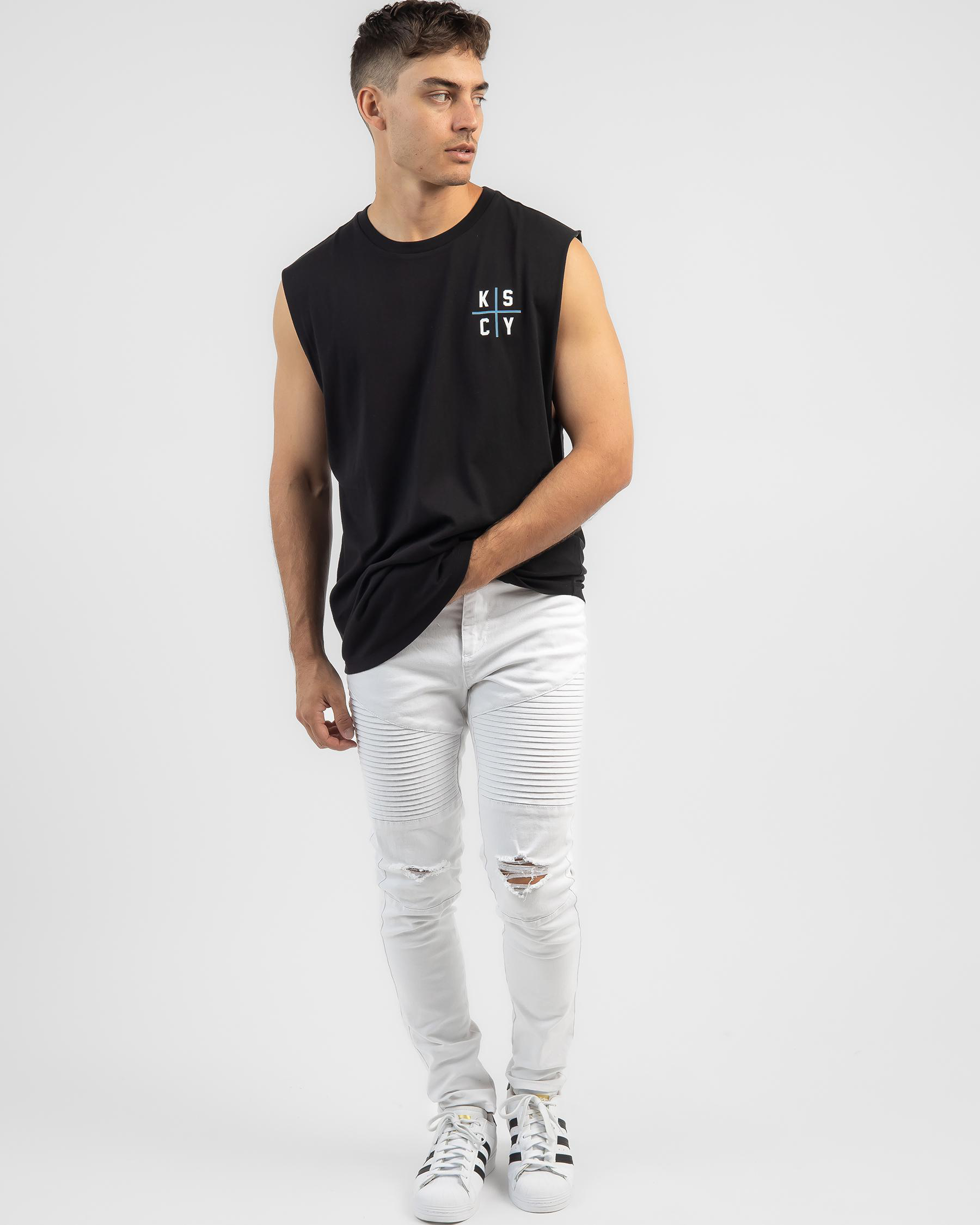 The Kiss Chacey Speedway Dual Curved Muscle Tank in Jet Black offers a sleek and stylish look for any occasion.