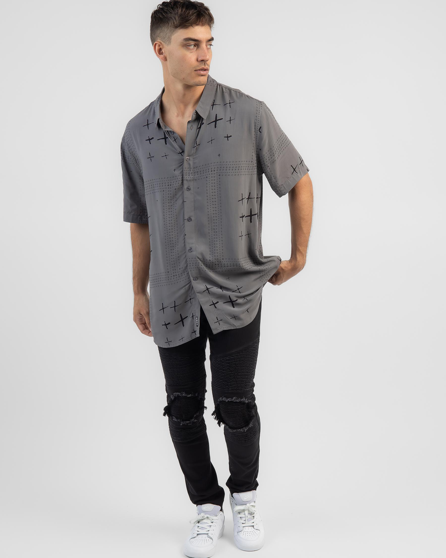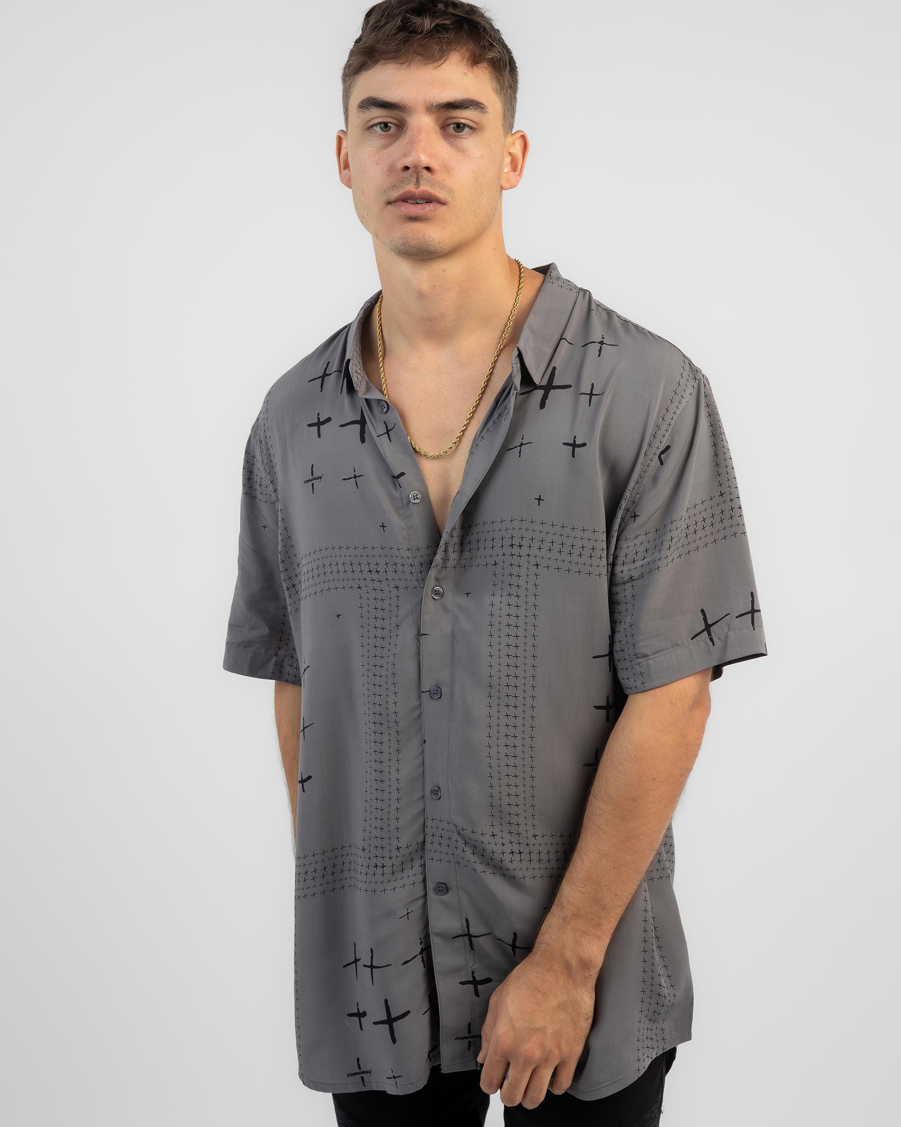 The Kiss Chacey Toro Relaxed Short Sleeve Shirt in Charcoal Print offers a versatile and stylish addition to your wardrobe.