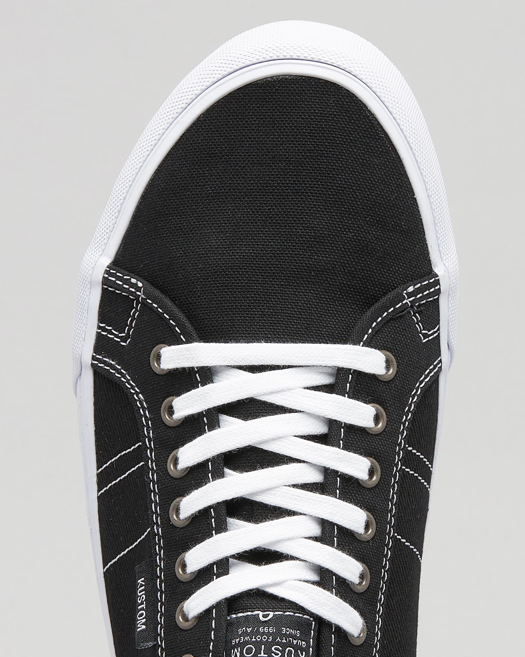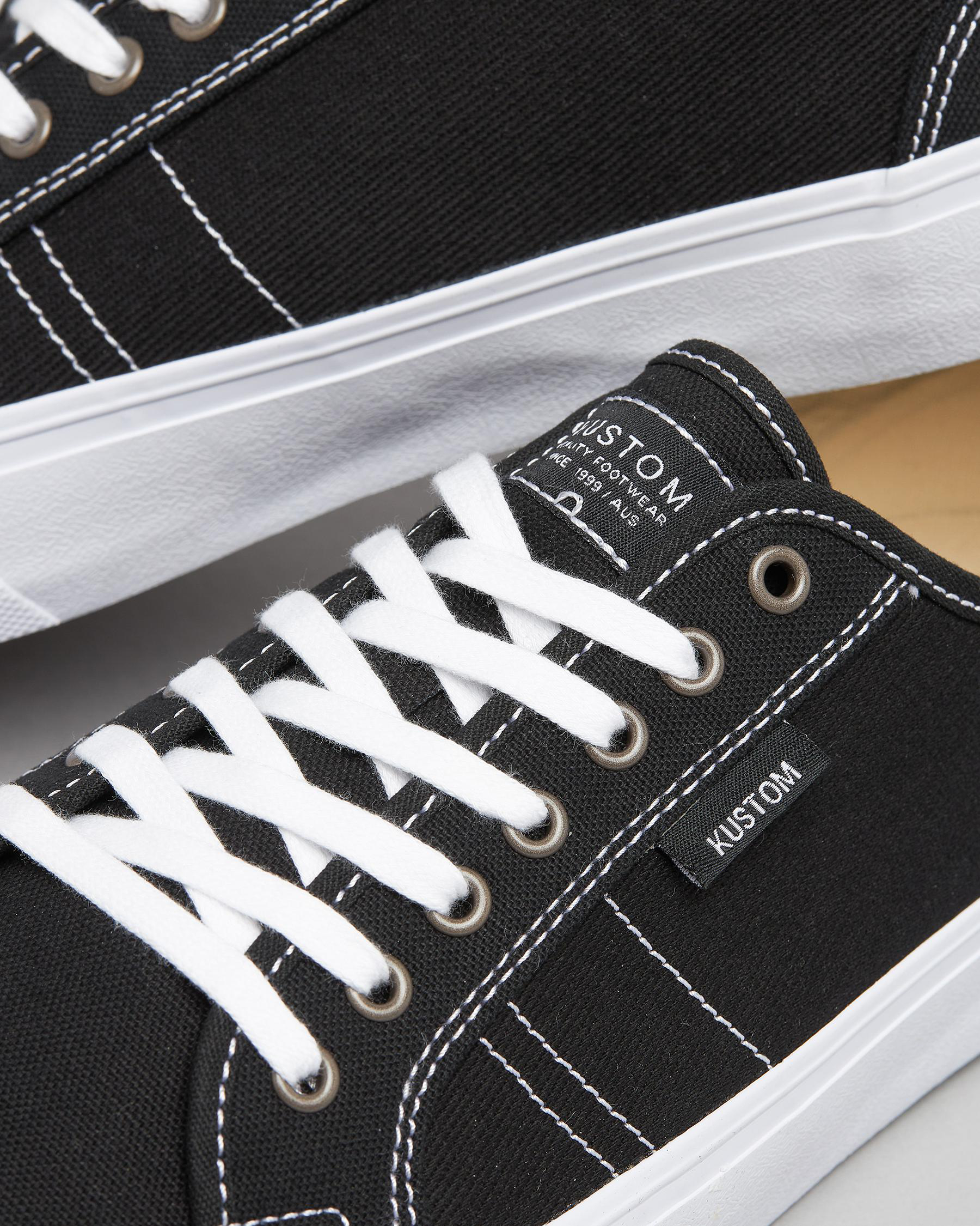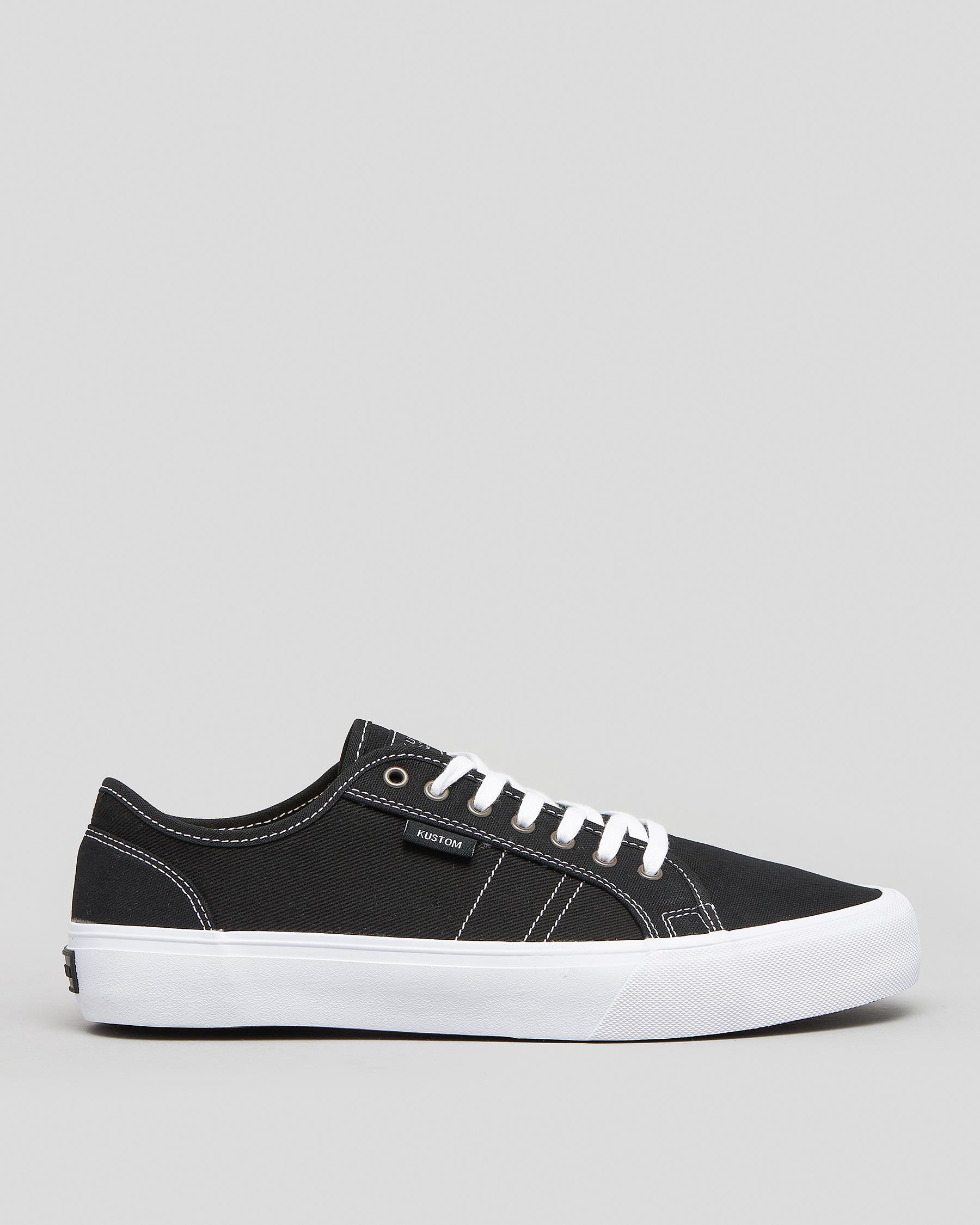 The Kustom World-Wide Lo-Cut Shoe in black is a versatile and stylish choice for everyday wear.