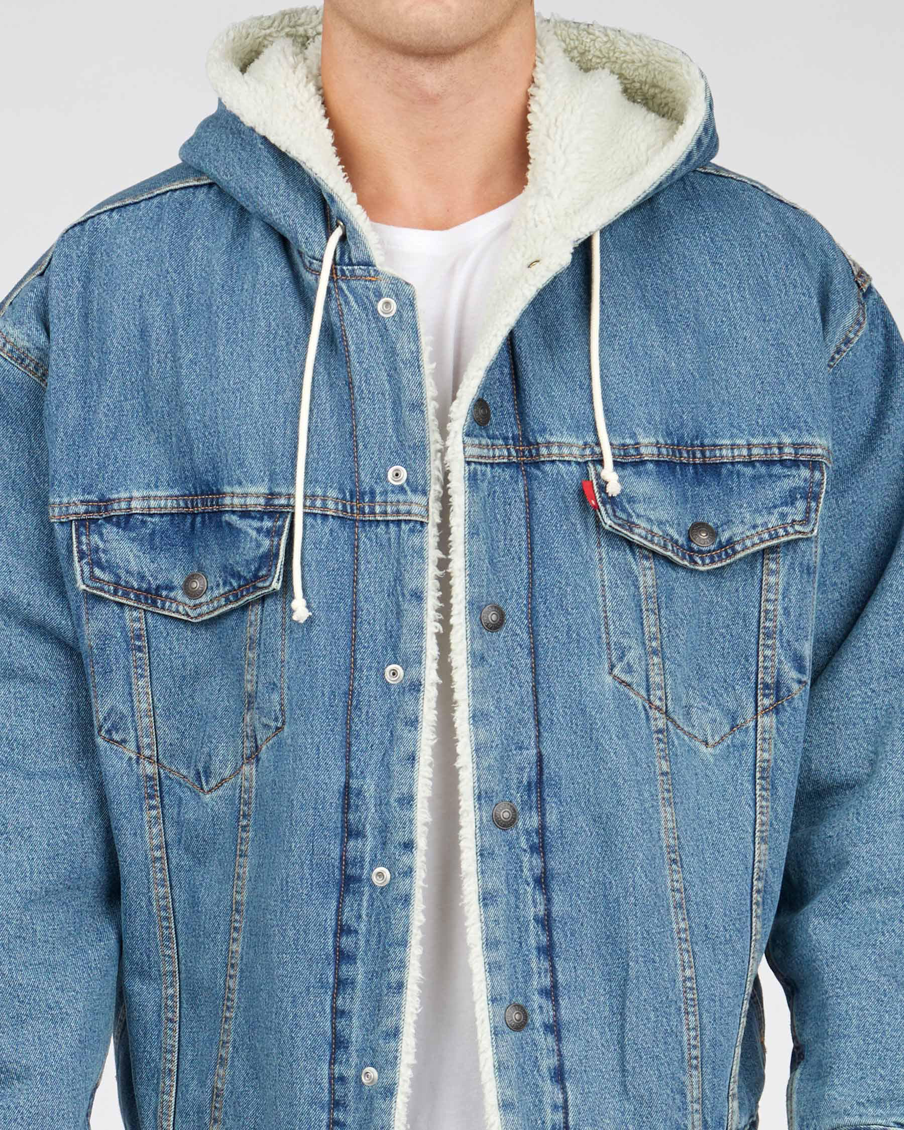 Mens Trucker Hooded Sherpa Jacket