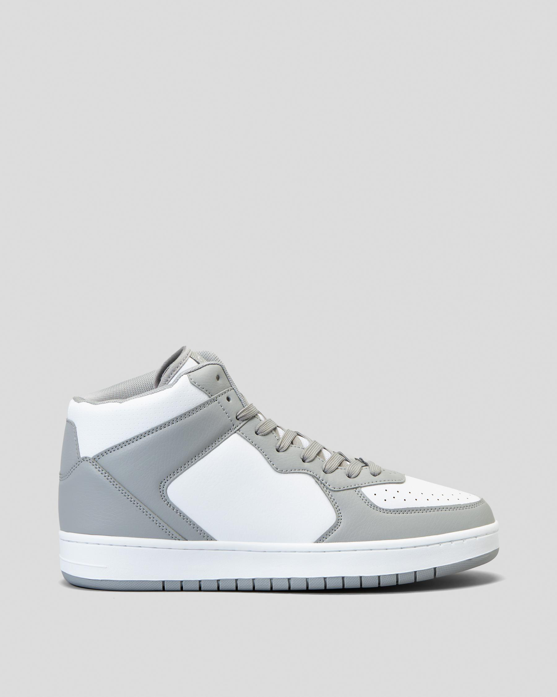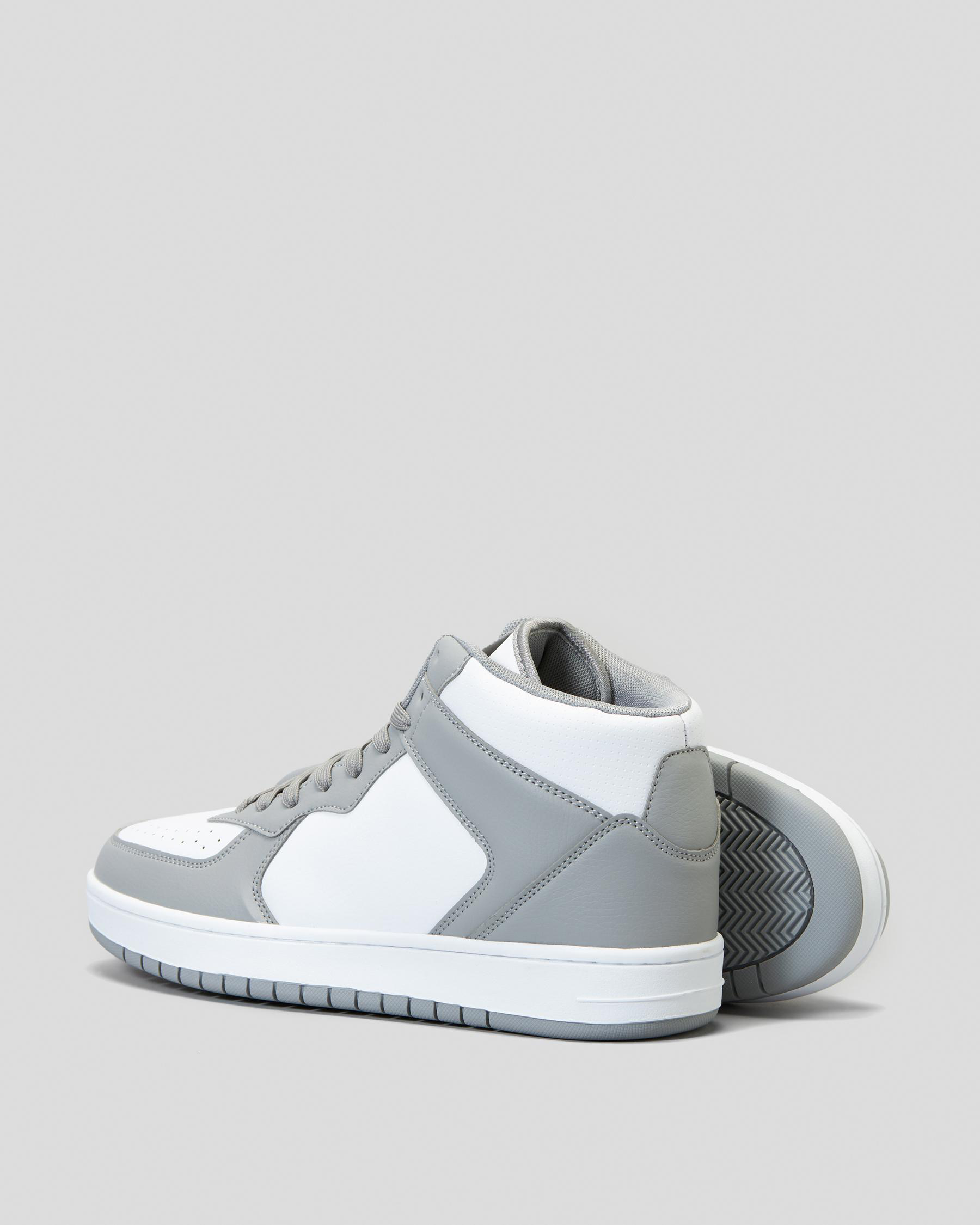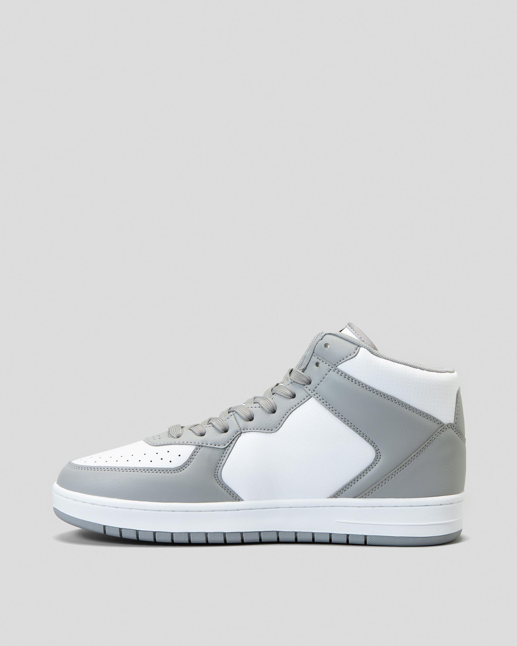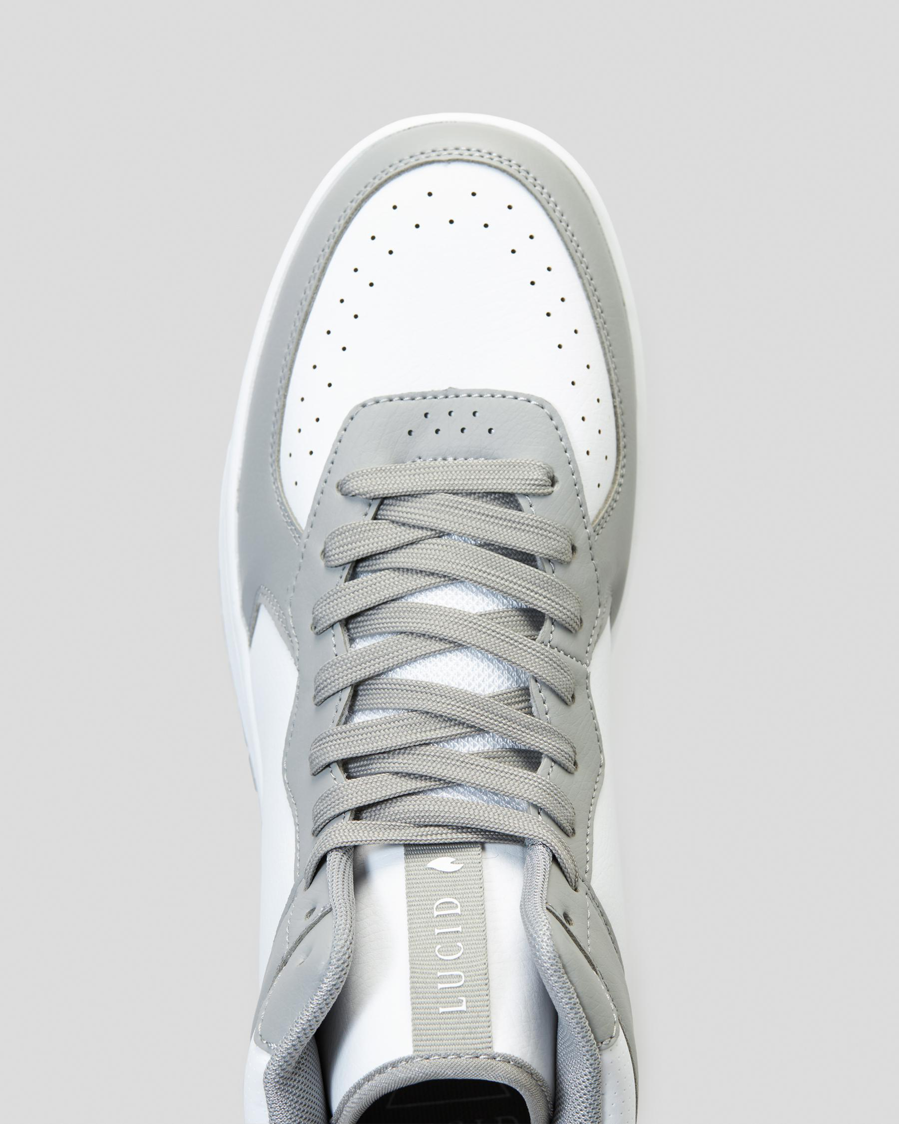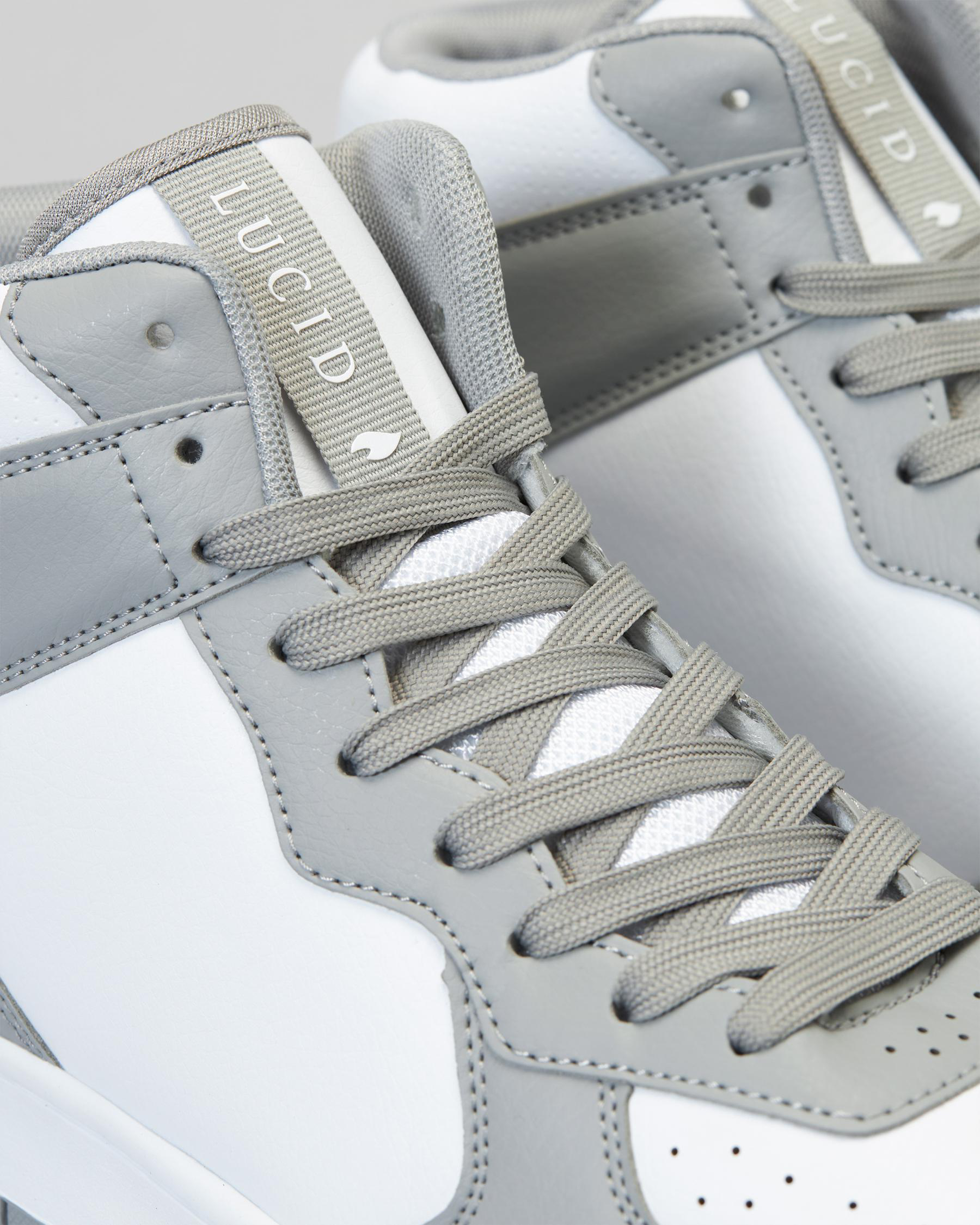 The Lucid Alpha High-Top Shoes in grey are a stylish choice for everyday wear. With a sleek design and white accents, these shoes are perfect for any outfit.