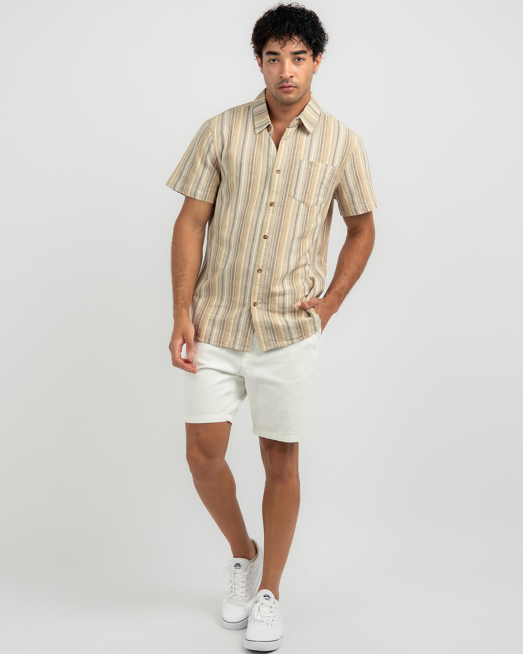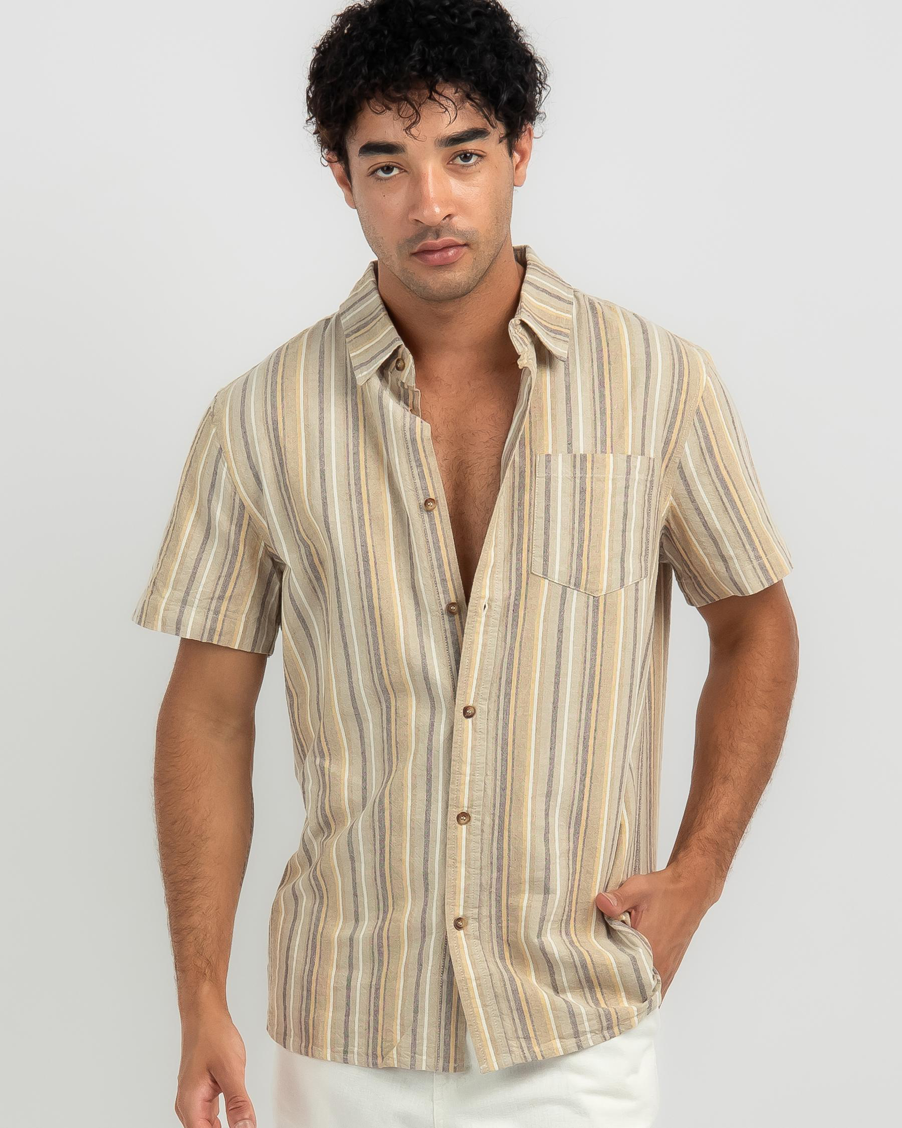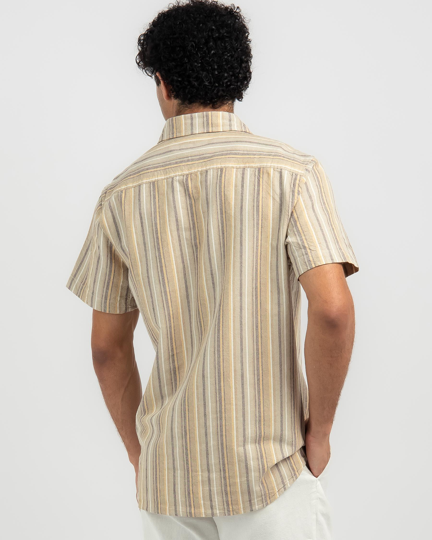 The Lucid Border Short Sleeve Shirt in a classic stripe pattern is a versatile addition to your wardrobe, perfect for any occasion.