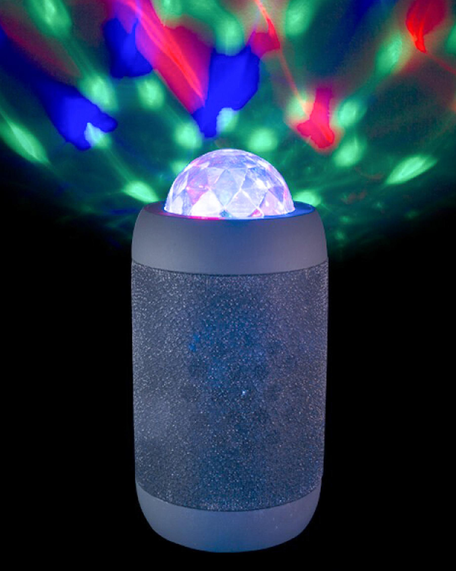 The disco ball projects colourful lights as your music plays.