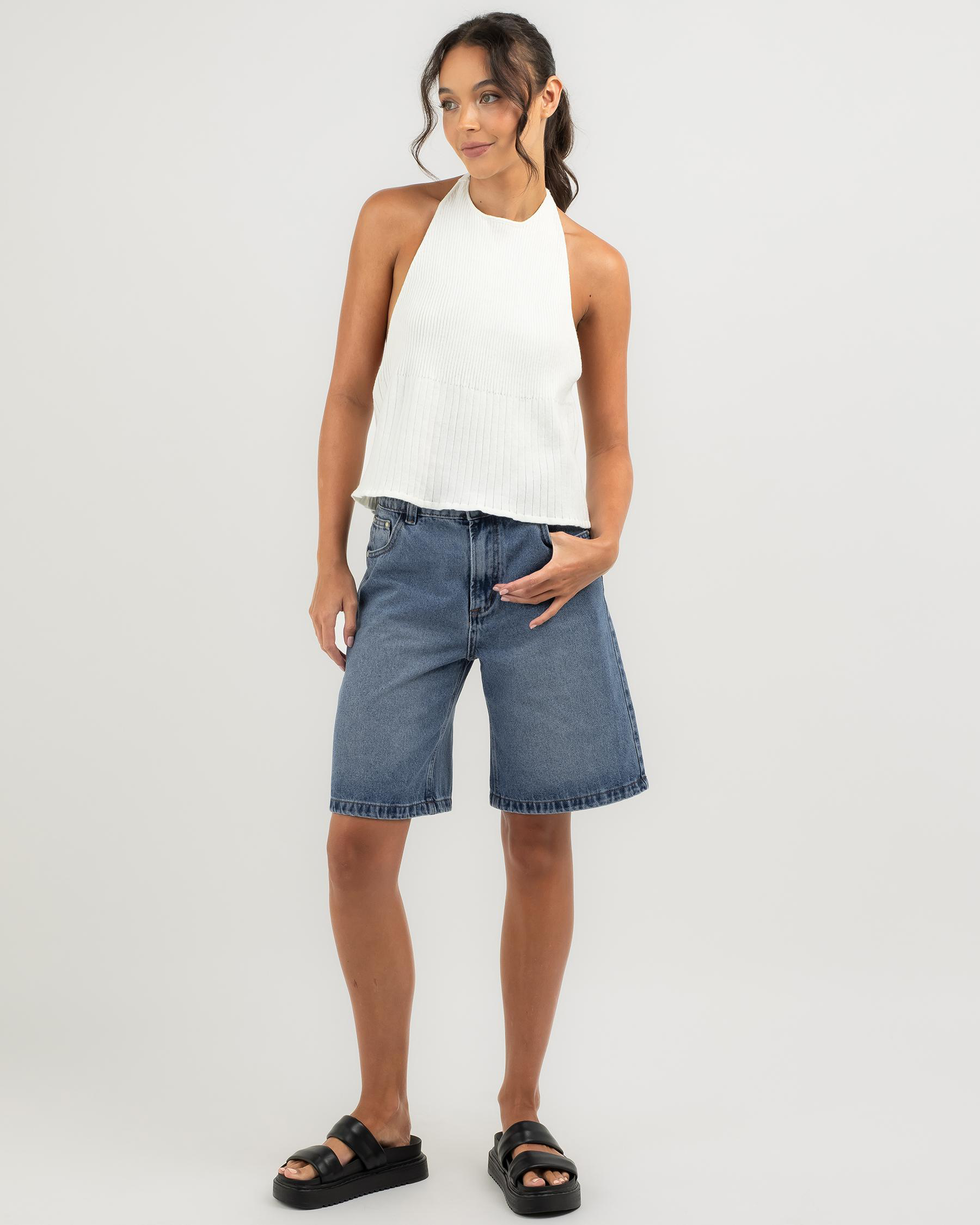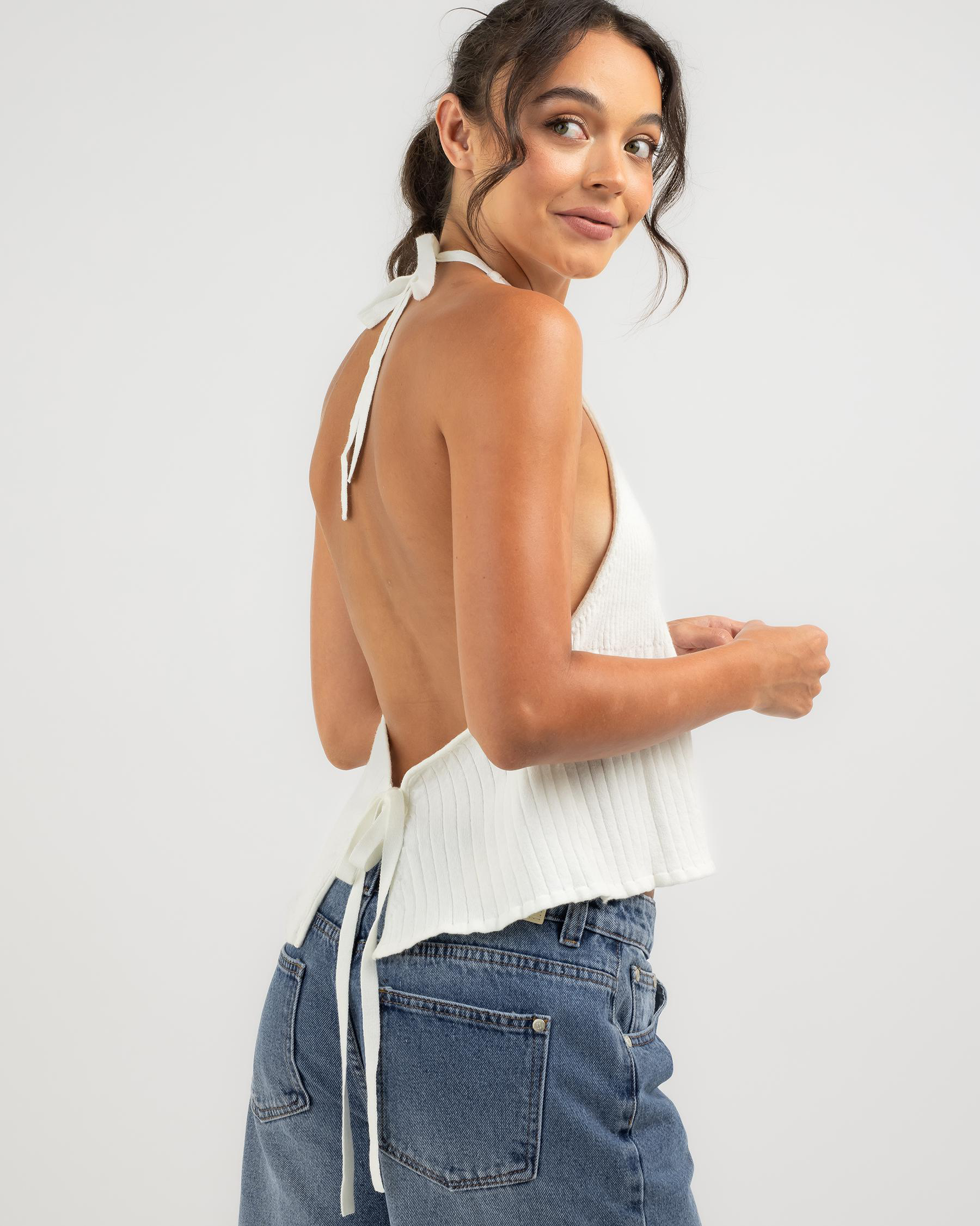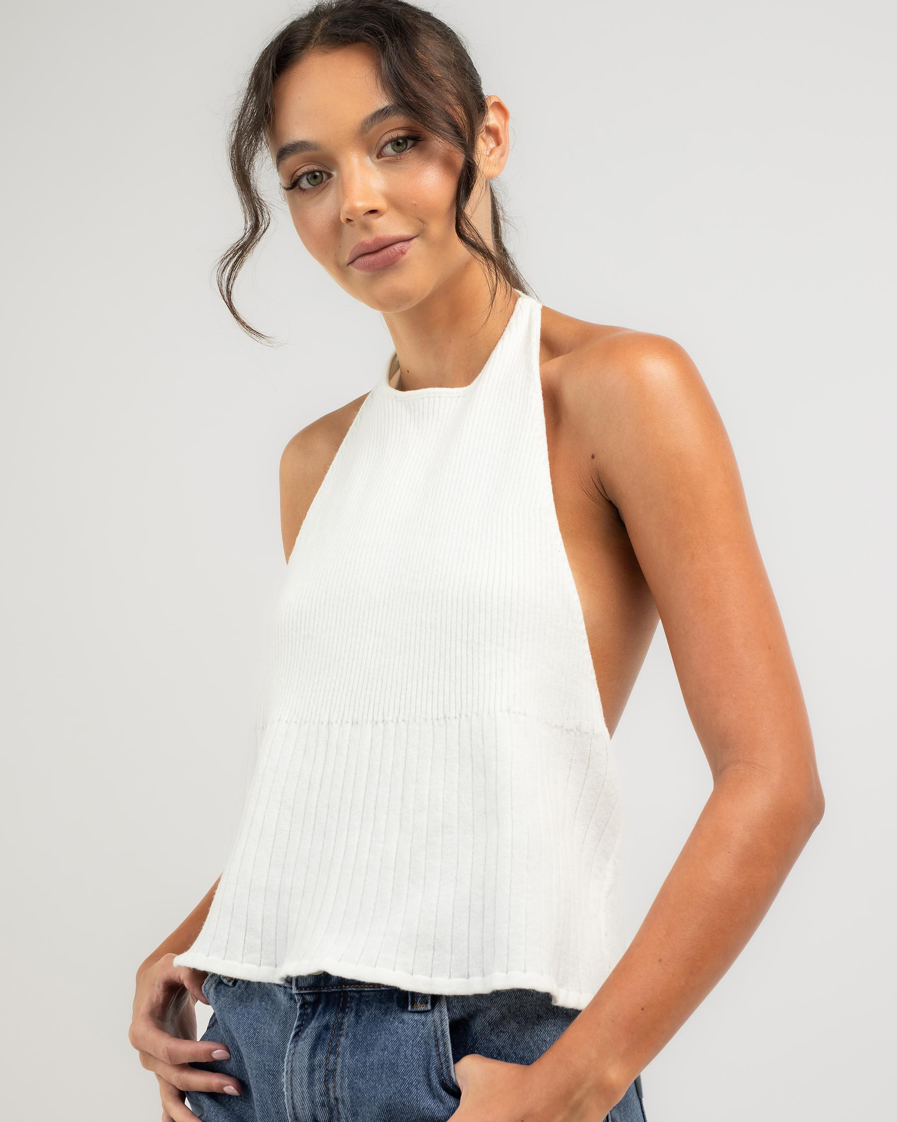 The Mint Vanilla Edwina Halter Neck Knit Top in White is a versatile and chic addition to your wardrobe, perfect for summer days and nights.