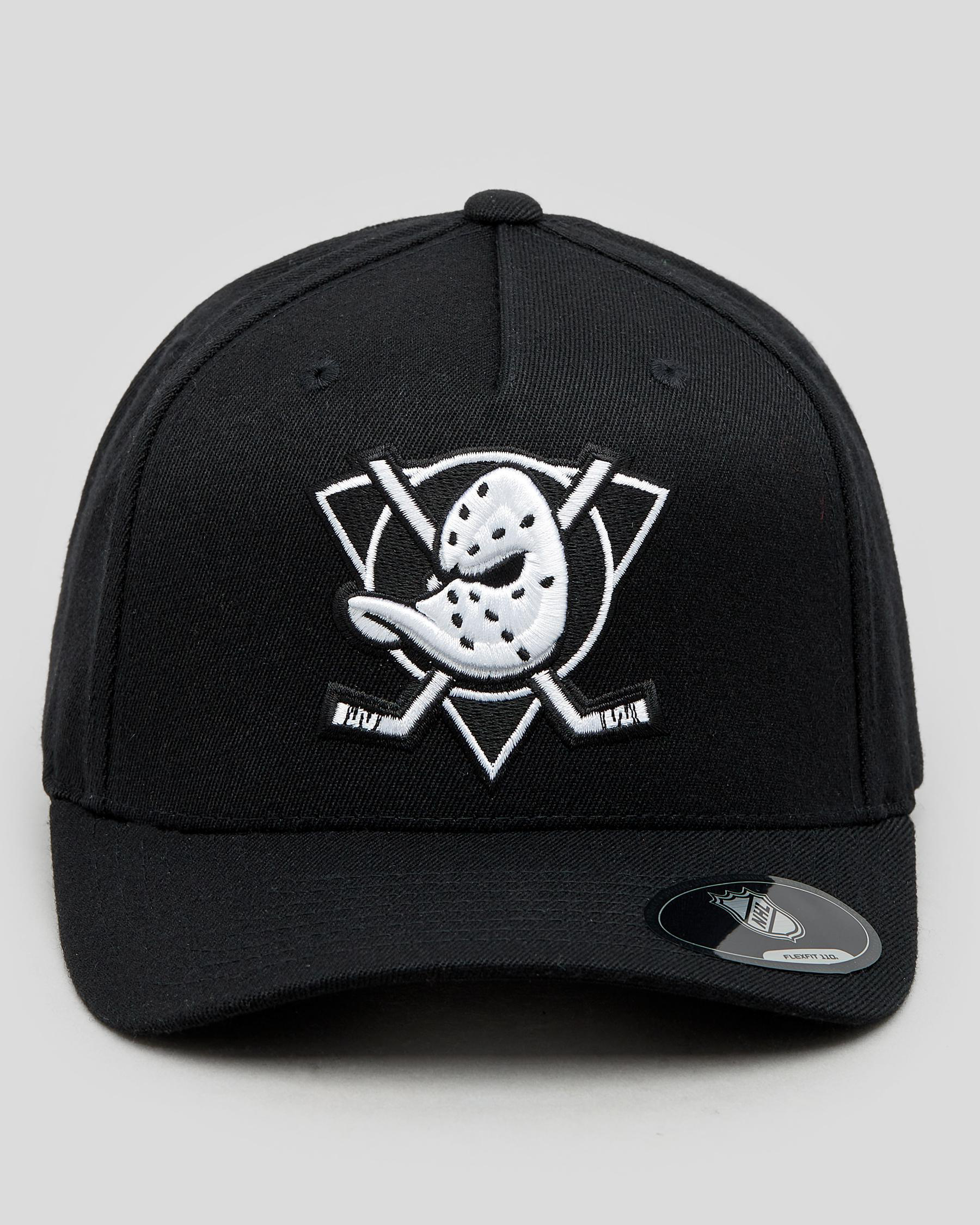 Mens Anaheim Ducks Black and White Crest High Crown 110 Pinch Panel Cap