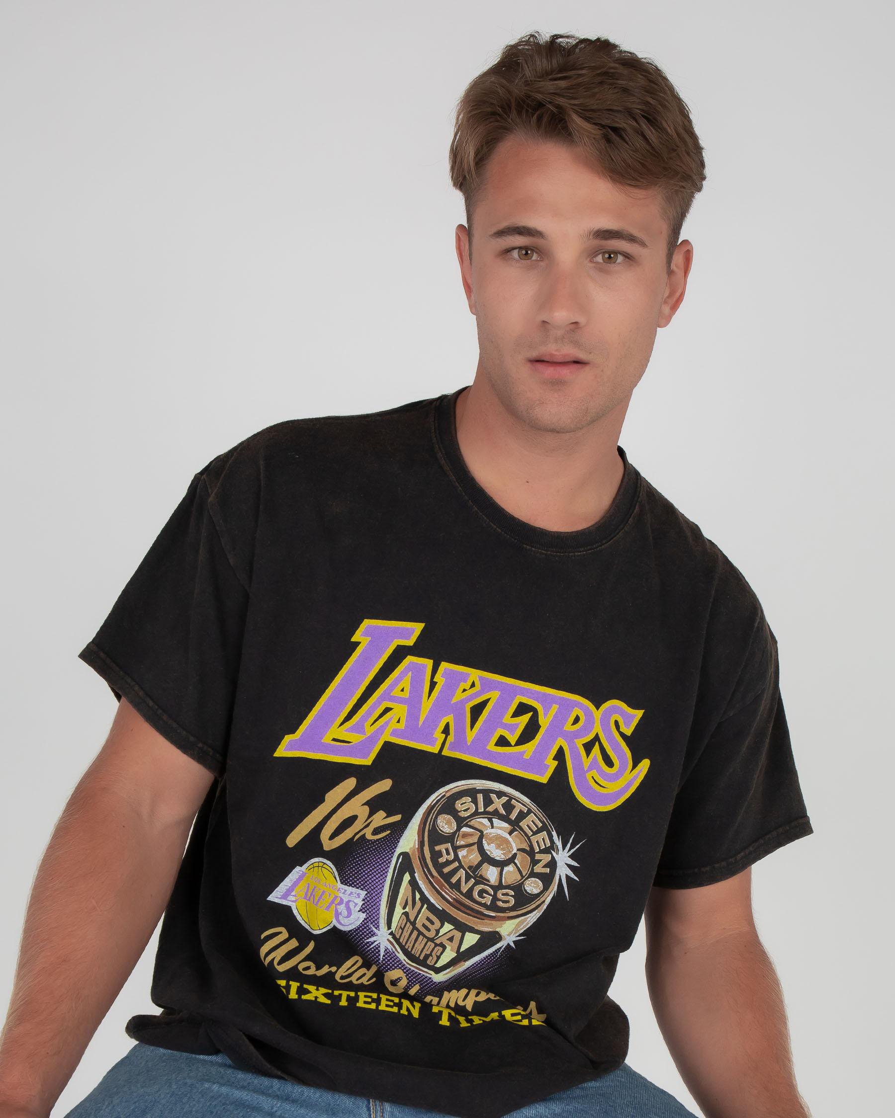 Mens LA Lakers Vintage Bling Ring T-Shirt