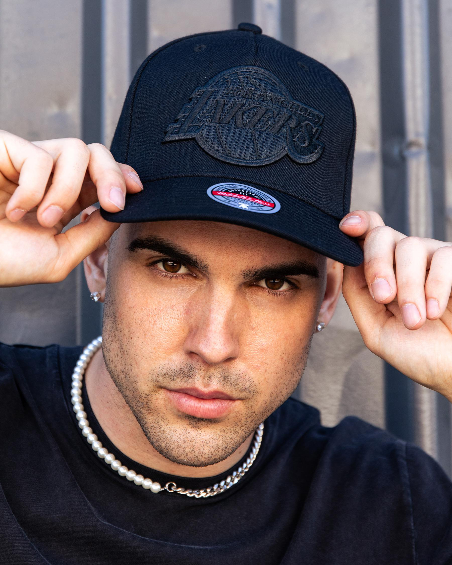 Mens Los Angeles Lakers Black & Black Team Logo Snapback Cap