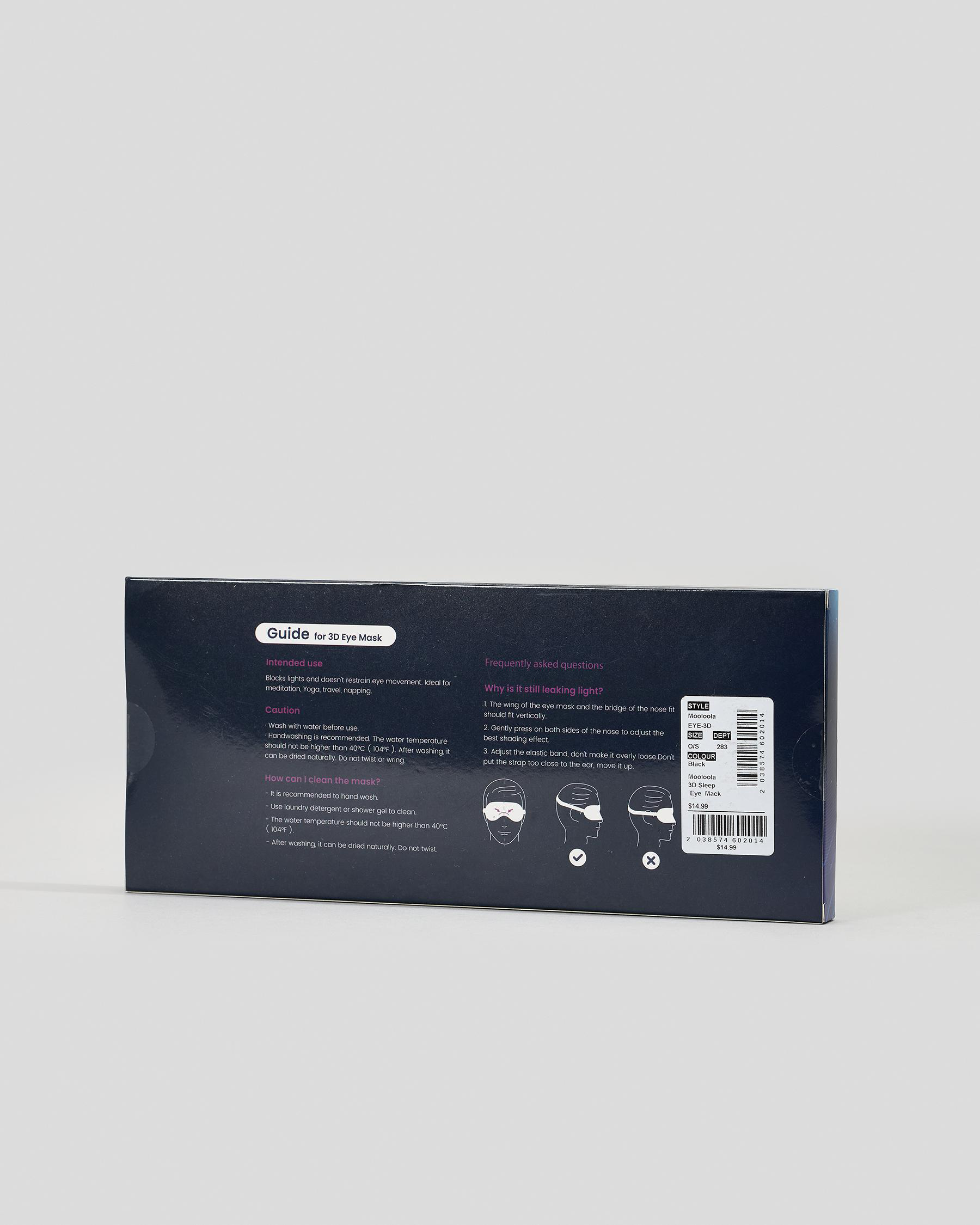 Indulge in luxury with the Mooloola 3D Sleep Eye Mask in classic black. Treat yourself to a peaceful night's sleep with this comfortable and stylish accessory.