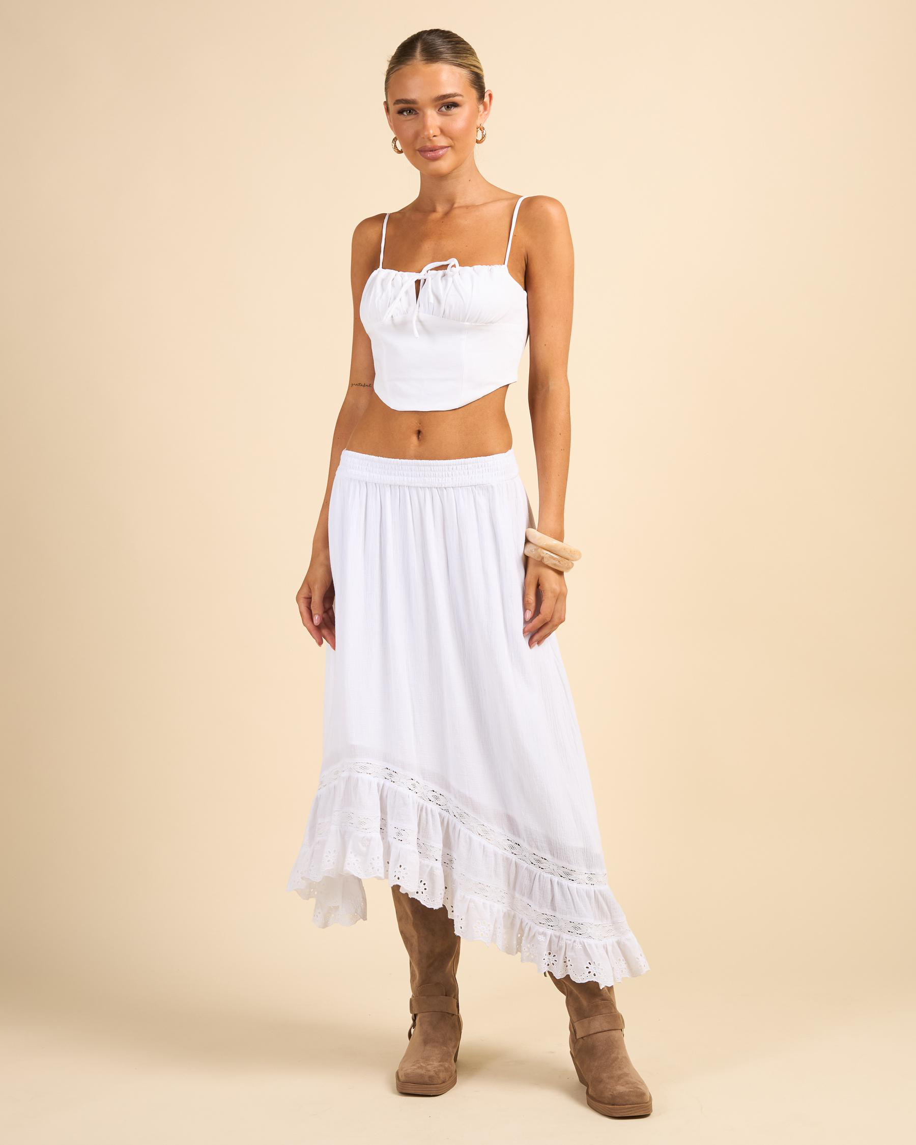 The Mooloola Arabella Top in White exudes elegance and simplicity. A versatile piece for your everyday wardrobe.