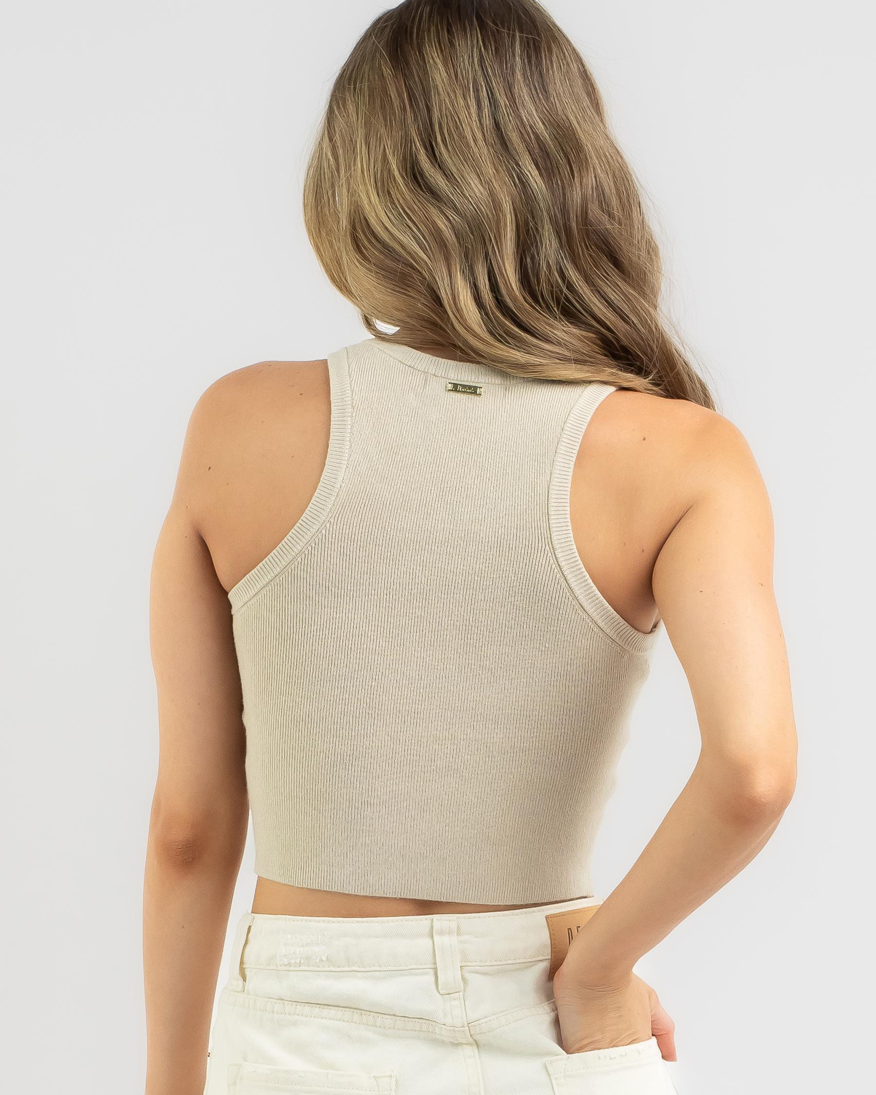 The Mooloola Basic Racer Back Knit Top in Taupe is a versatile wardrobe staple in a flattering neutral shade. Perfect for layering or wearing on its own.