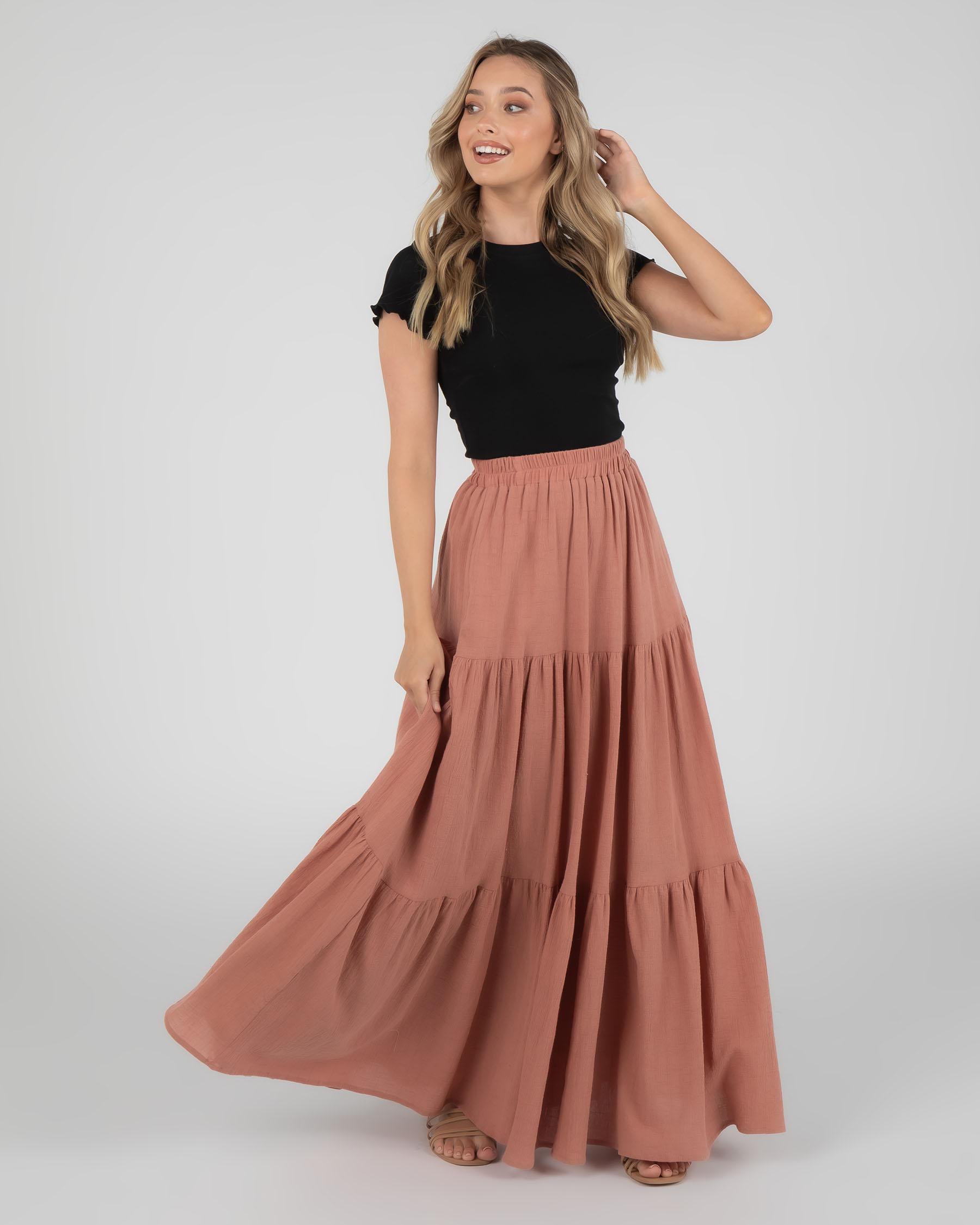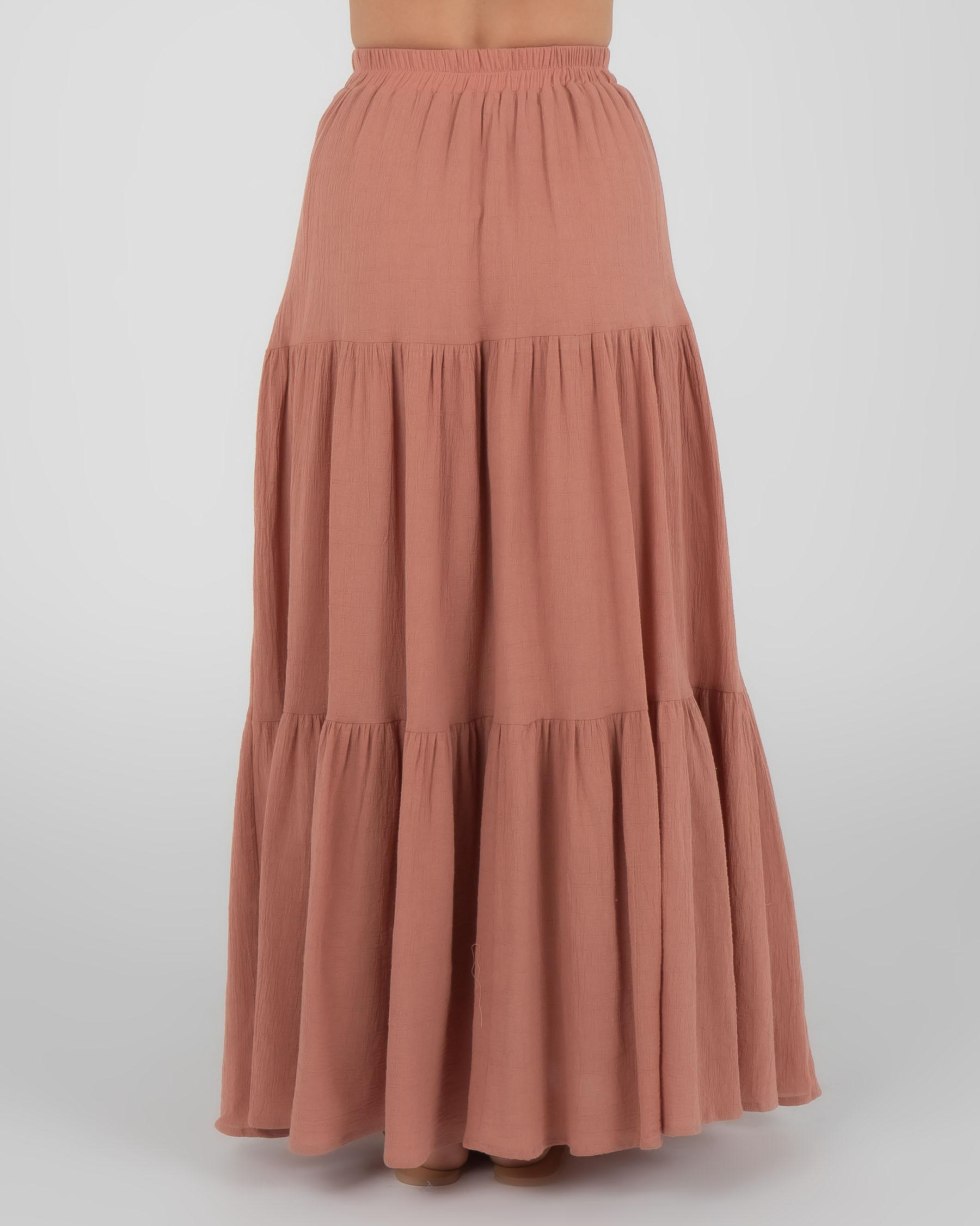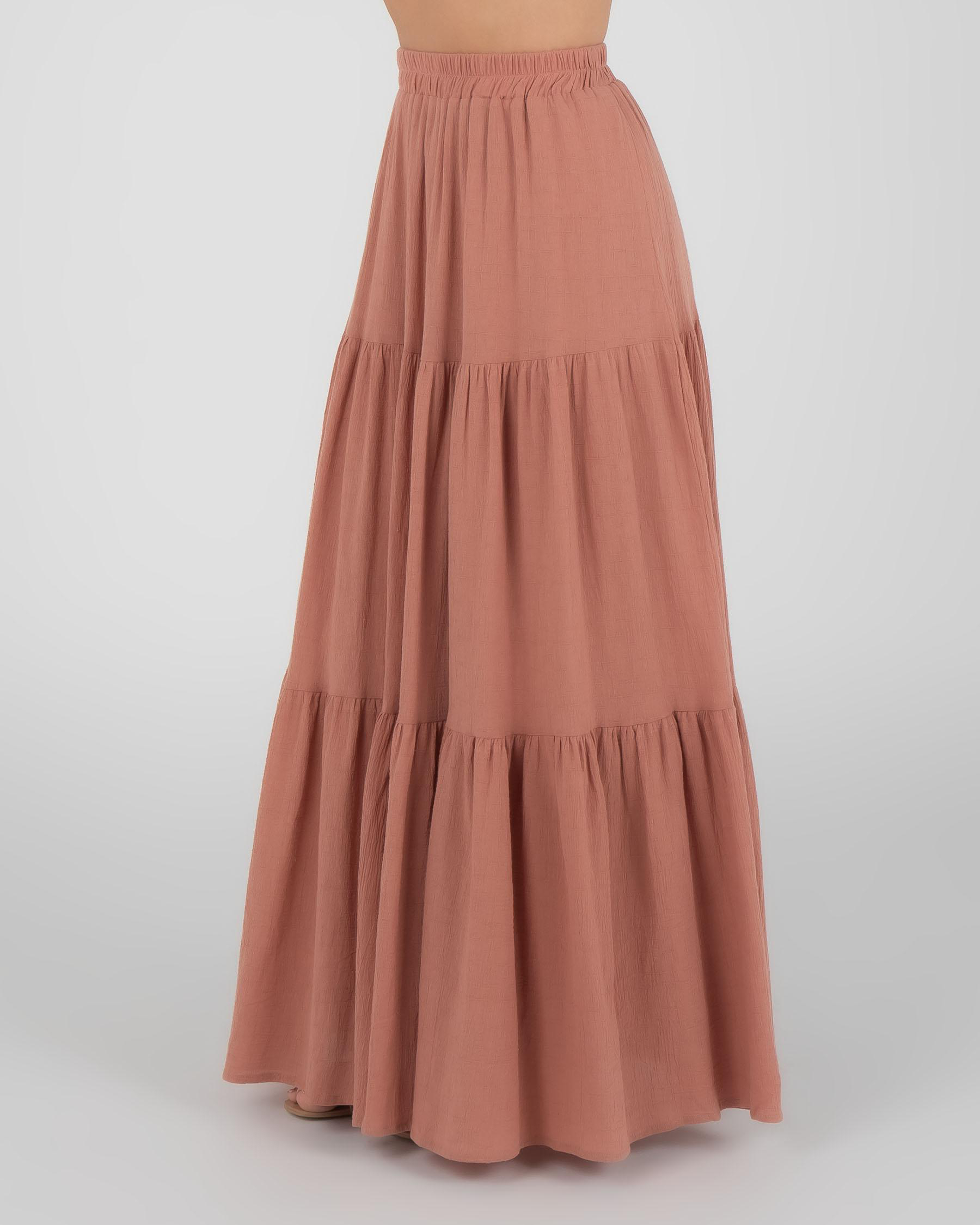 The Mooloola Dusk Maxi Skirt in White is a versatile and elegant addition to your wardrobe, perfect for day or night.