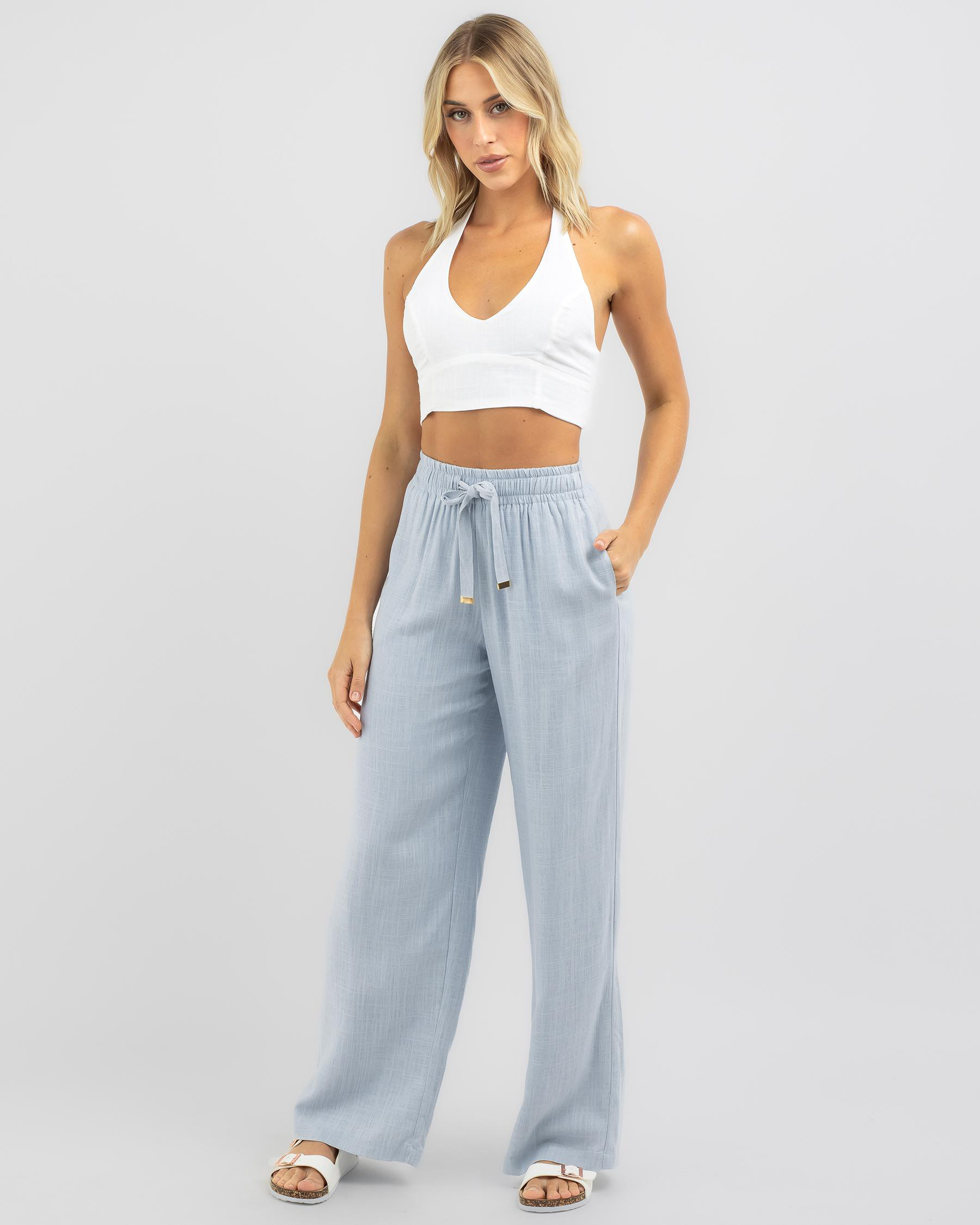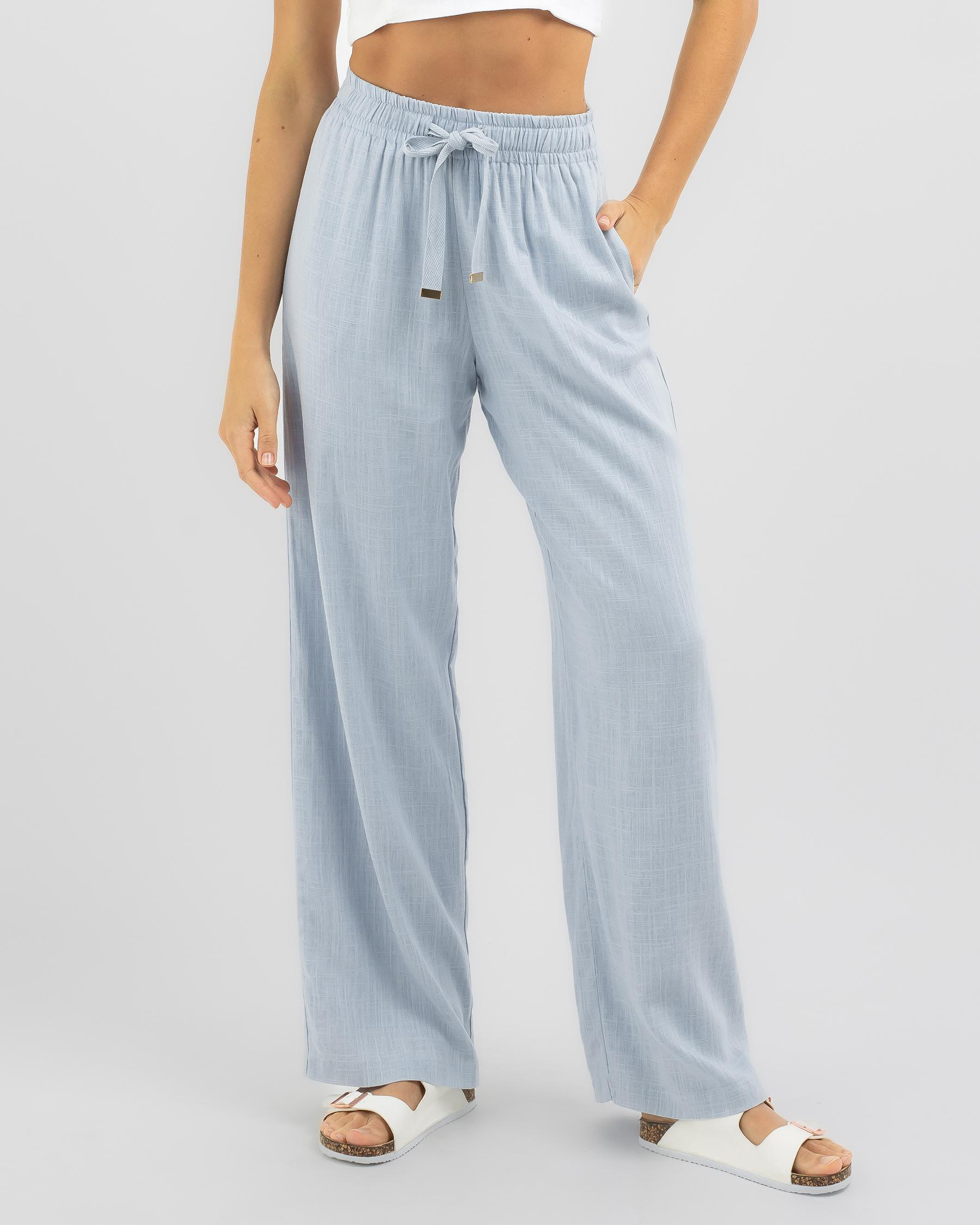 Shop the Mooloola Elle Hawaii Beach Pants in White for a fresh and stylish look. Perfect for lounging on the beach or strolling through town.