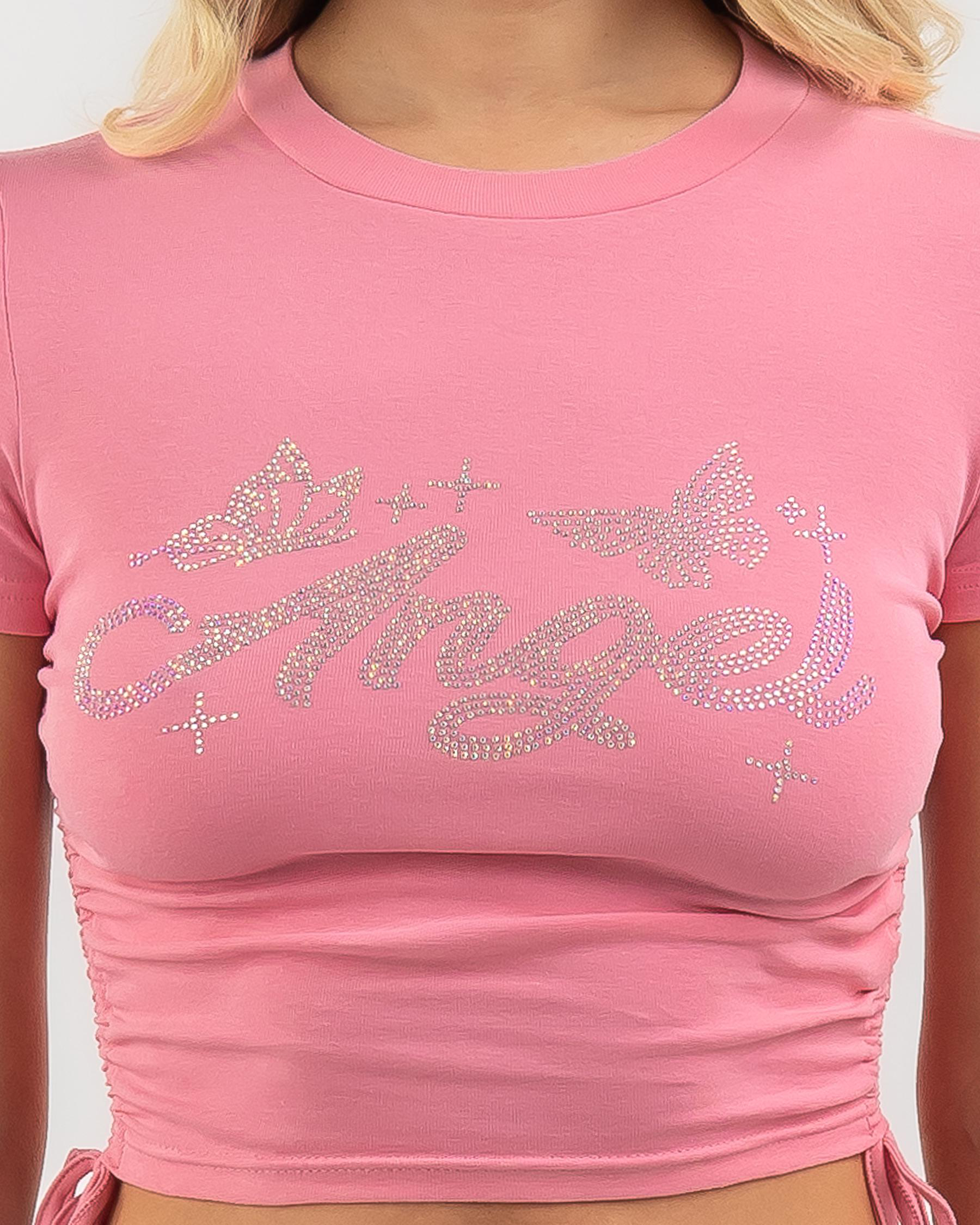 The Mooloola Fluttering Angel Baby Tee in Pink is a charming addition to your wardrobe. Its delicate flutter sleeves and soft pink hue make it perfect for a sweet and feminine look.