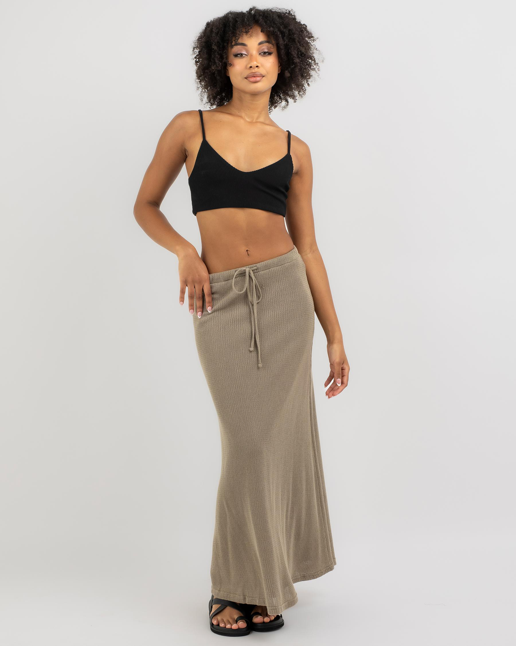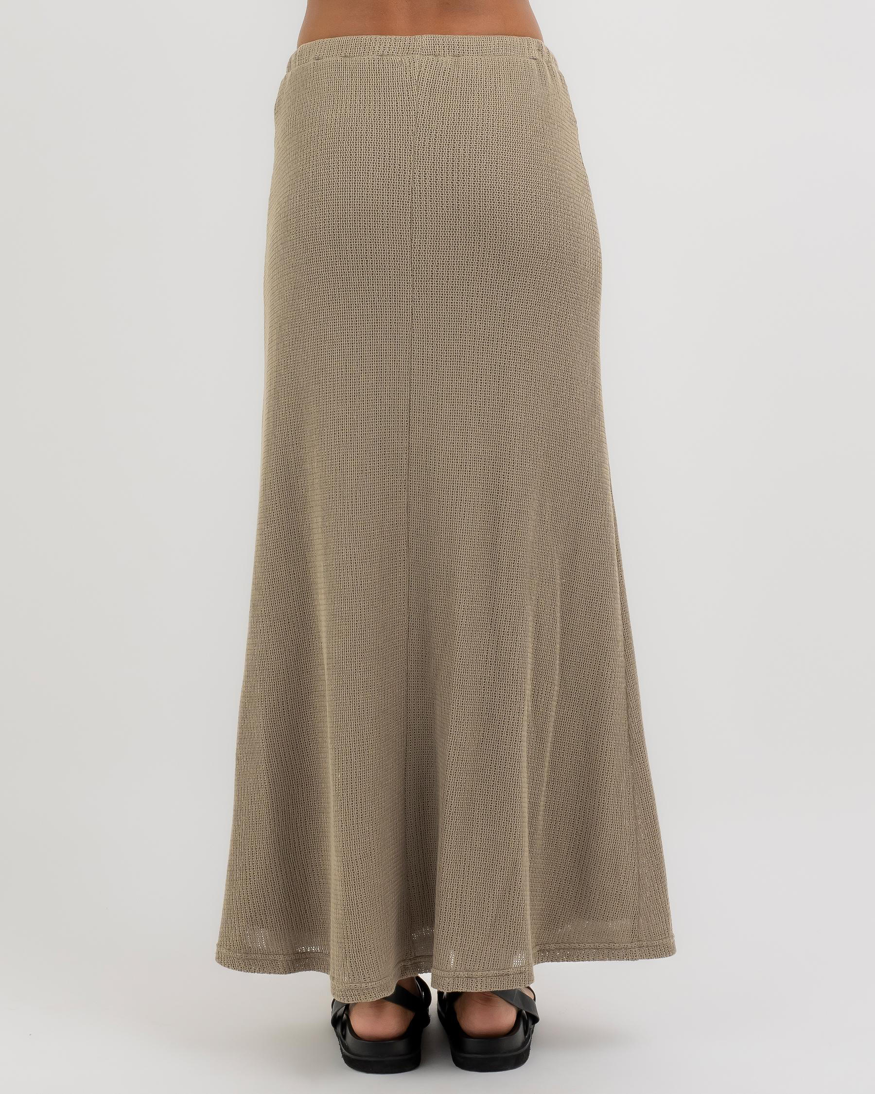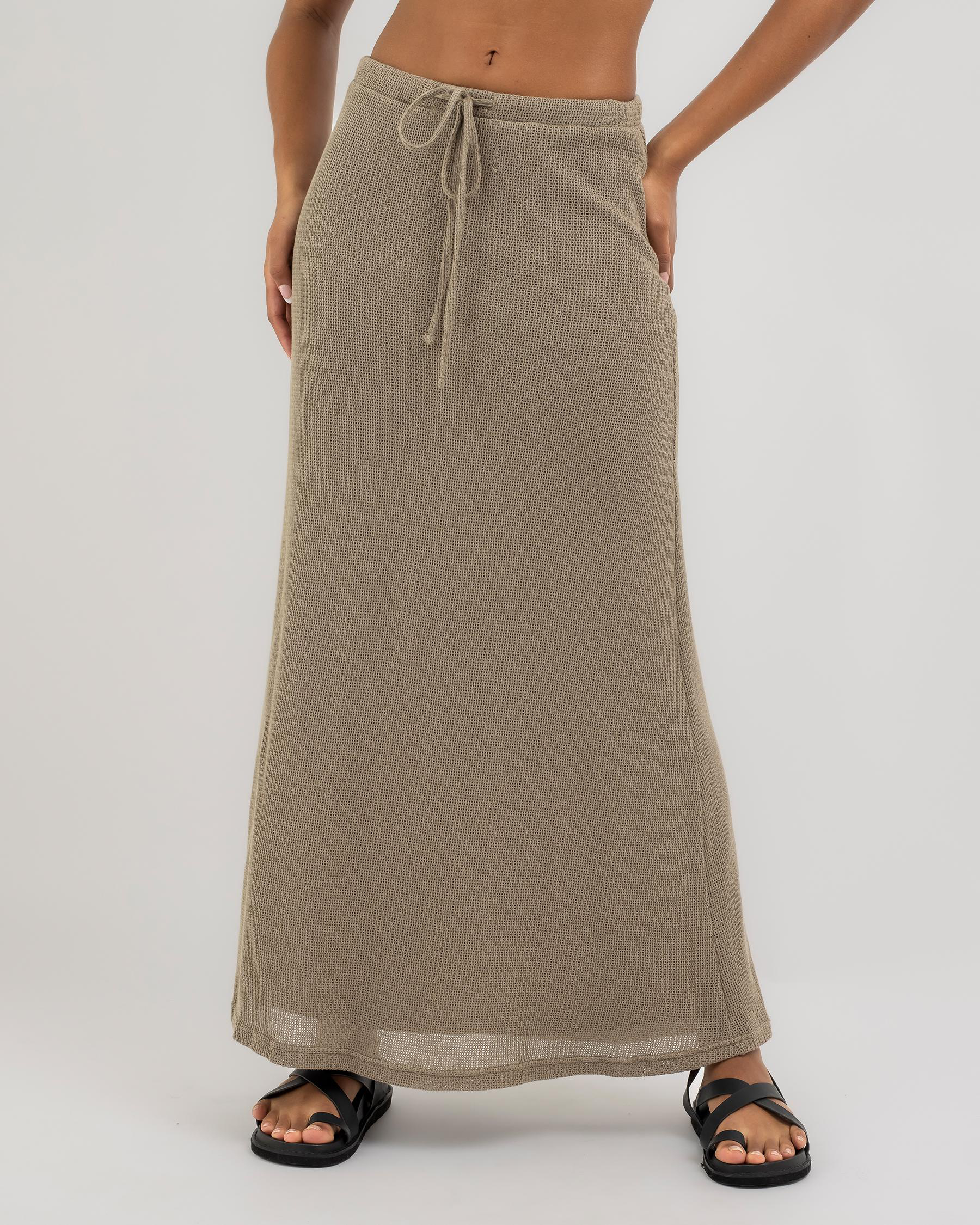 The Mooloola Madelyn Maxi Skirt in Taupe is a versatile wardrobe essential, perfect for pairing with your favorite tops for a chic and stylish look.
