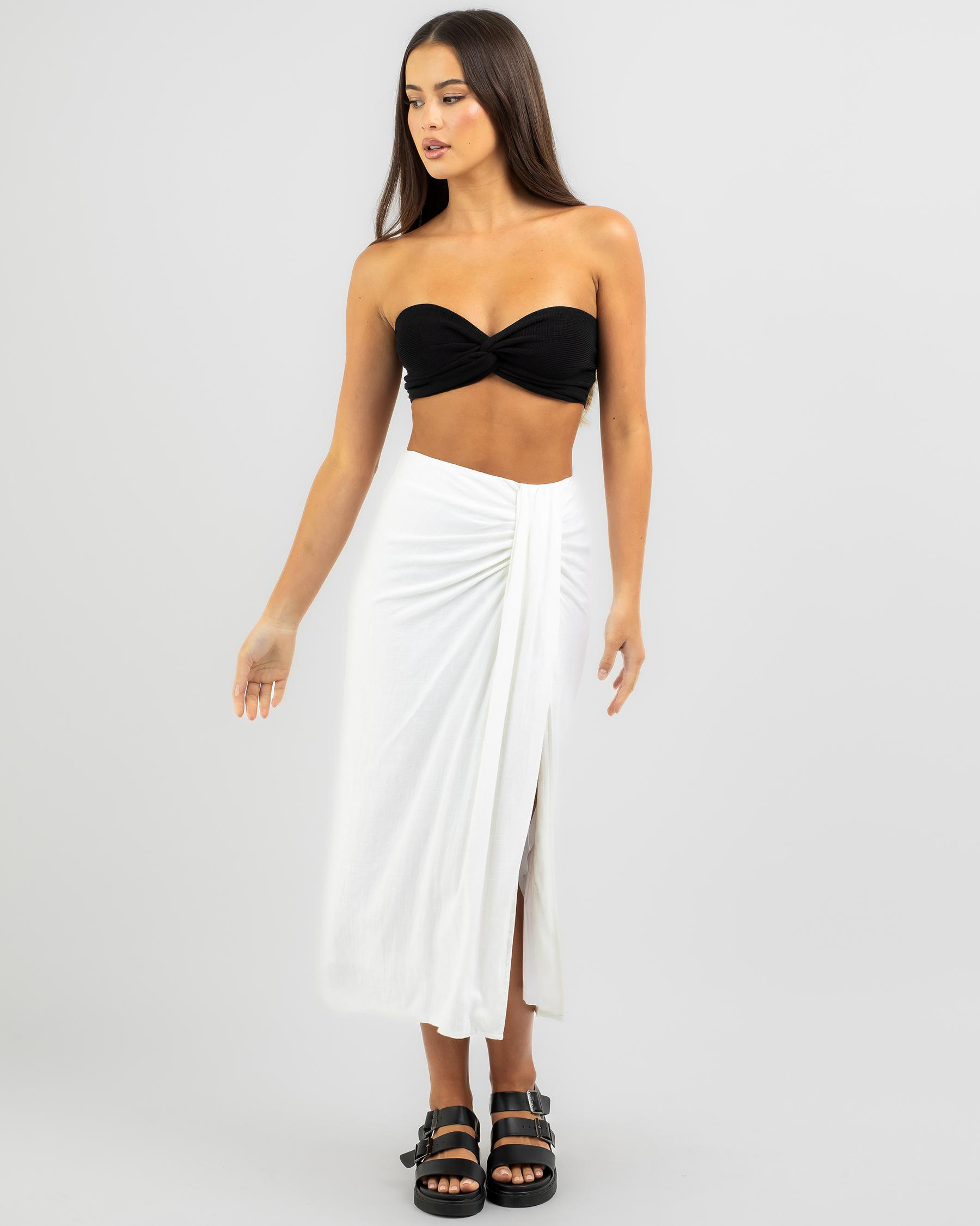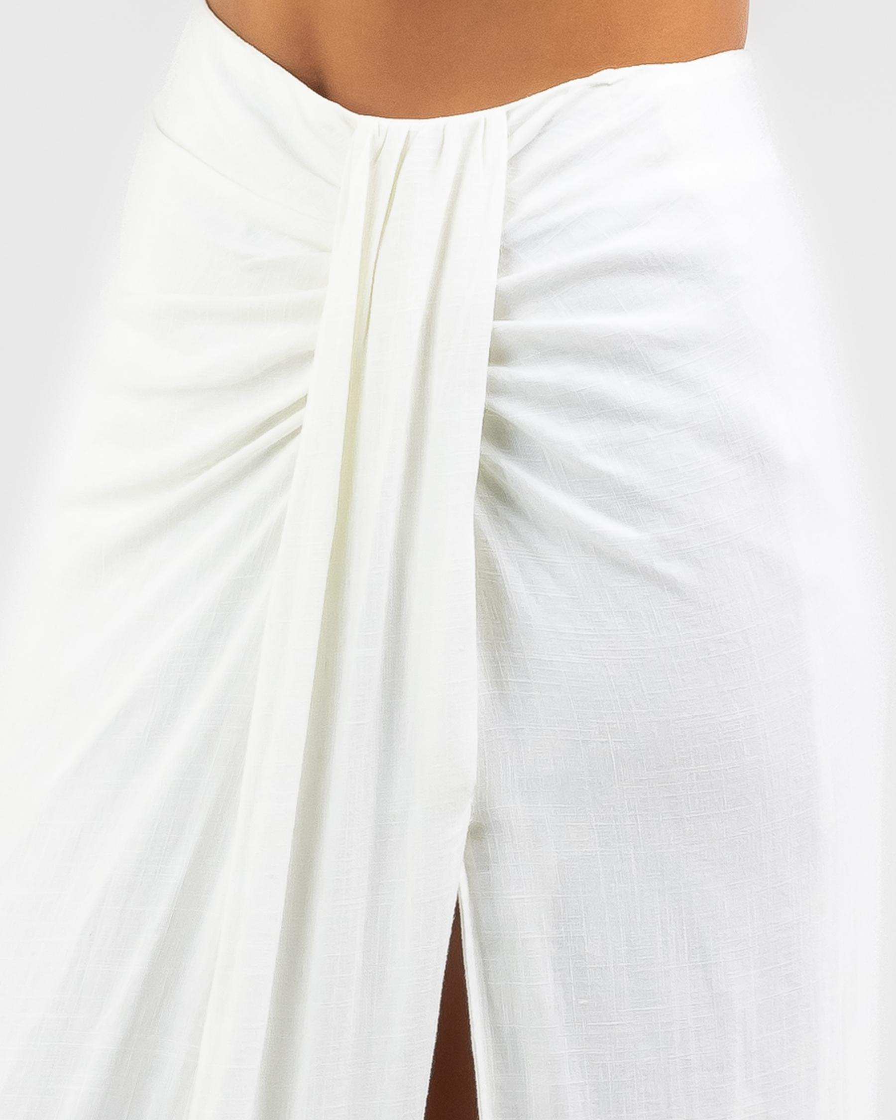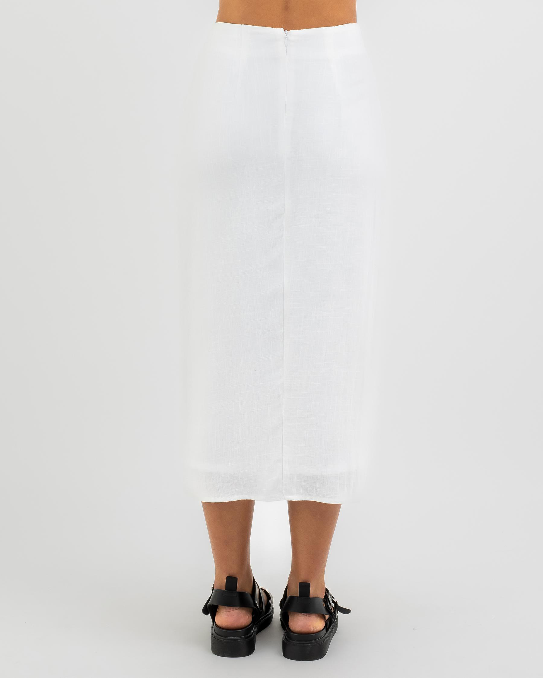 The Mooloola Mallorca Midi Skirt in White exudes effortless elegance with its crisp, clean hue. Perfect for pairing with any top for a chic look.