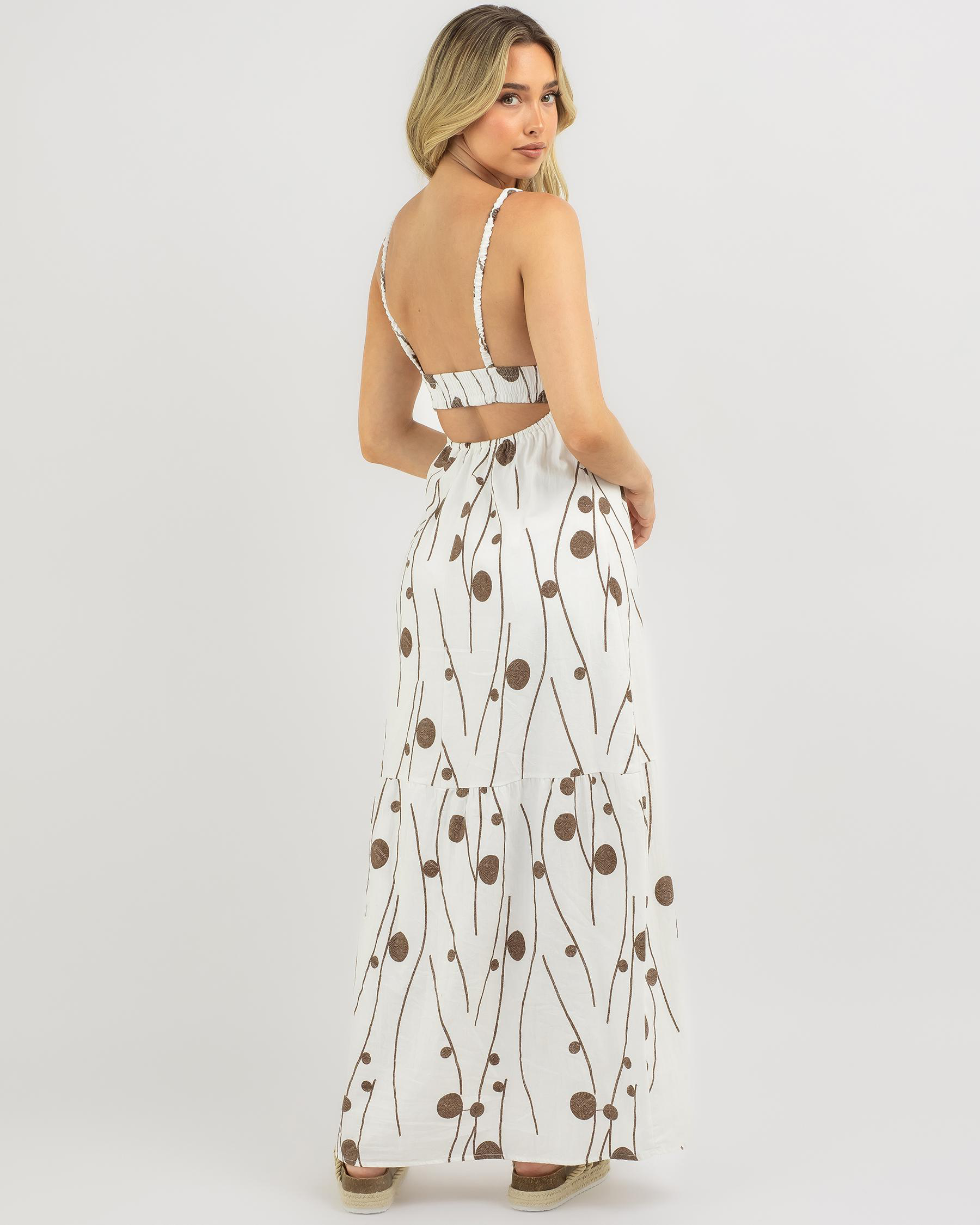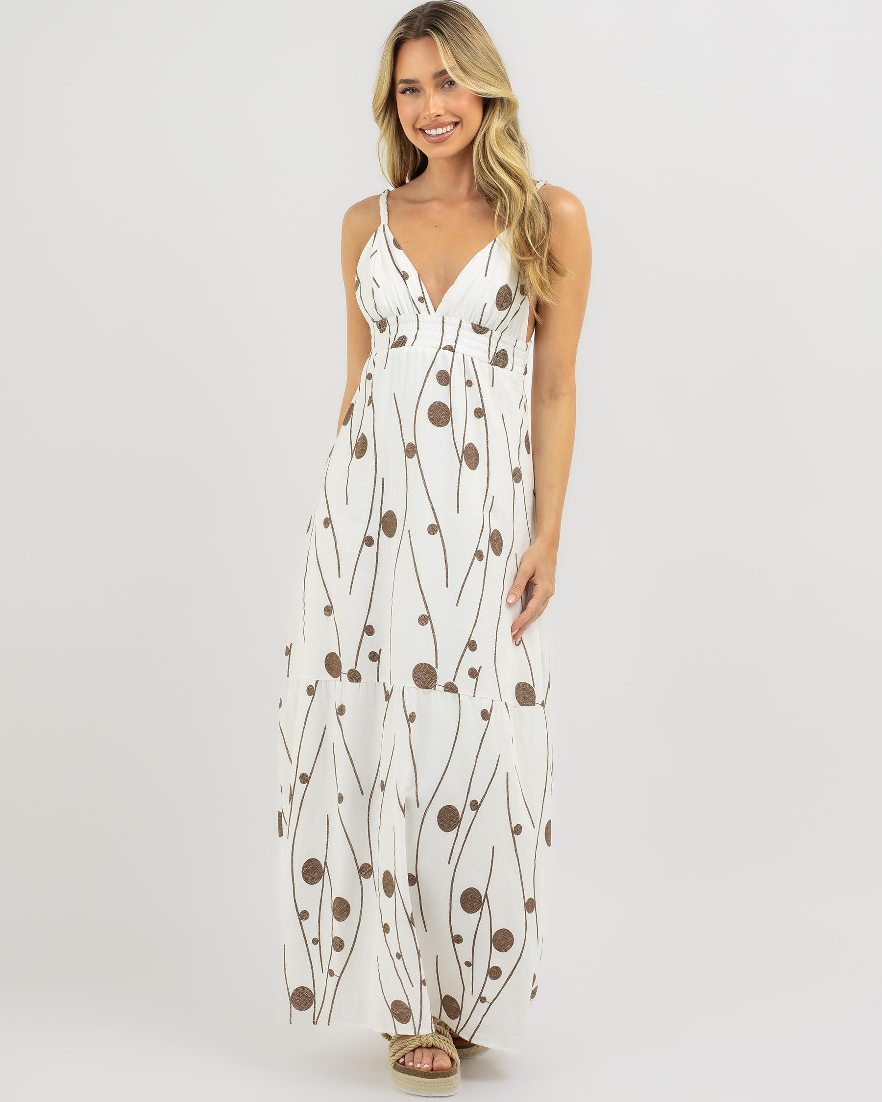 The Mooloola Melissa Maxi Dress in White Print exudes summer vibes with its elegant design and fresh white hue.​