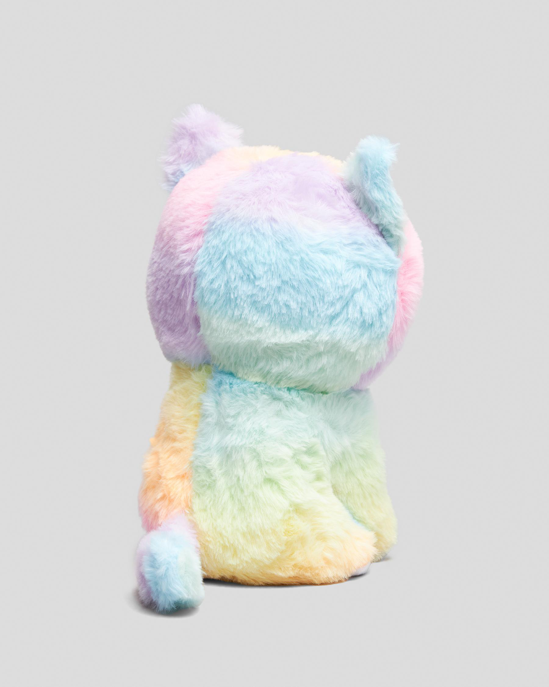 The Mooloola Rainbow Kitty Cat Plush in rainbow features a vibrant rainbow colour palette for a fun and whimsical addition to any collection.