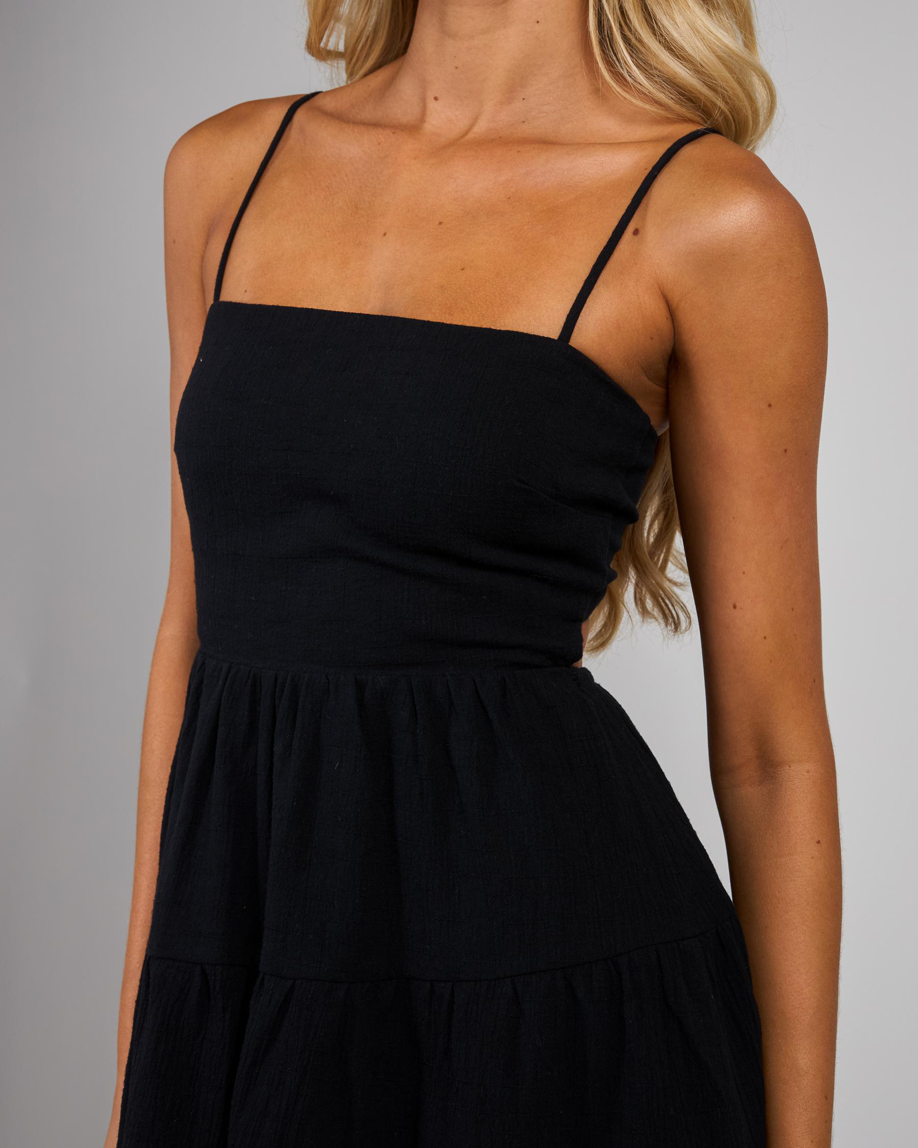 The Mooloola Tabetha Dress in Black is a stylish and versatile piece for any occasion. With its classic black color, this dress is a wardrobe essential.