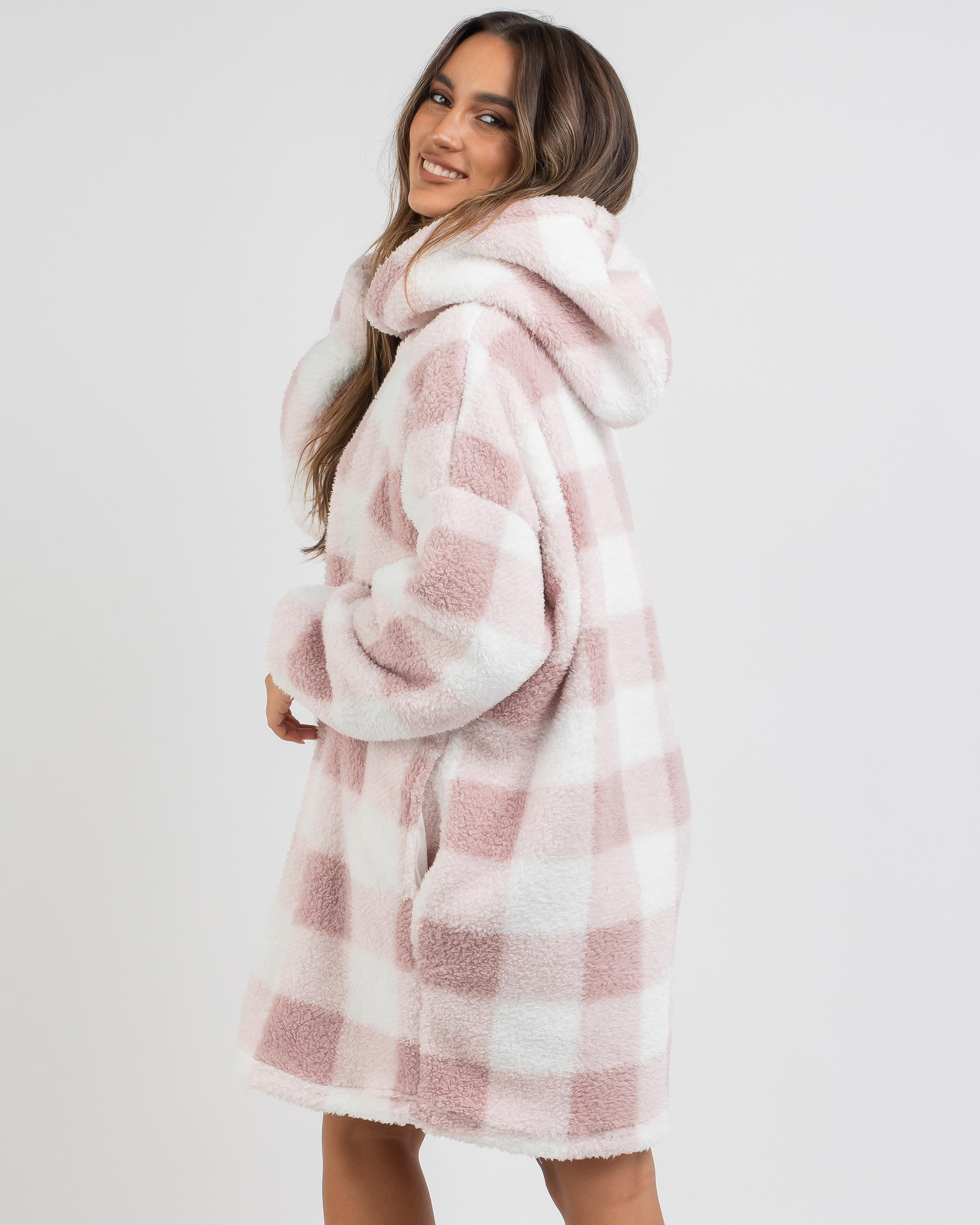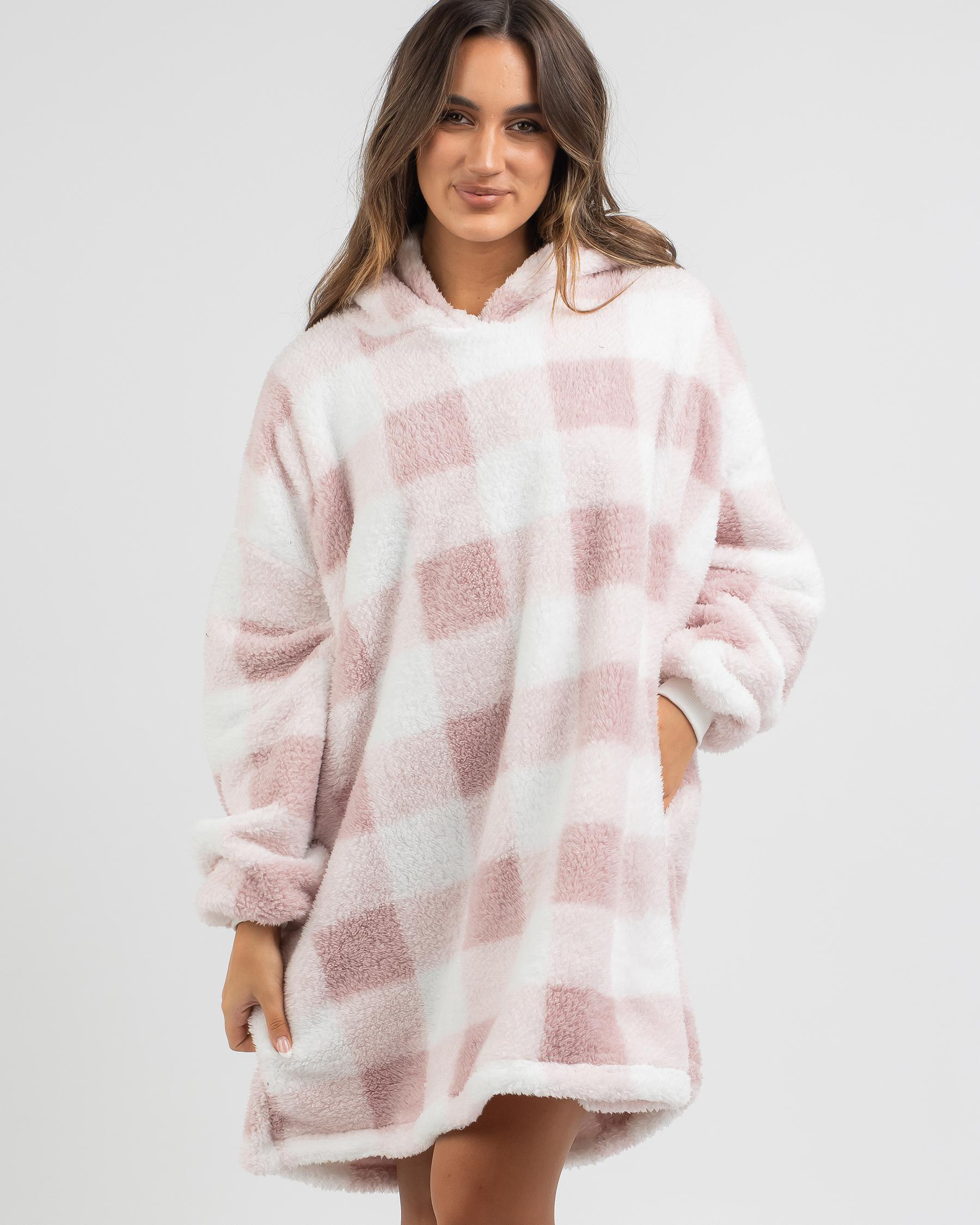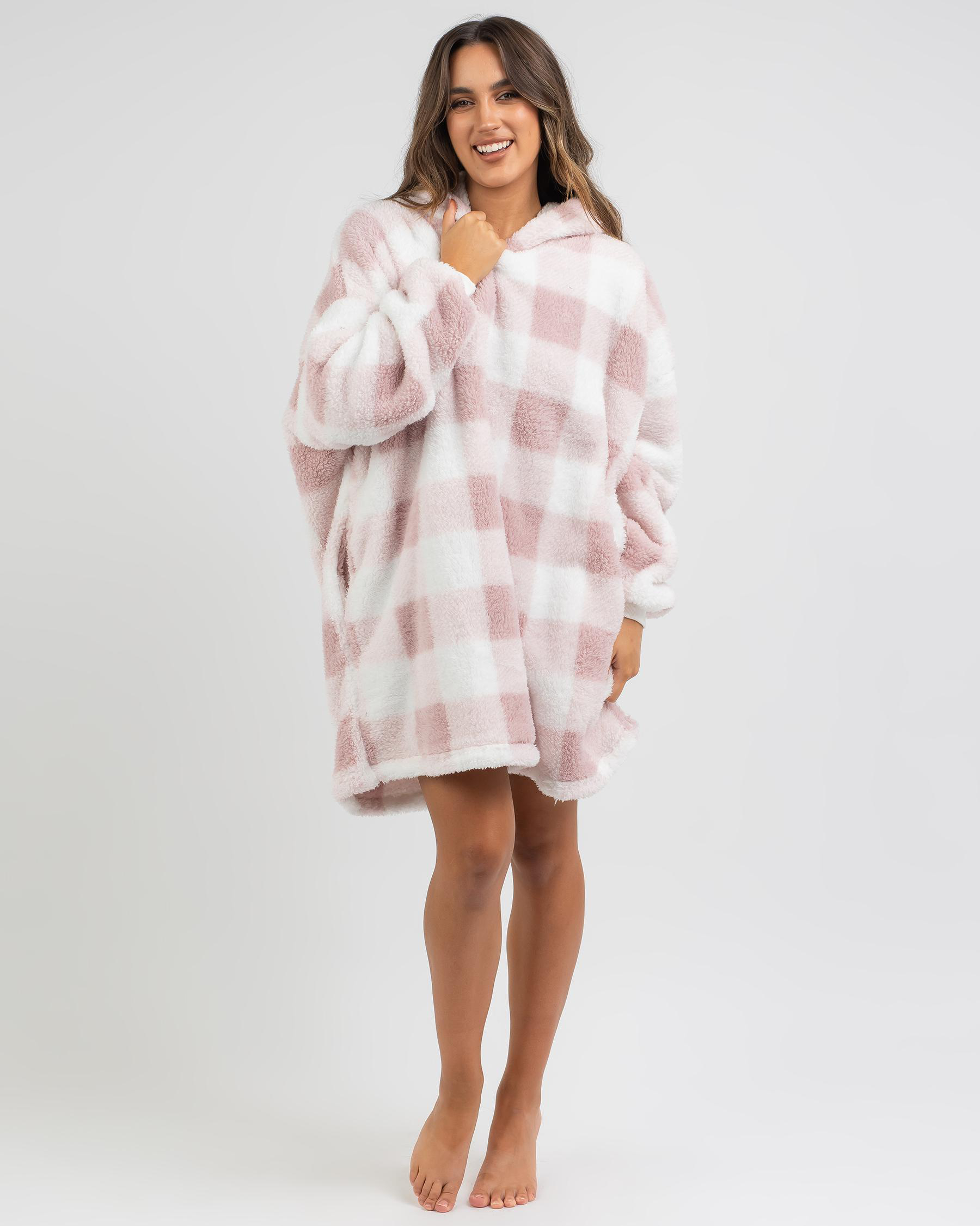 Stay cozy and stylish in the Mooloola Yoho Hooded Blanket in pink. Perfect for lounging at home or staying warm on chilly nights.
