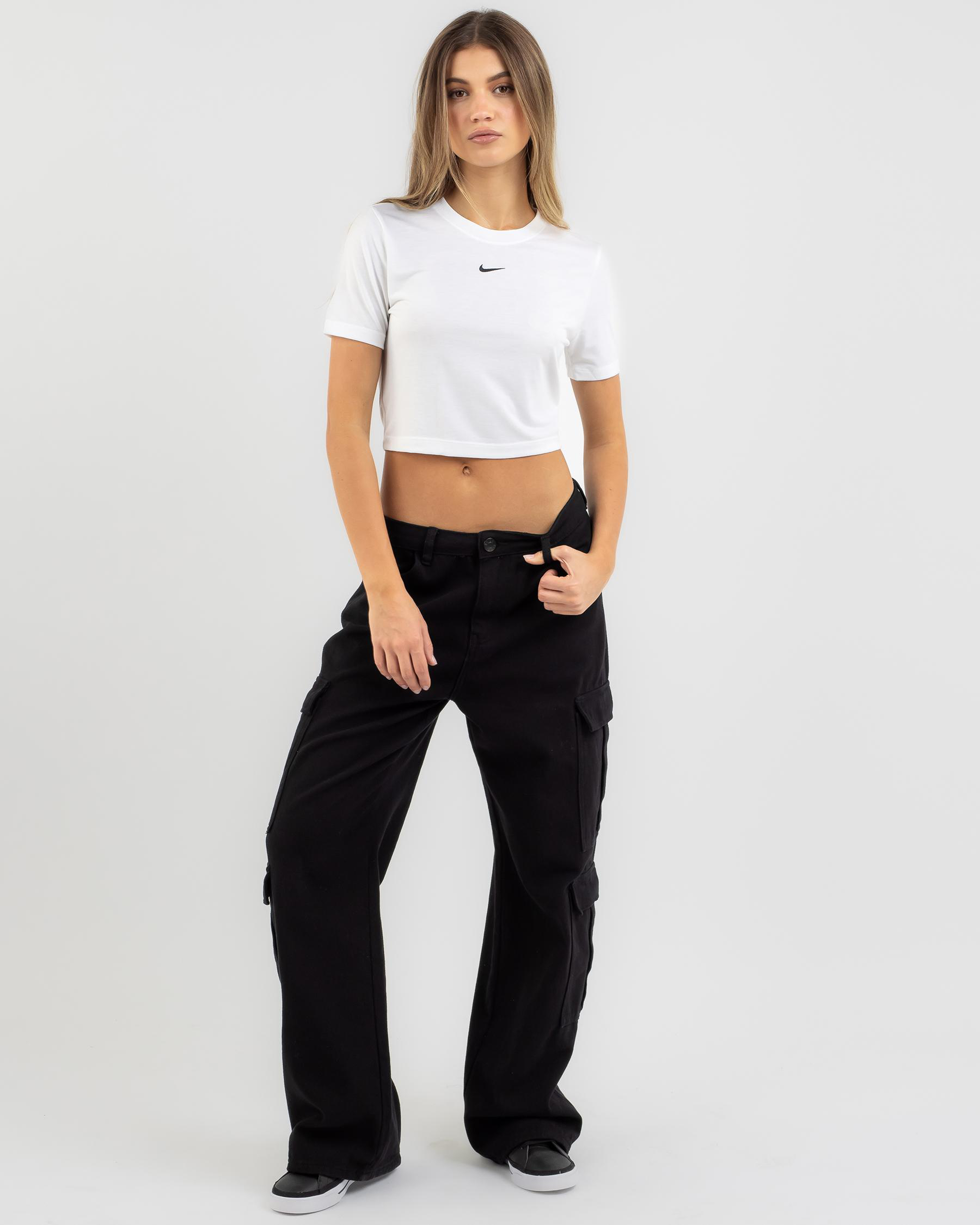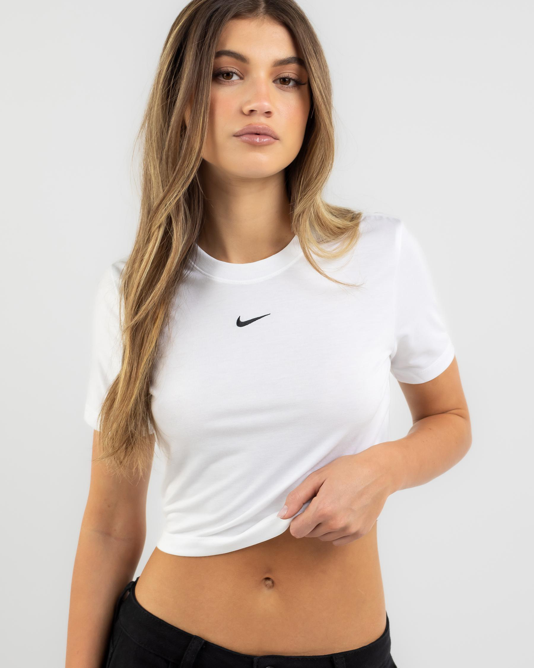 The Nike Essential Slim Cropped T-Shirt in White is a versatile wardrobe staple for every season. Stay stylish and comfortable in this classic white tee.