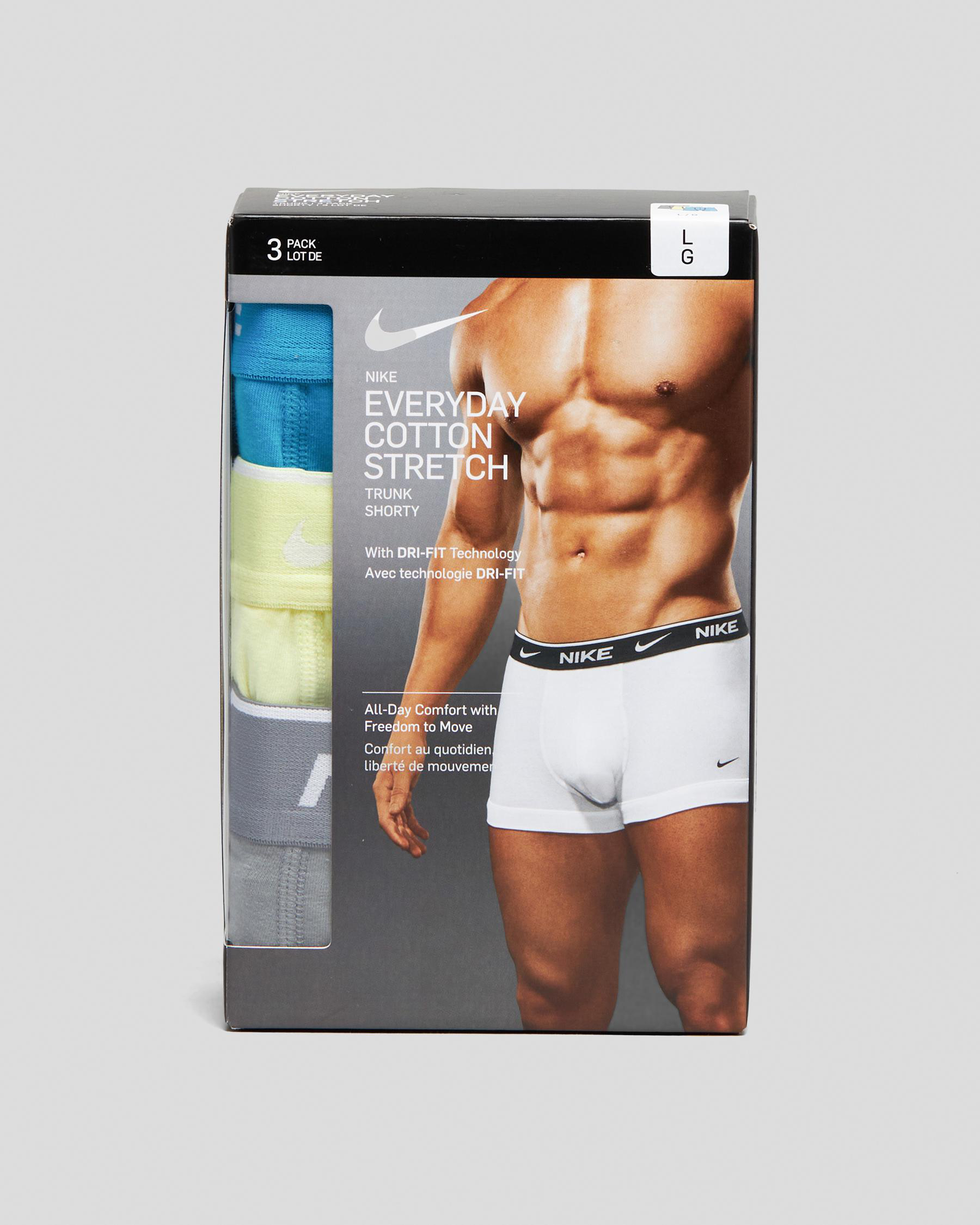 Branded elasticated waistband. Sweat-wicking fabric helps you stay dry and comfortable. Stretch material enhances your freedom of movement. Wide hems help keep underwear in place. Pack of 3.