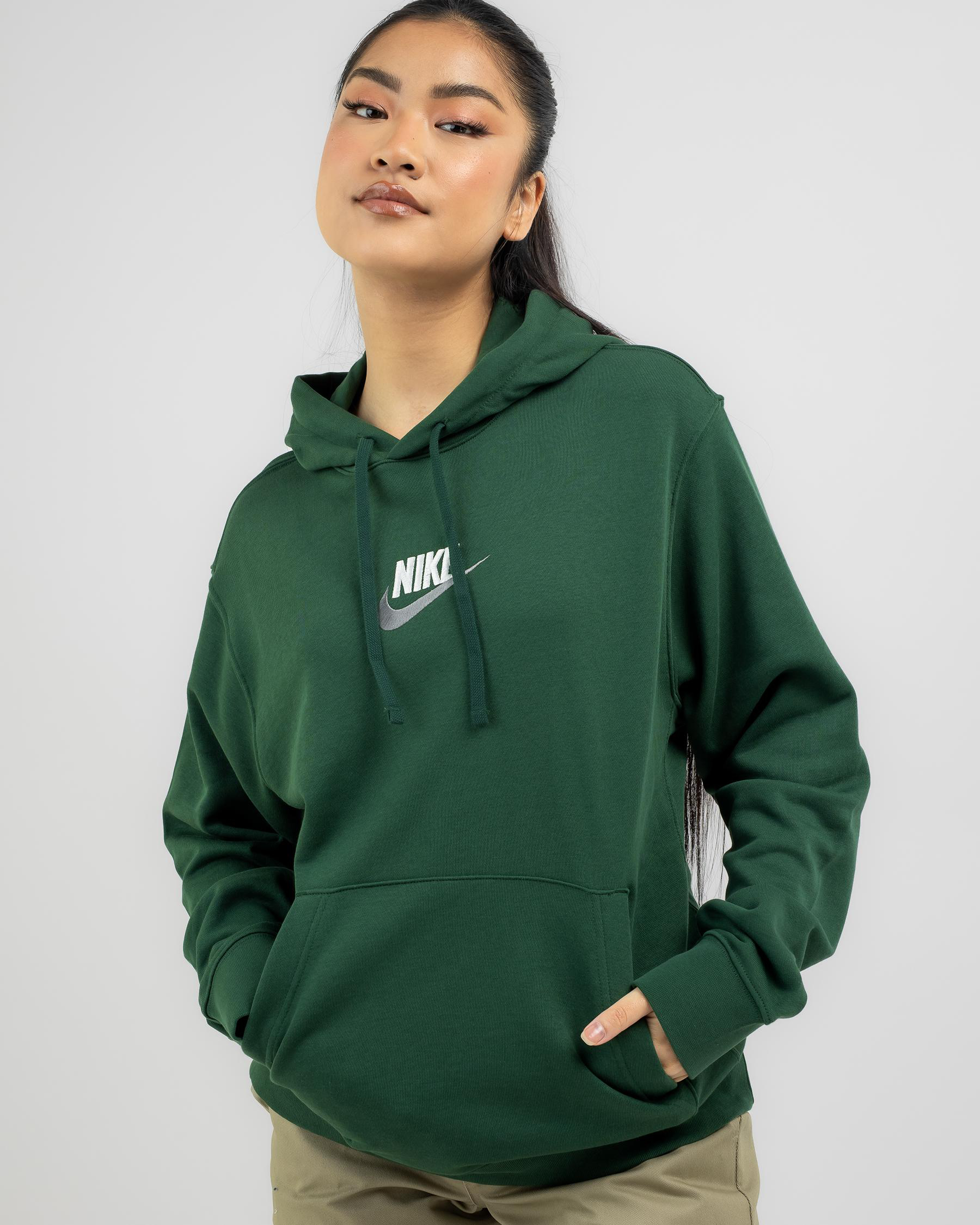 The Nike French Terry Fleece Hoodie in Fir is a cozy and stylish choice for staying warm on cool days.
