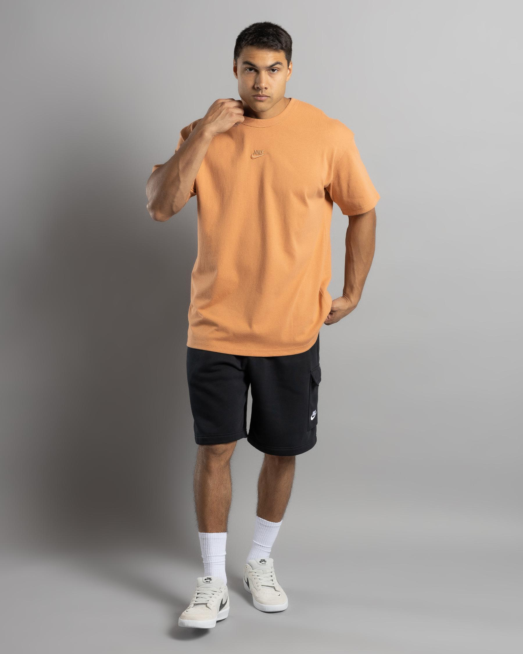 The Nike Sportswear Premium Essential T-Shirt in Amber Brown is a classic wardrobe staple. Made with premium materials, this tee is perfect for everyday wear.