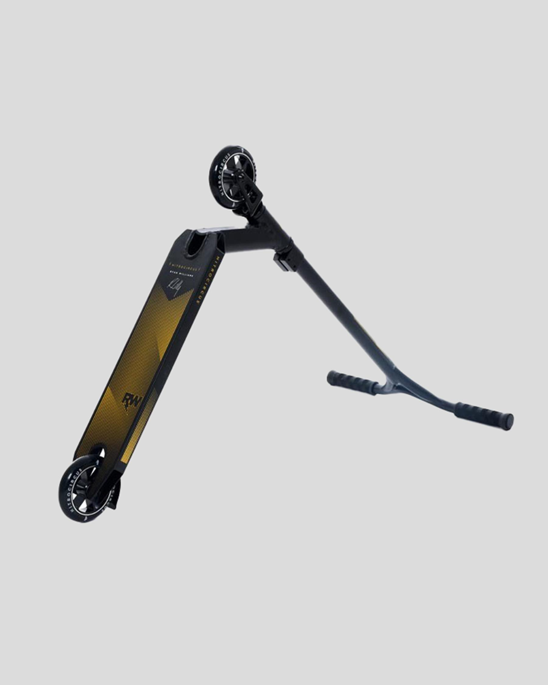 The Nitro Circus RW Replica Scooter in Satin Black is sleek and stylish with a touch of gloss, making it a standout choice for riders.