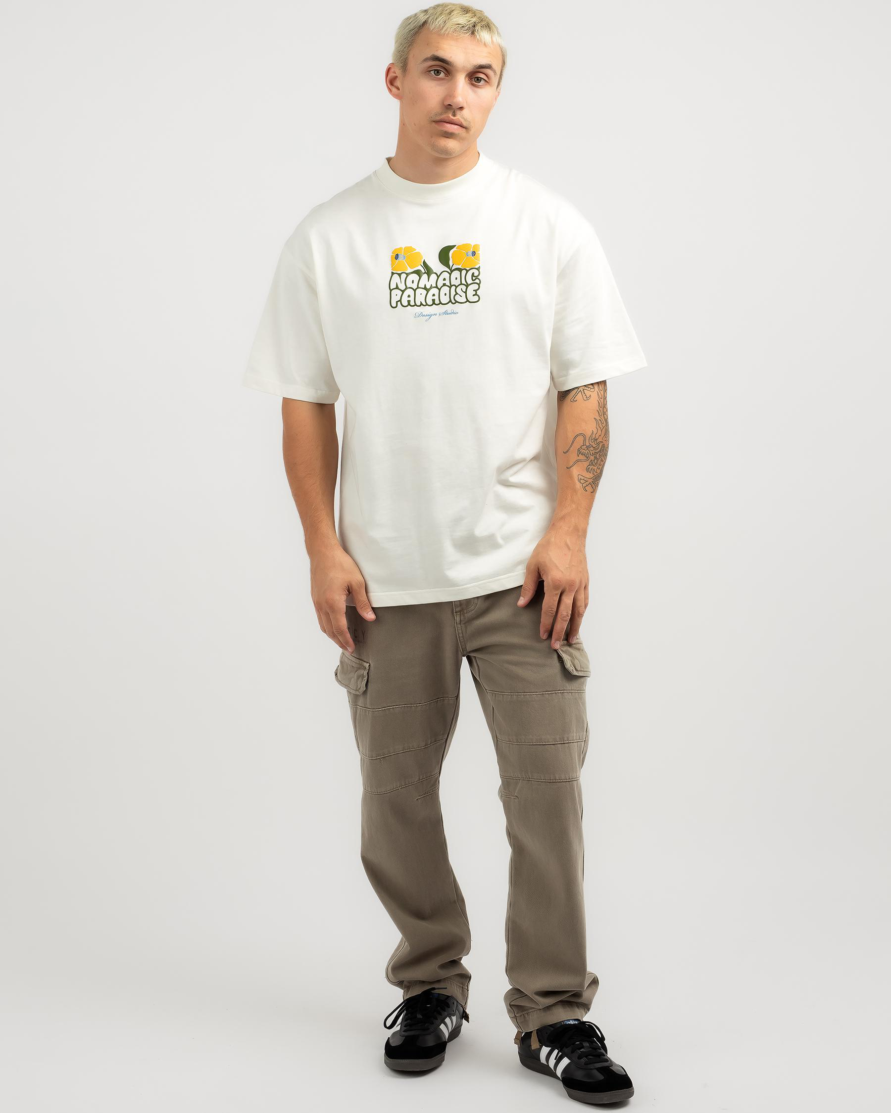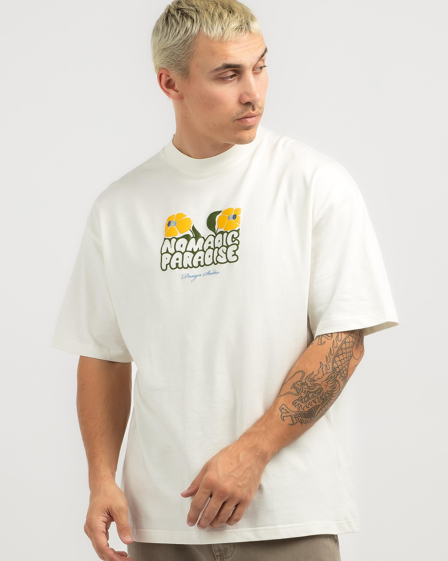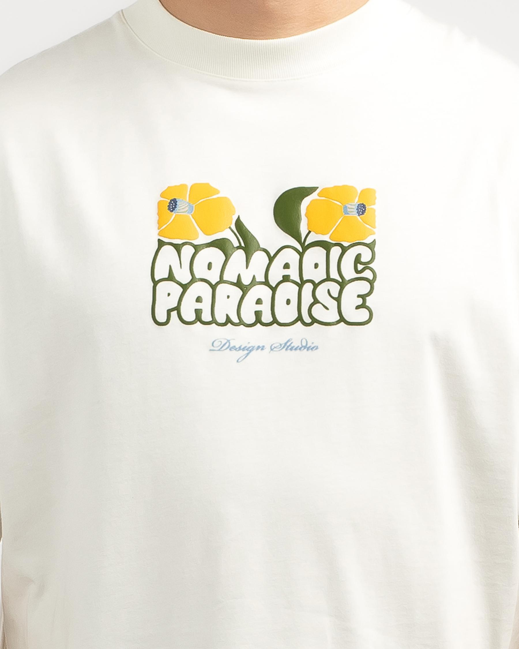 The Nomadic Paradise Daffodil Street T-Shirt in Natural White showcases a simple yet stylish design, perfect for a casual and comfortable look.