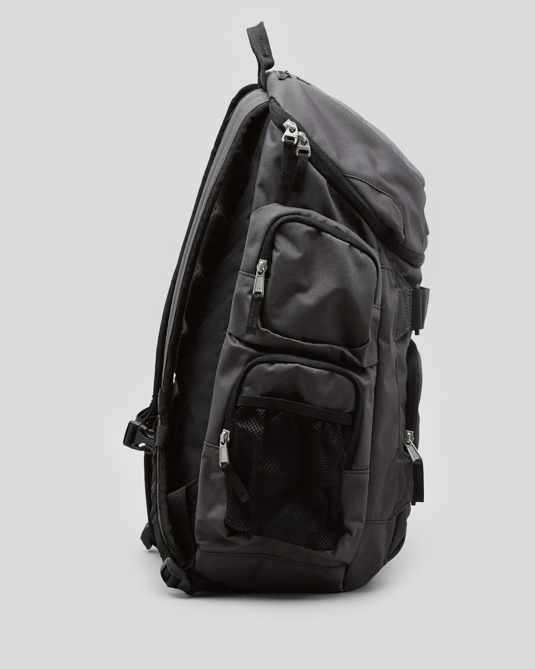 Handle, Adjustable straps, Padded straps, Multi internal compartment, Padded backpanel, Sternum straps, Media compartment, External zipped pocket, Fits A4 sized folders and books, Skate straps, External side pockets, Waterbottle pouch, Single internal compartment