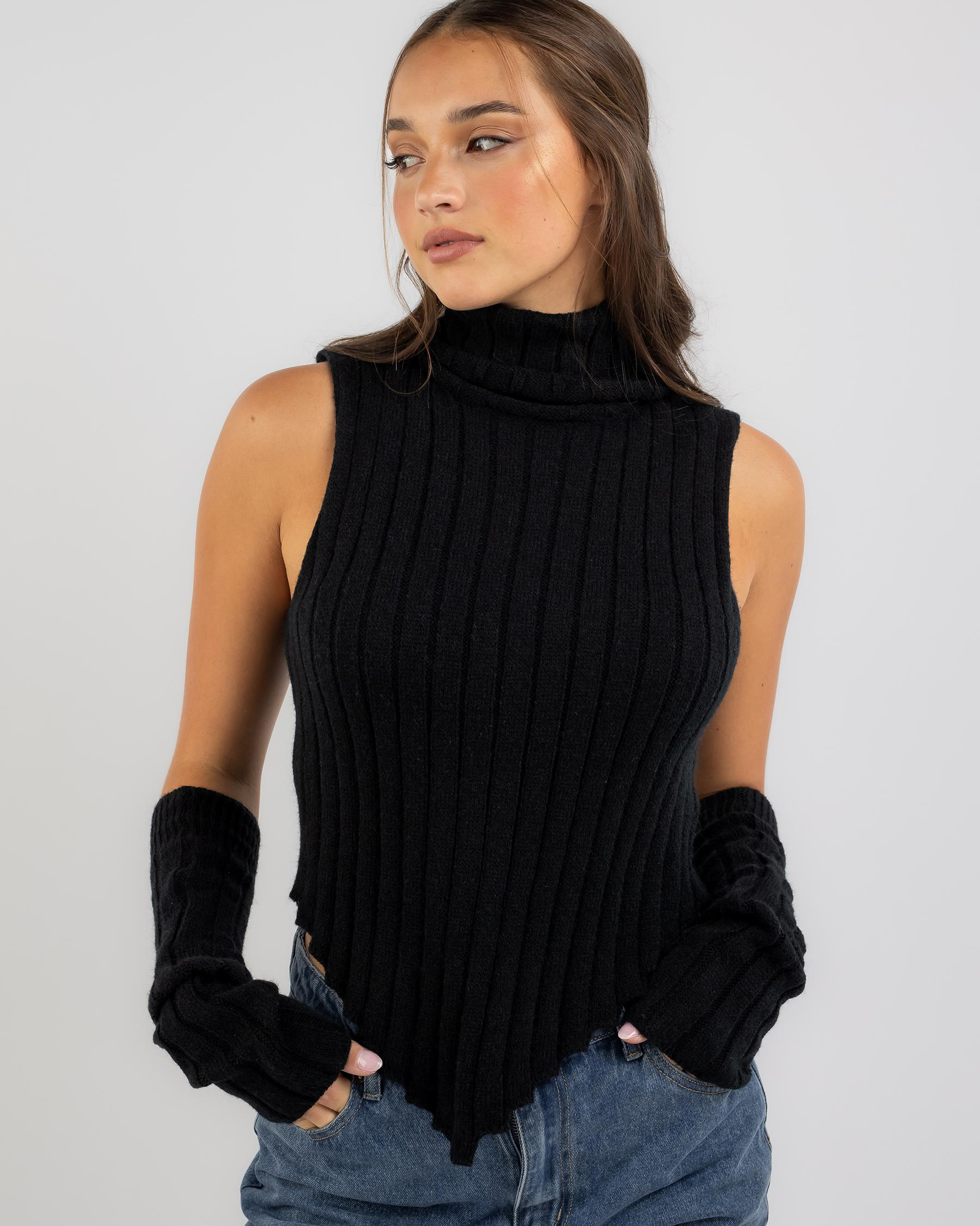 Womens Jagger High Neck Knit Sleeve Set