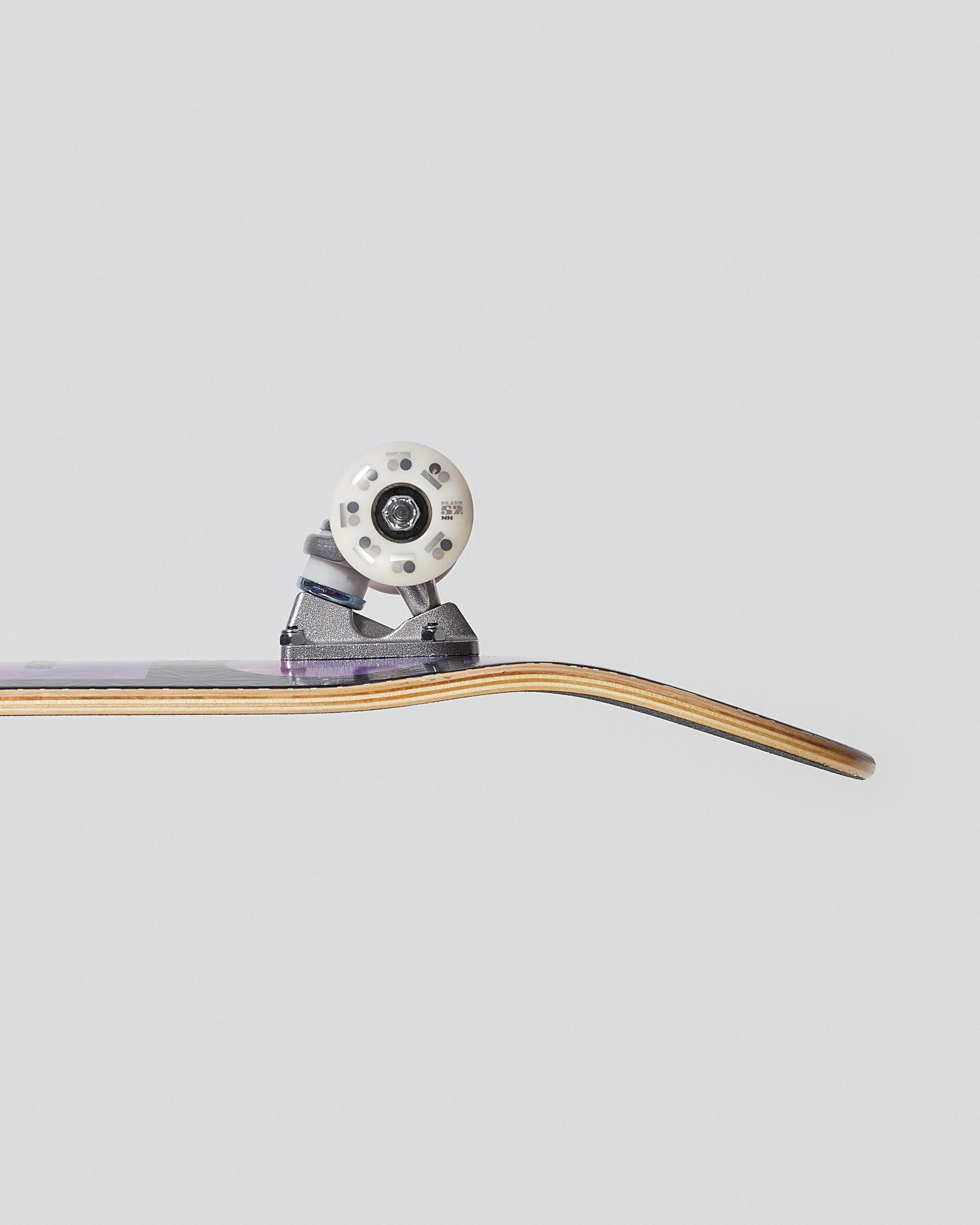 The Plan B Sacred G 8.0 Complete Skateboard in Multi features a vibrant and eye-catching design, perfect for shredding at the skatepark.